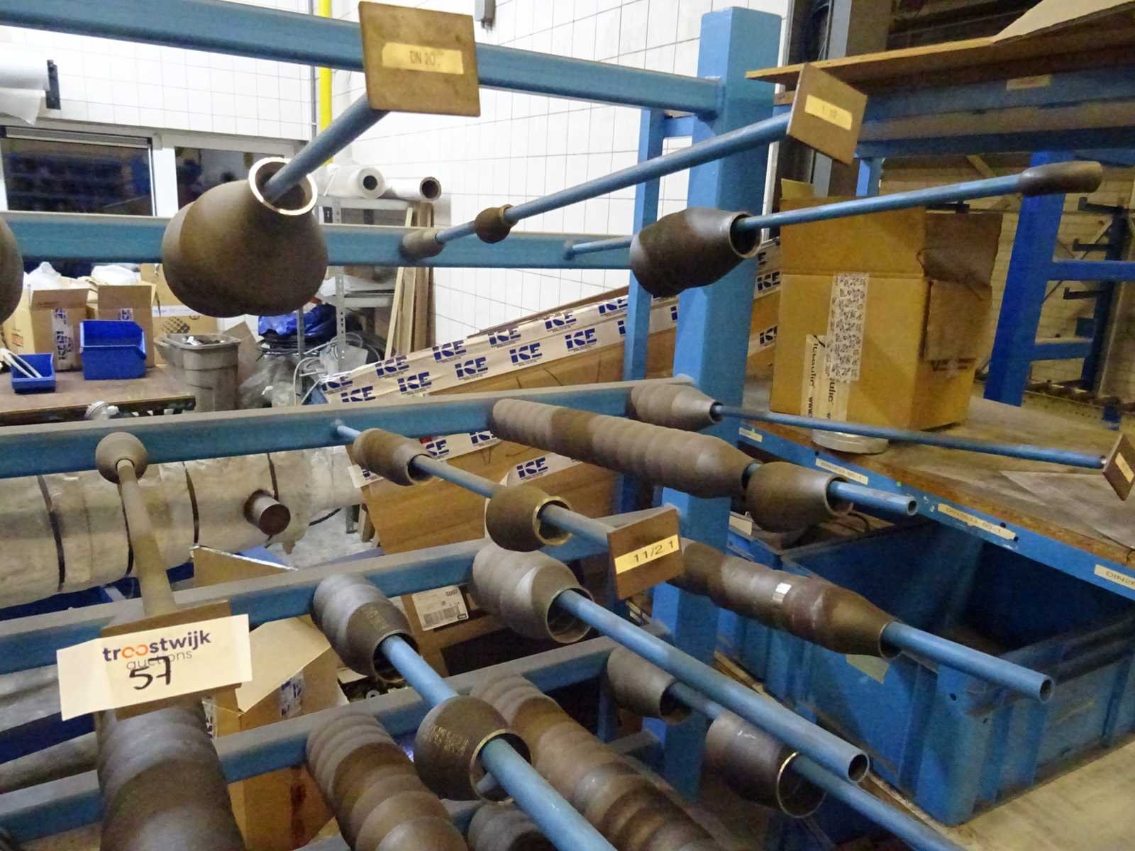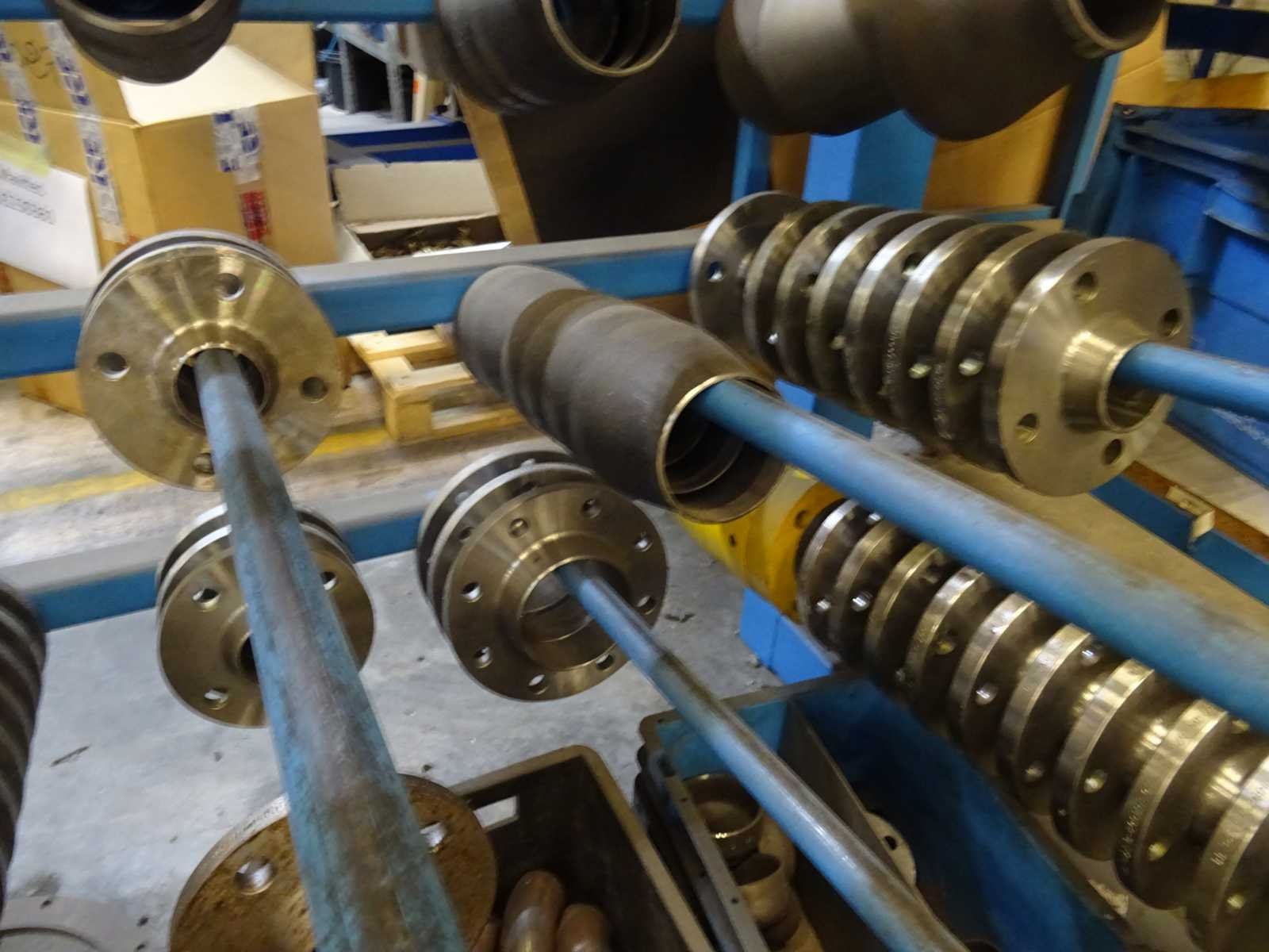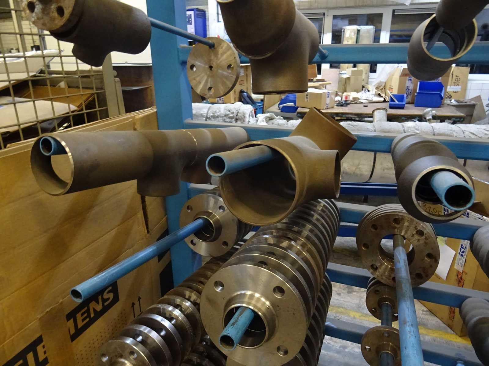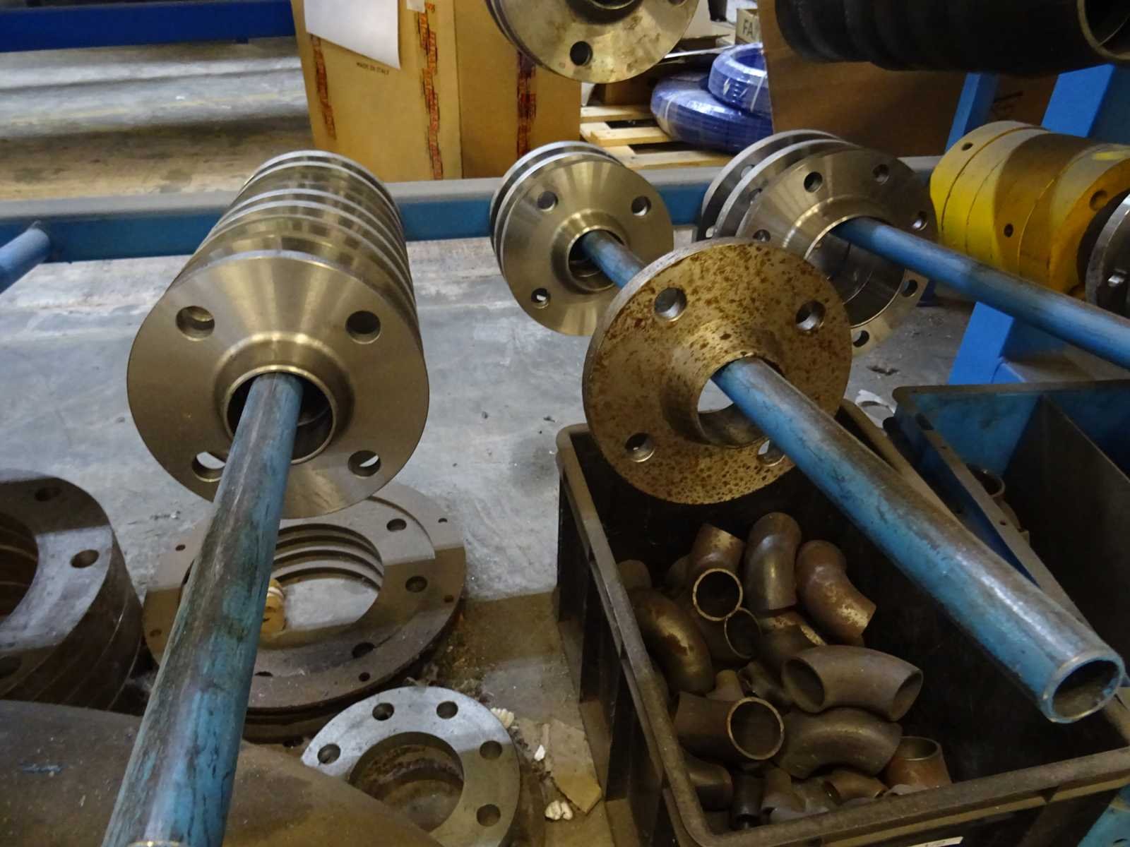 Inhoud stelling bestaande uit diverse flensen en lasfittingen, afmeting: 200x200x98cm (hxbxd)