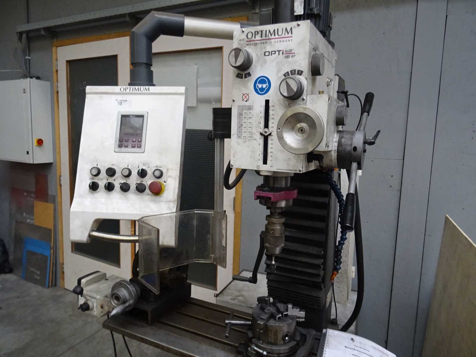 Boorvoeding, digitale aflezing, onderstel en automatische langsvoeding, bouwjaar: 2019, 3.200 tpm, 400V, inclusief klauwplaten en diverse toebehoren Merk: Optimum Type: Optimill MB 4P