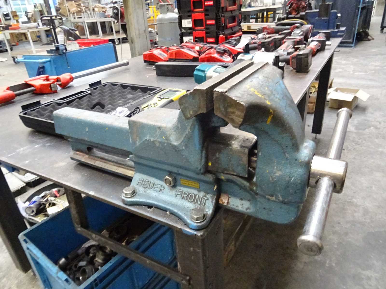 Inclusief Heuer Front Brockhaus 160 bankschroef, zonder verdere inhoud. Breedte: 2500mm Lengte: 1250mm Hoogte: 920mm Materiaal: Staal