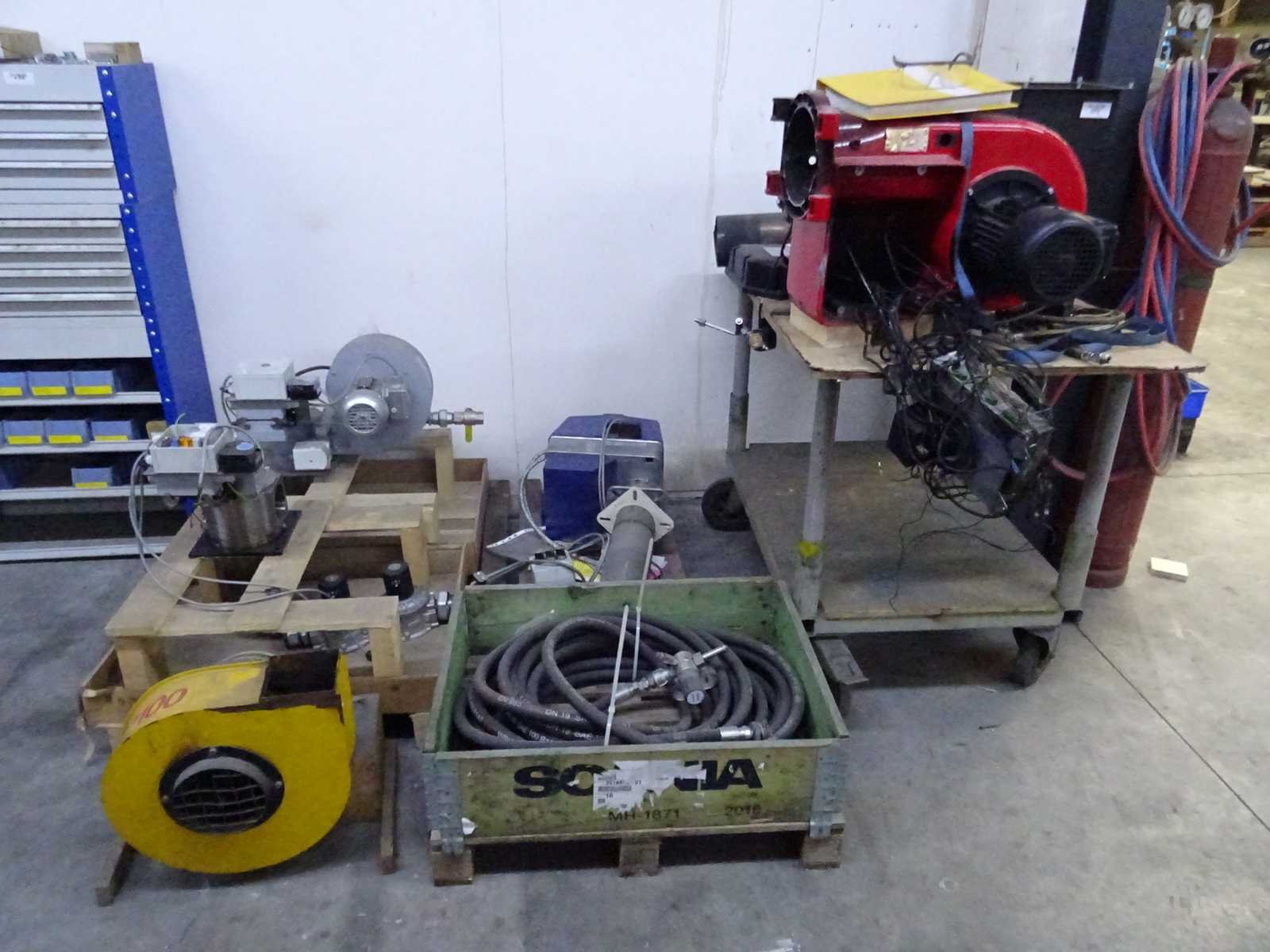 Partij gasbrandonderdelen met werkkar