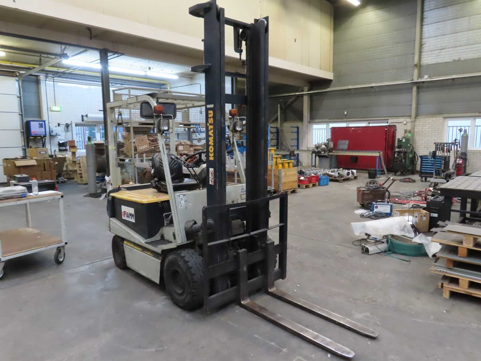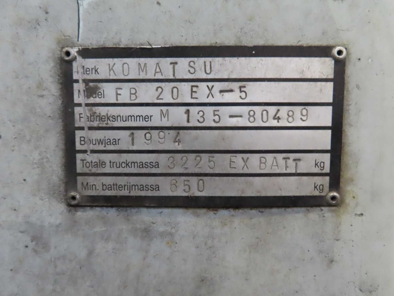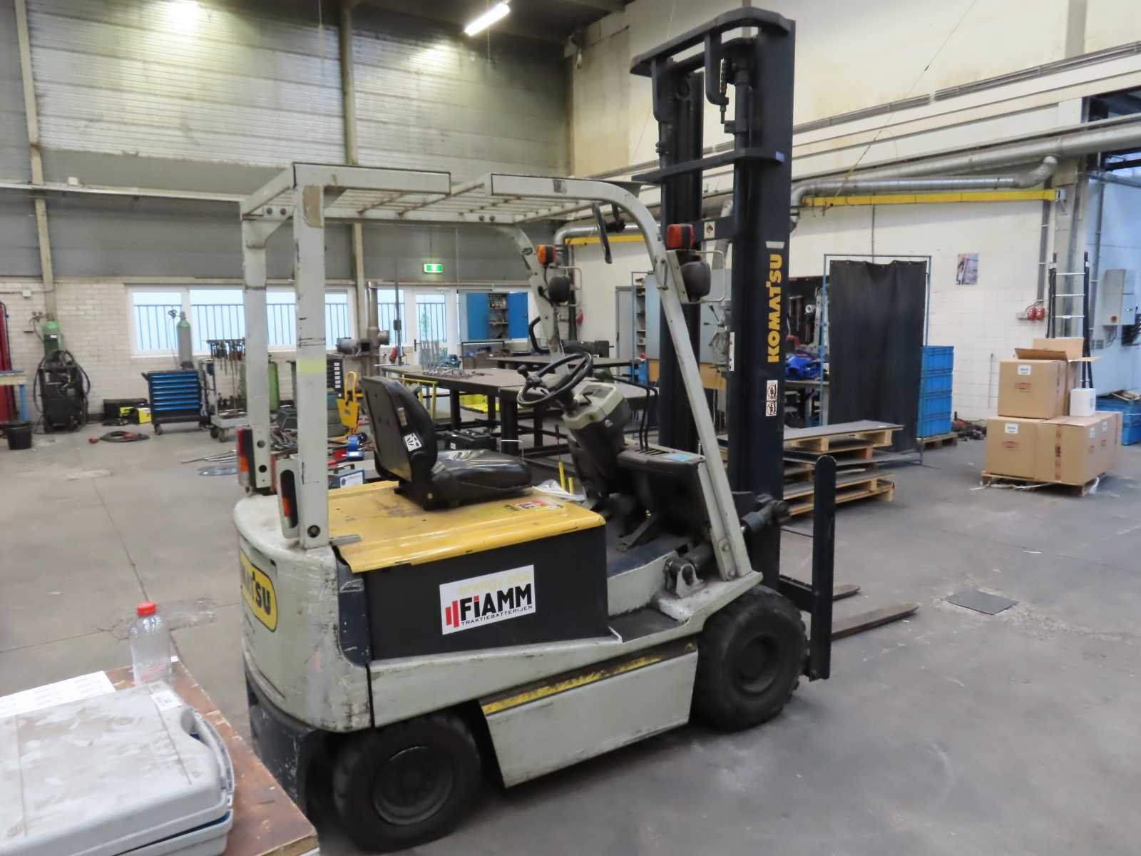 Gekeurd tot 09-2026. Let op, afwijkende ophaaldag. Gekeurd tot 09-2026. De heftruck dient op 5 februari te worden opgehaald om 12:00. Tot dan in gebruik, urenstand kan oplopen. Merk: Komatsu Type: FB 20 EX-5 Bouwjaar: 1994 Serienummer: M135-80489 Aantal wielen: 4 Afgelezen urenstand: 1209 Accu lader: true Duplex mast: true Max. hefhoogte: 4000mm Luchtbanden: true Minimale doorrijhoogte: 2800mm