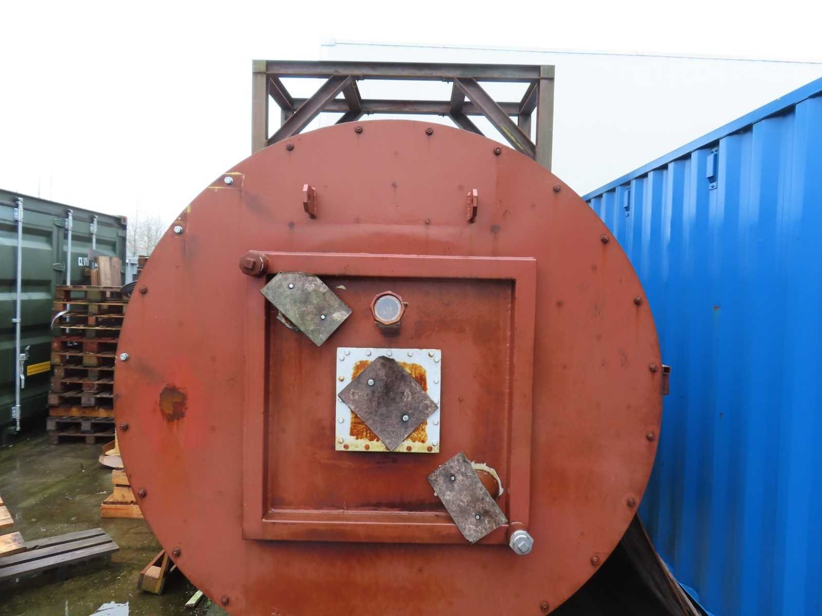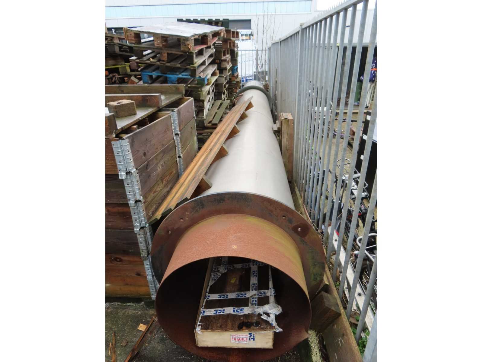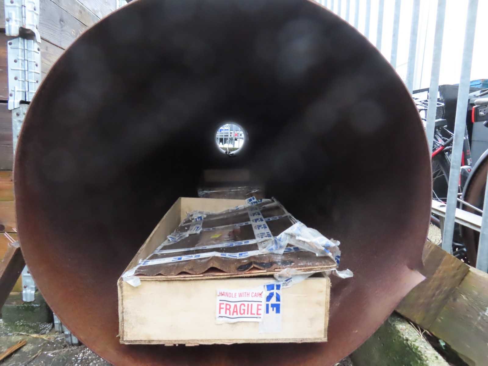 Metalen frame, betonnen binnenzijde, inclusief ca 10 meter lange schoorsteen