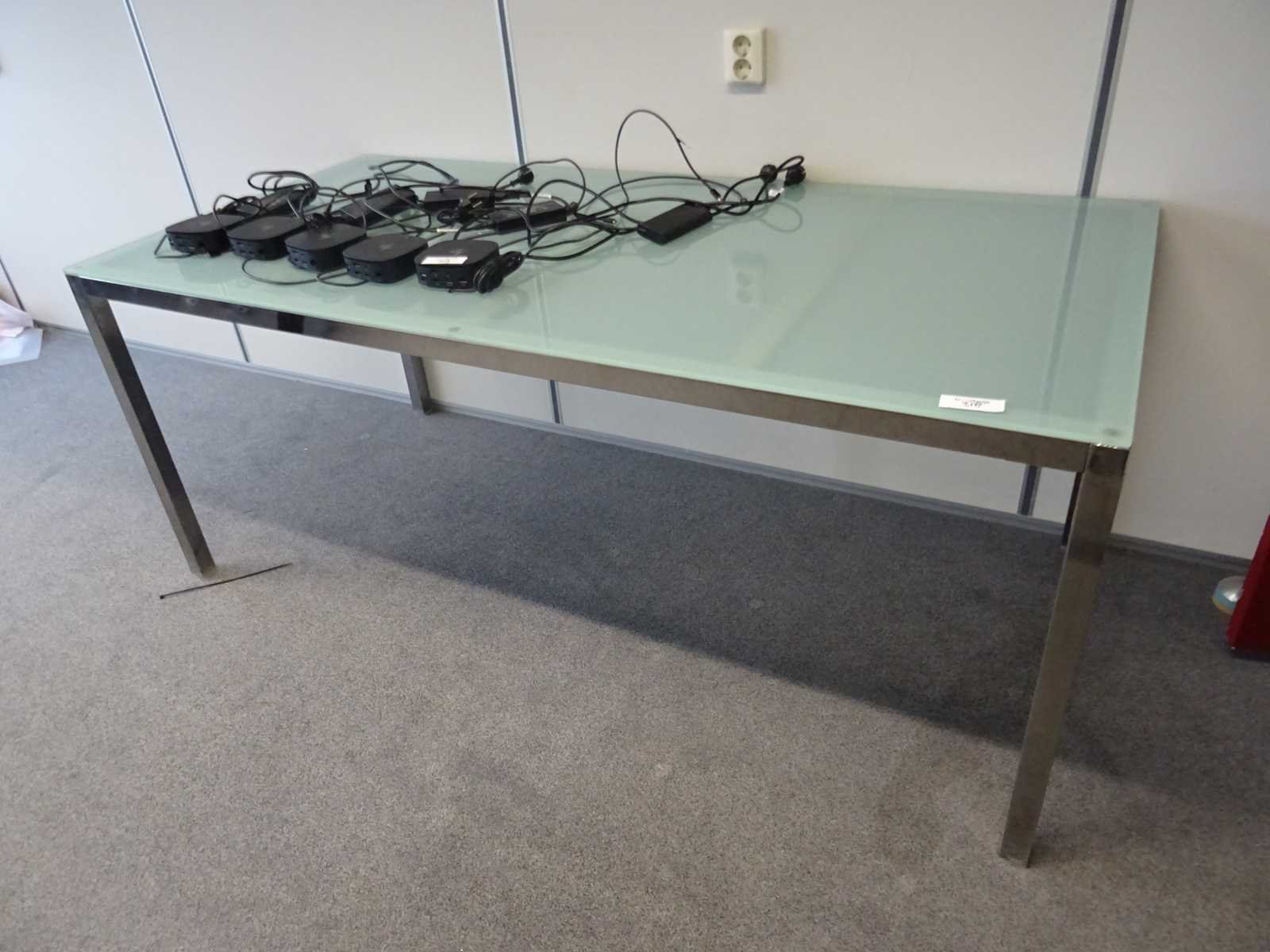 Stalen frame met glazen blad, afmeting: 74x180x85cm (hxbxd)