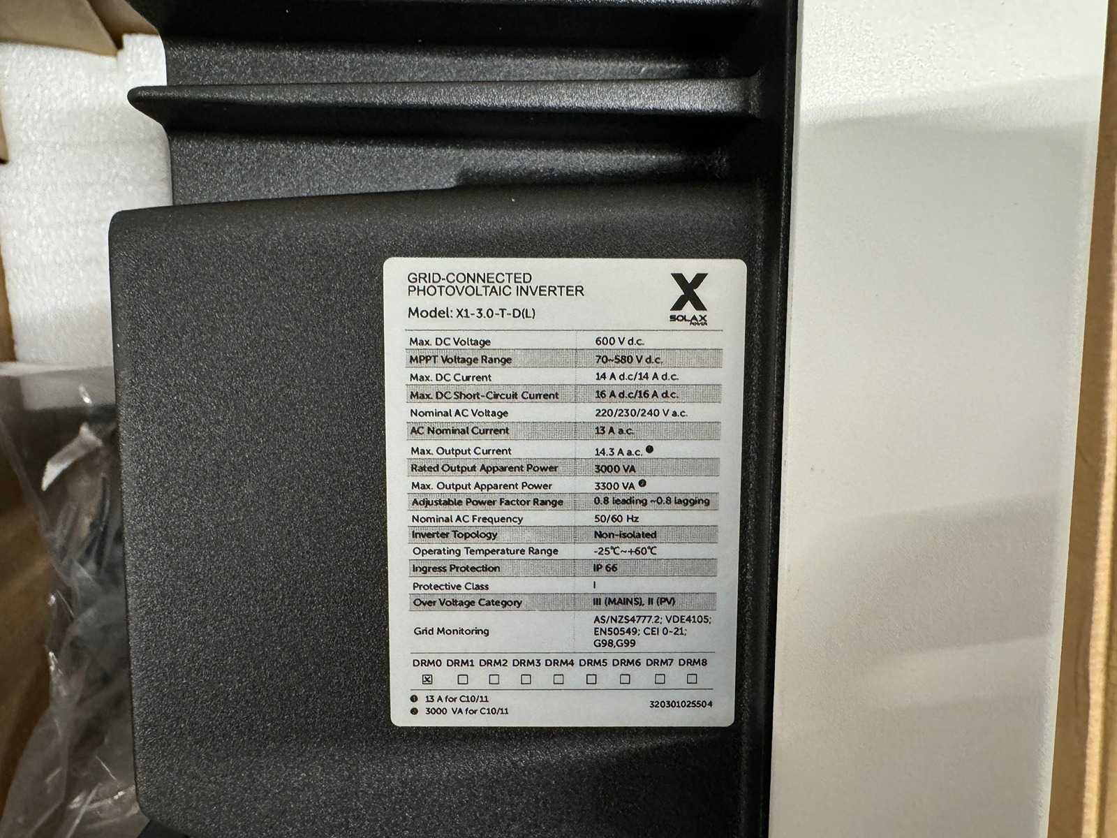 Set van 10 zonnepanelen (395 wp) met Solax Boost 3k omvormer (1-fase) 3 kW omvormer: Solax omvormer, Solax Boost 3k totaal vermogen: 3.950 Wp vermogen: 395 Wp per zonnepaneel herkomst: made in Germany conditie: nieuw Merk: Sonnenstromfabrik Type: Sapphire 395M108 Max. dc power: 395W Eigen gewicht: 23kg Totale afmeting L: 1555mm Totale afmeting Breedte: 1145mm Totale afmeting Hoogte: 35mm