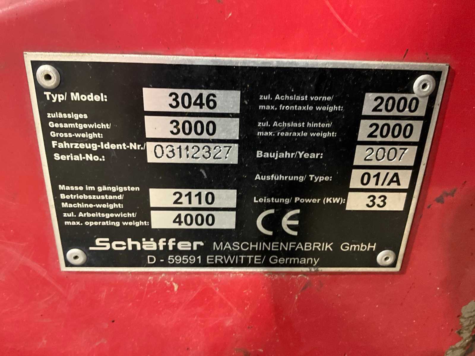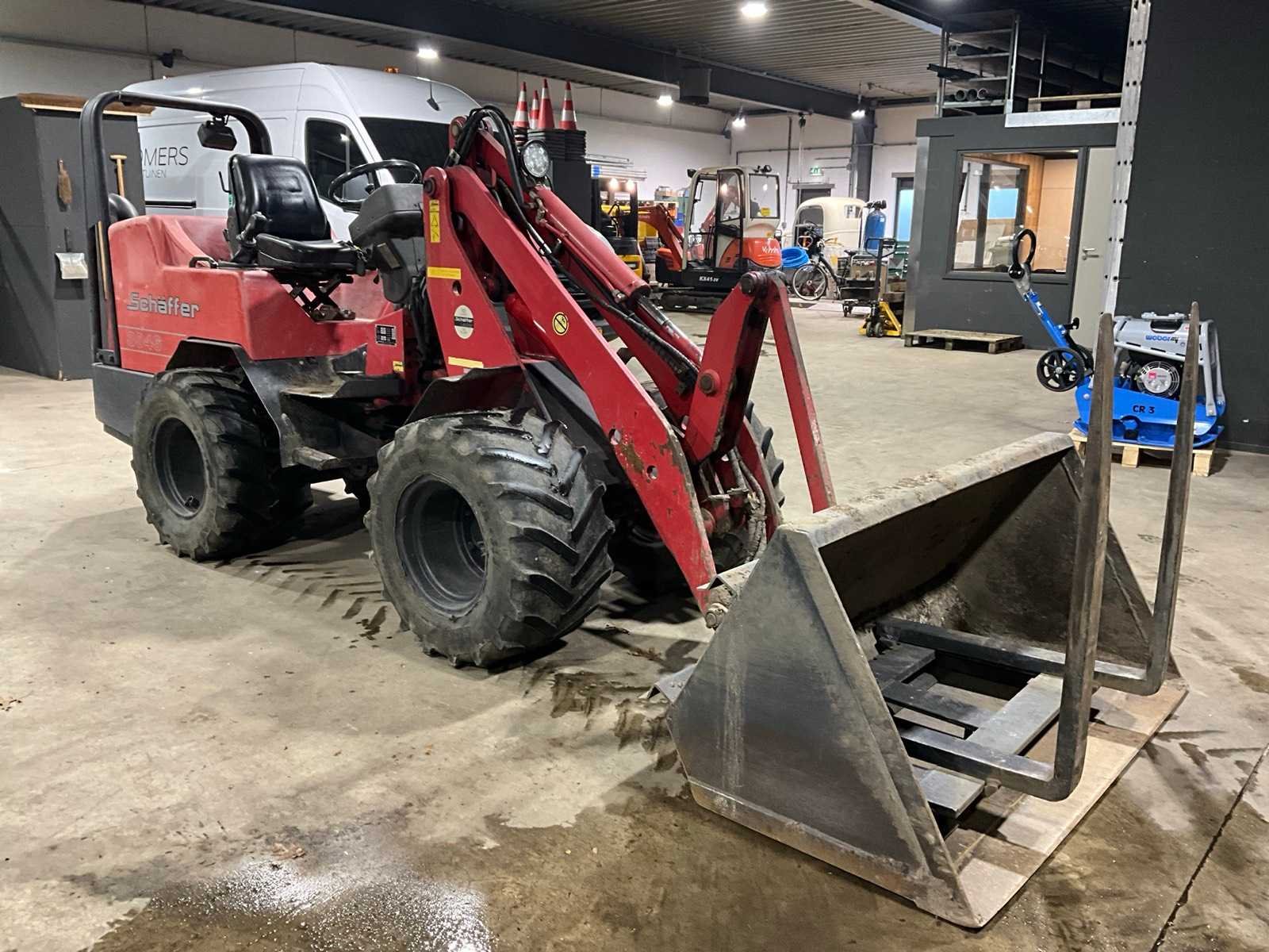 Bepe dichte bak, vorkenbord met vorken 950mm lang, Hydraulische snelwissel, extra functie afgedopt, 2e rijsnelheid, sleepoog Merk: Schaffer Type: 3046 Bouwjaar: 2007 Serienummer: 03112327 Merk motor: Kubota Kenteken: TXL-88-R Motorvermogen (kW): 33kW Aantal cilinders: 4 Brandstof: diesel Bedrijfsgewicht: 2110kg Graafbak afm. b: 1470mm Bandenmaat: 31x15.50-15 Afgelezen urenstand: 11465 Totale afmeting L: 4450mm Totale afmeting Breedte: 1500mm Totale afmeting Hoogte: 1850mm