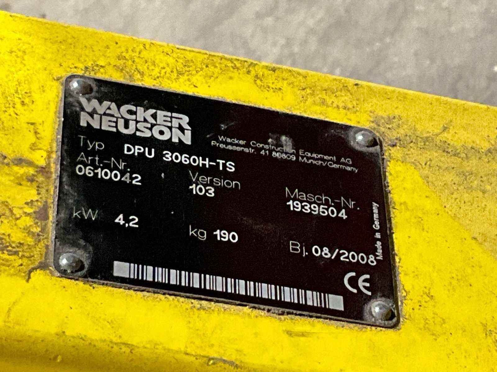 Handstart Merk: Wacker Type: DPU3060H-TS Bouwjaar: 2008 Serienummer: 1939504 Bedrijfsgewicht: 190kg Grondplaat afm. l: 650mm Grondplaat afm. b: 570mm Merk motor: Hatz Motorvermogen (kW): 4.2kW Brandstof: Diesel Totale afmeting L: 750mm Totale afmeting Breedte: 600mm Totale afmeting Hoogte: 120mm