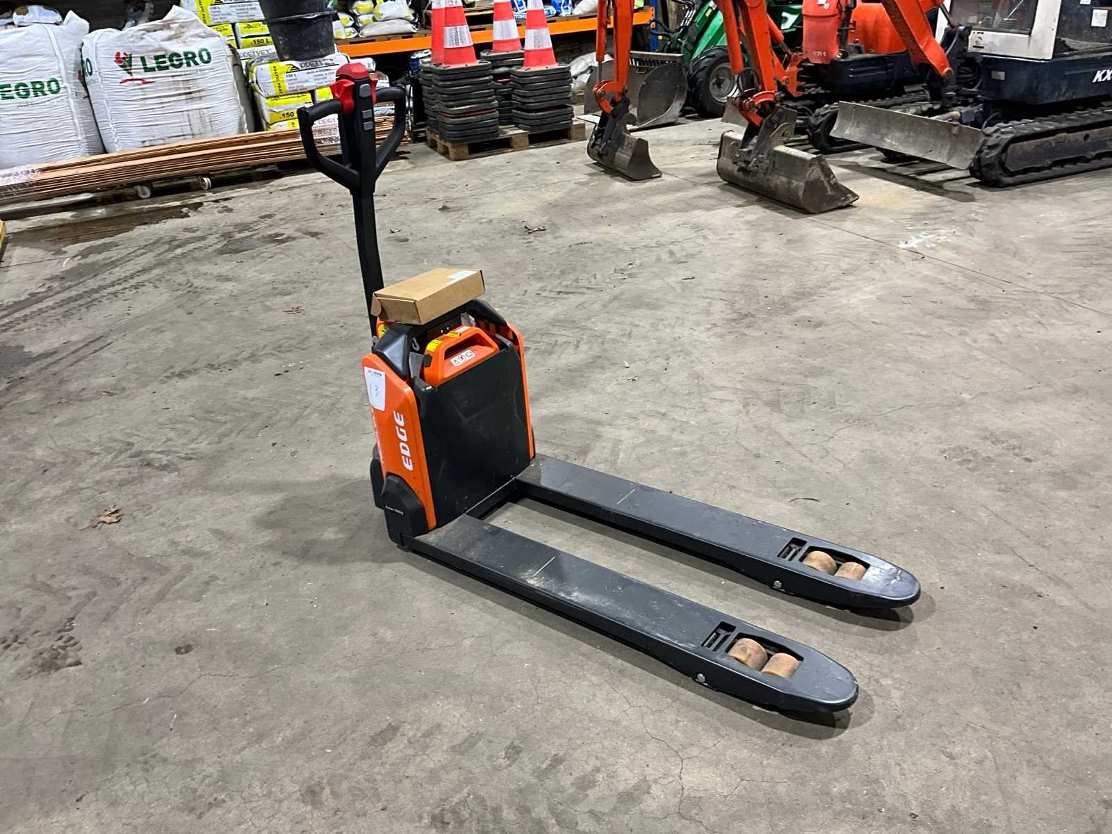 24V 20Ah accu, 0.65kw, ongebruikt Merk: Noblelift Type: PTE15N Bouwjaar: 2023 Serienummer: 20230604434 Hefvermogen: 1500kg Lepellengte: 1150mm Accu lader: true Afgelezen urenstand: 1 Eigen gewicht: 123kg Totale afmeting L: 1500mm Totale afmeting Breedte: 540mm Totale afmeting Hoogte: 1300mm