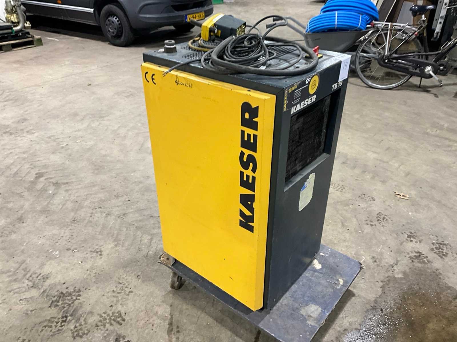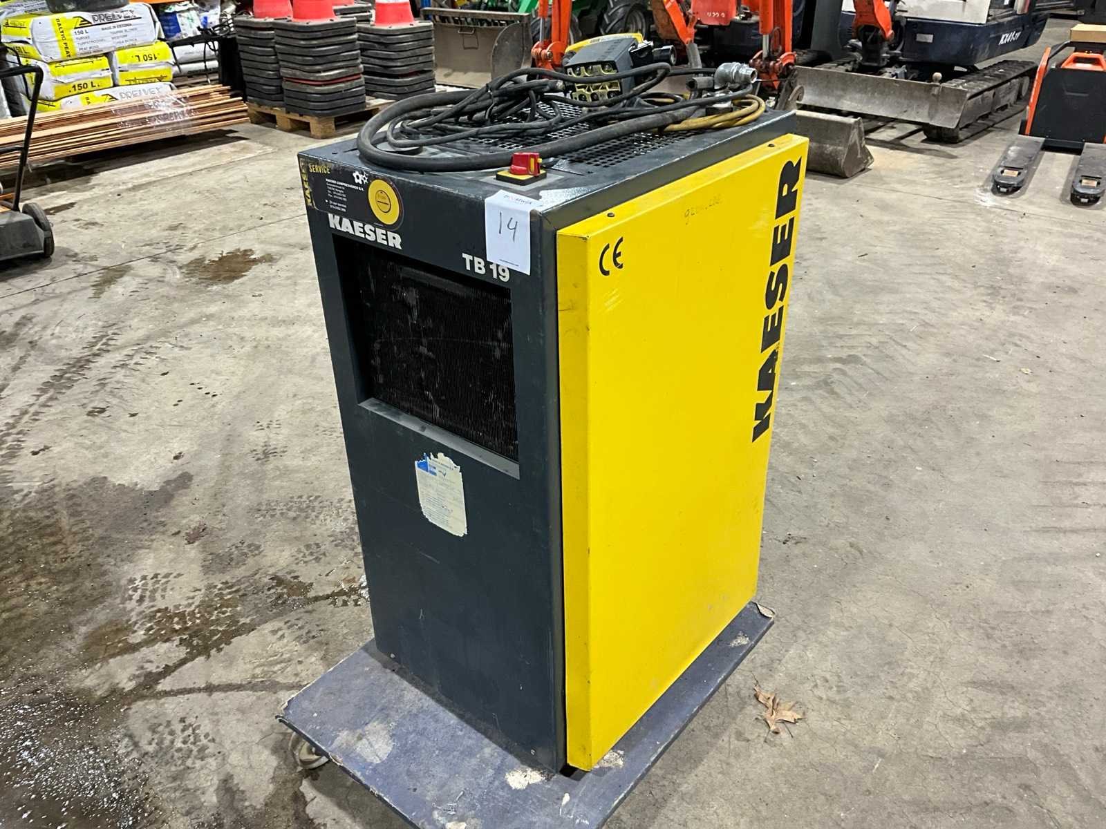 Werkend gedemonteerd, niet recent gebruikt, exclusief transporthond Merk: Kaeser Type: TB19 Aansluiting: 240V Totale afmeting L: 620mm Totale afmeting Breedte: 550mm Totale afmeting Hoogte: 1100mm