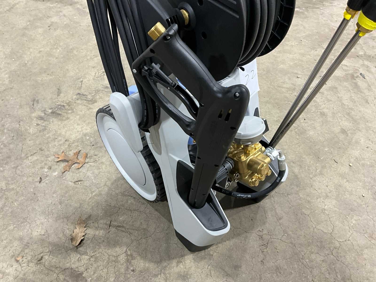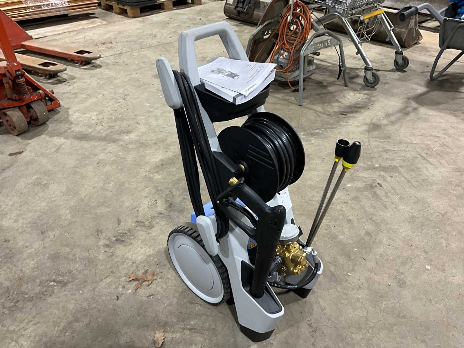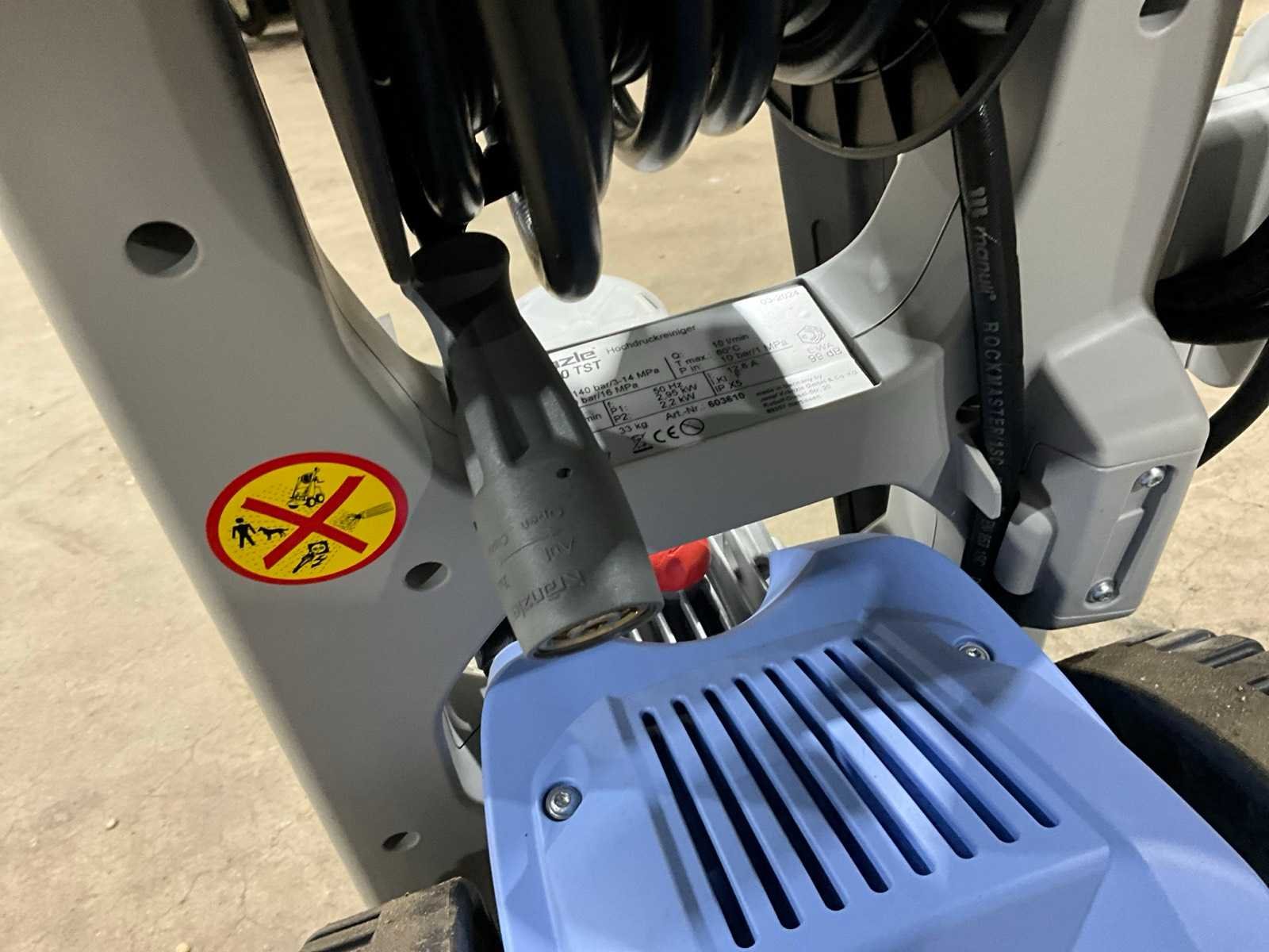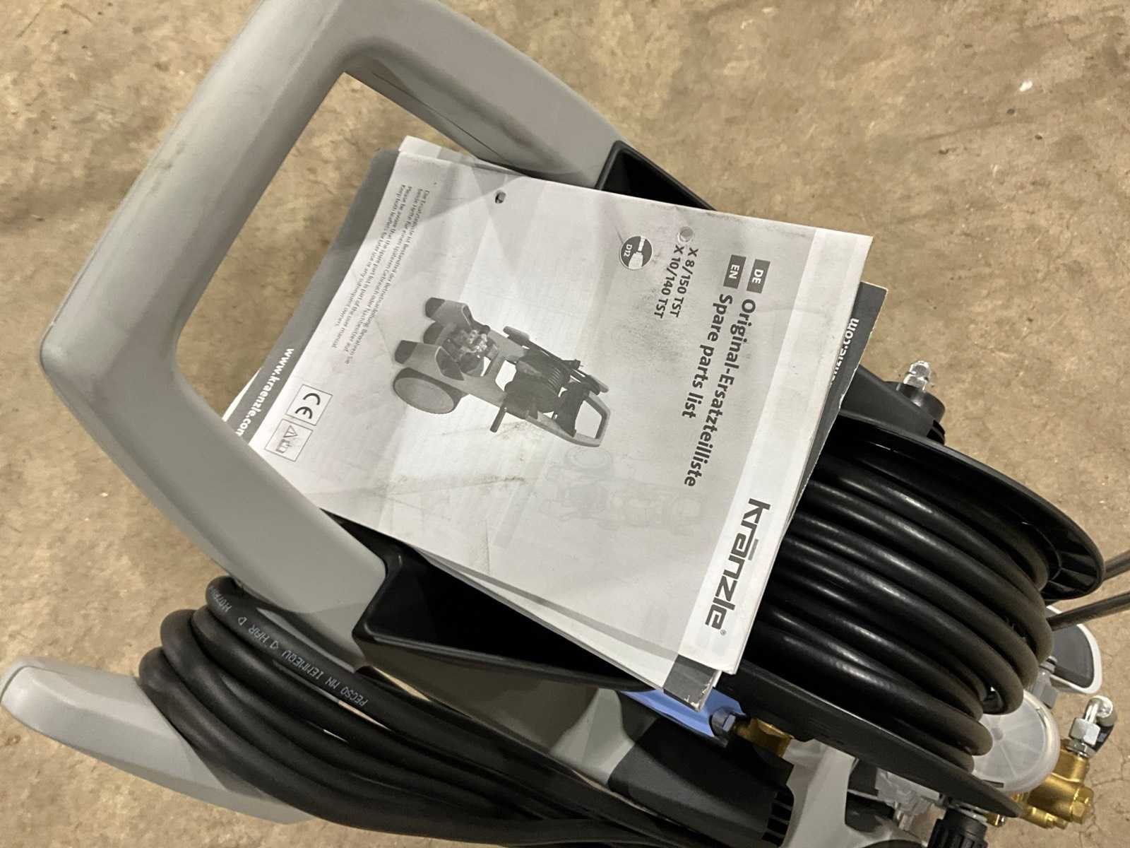 Snelkoppeling watertoevoer, spuitlans met 2 einddelen, slanghaspel, 230V Merk: Kranzle Type: X10/150TST Bouwjaar: 2024 Max. druk: 160bar Maximale wateropbrengst: 10 Gewicht: 33kg Lengte: 50cm Breedte: 35cm Hoogte: 91cm