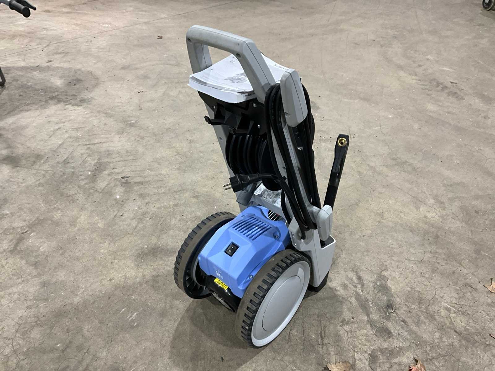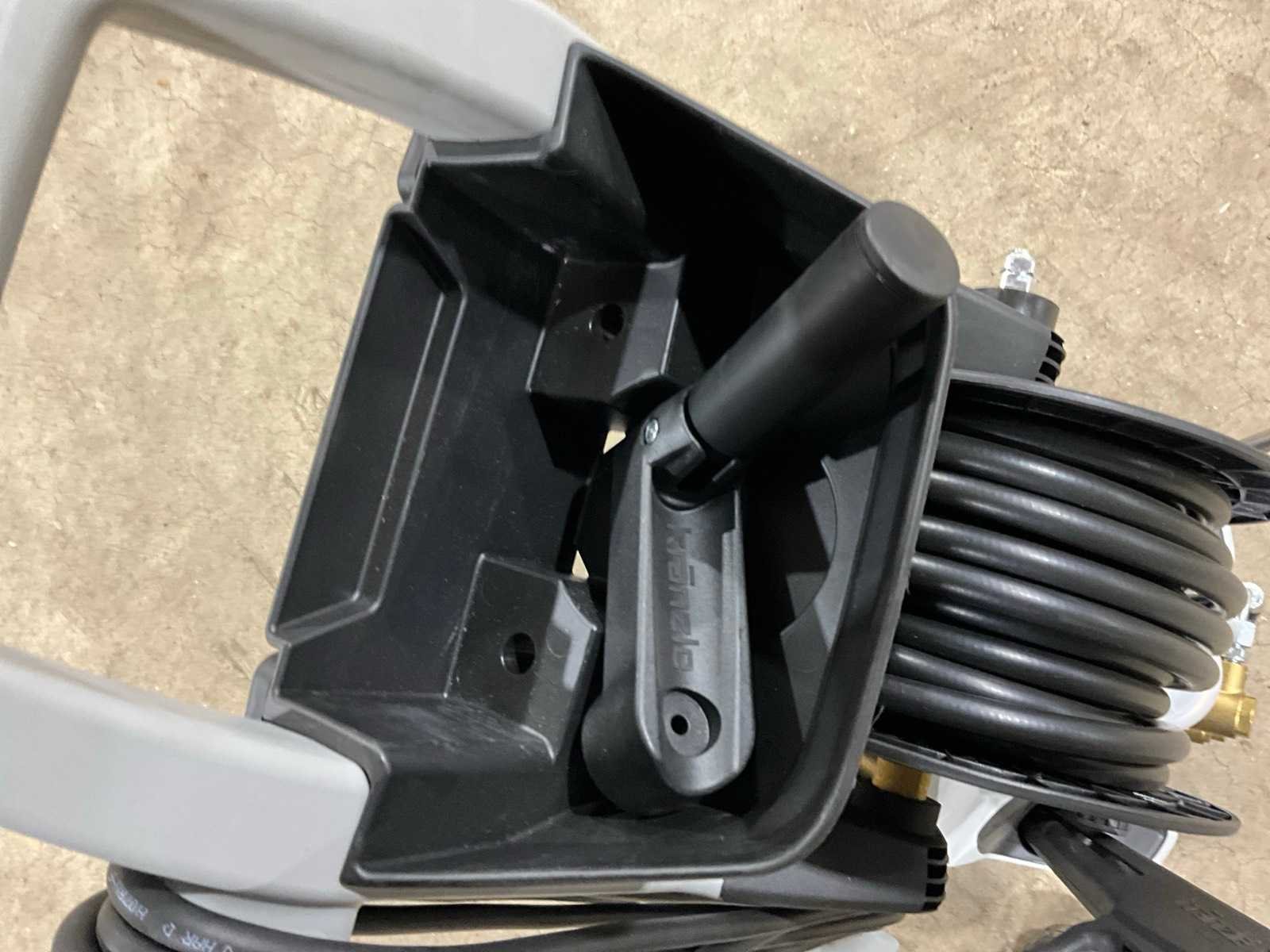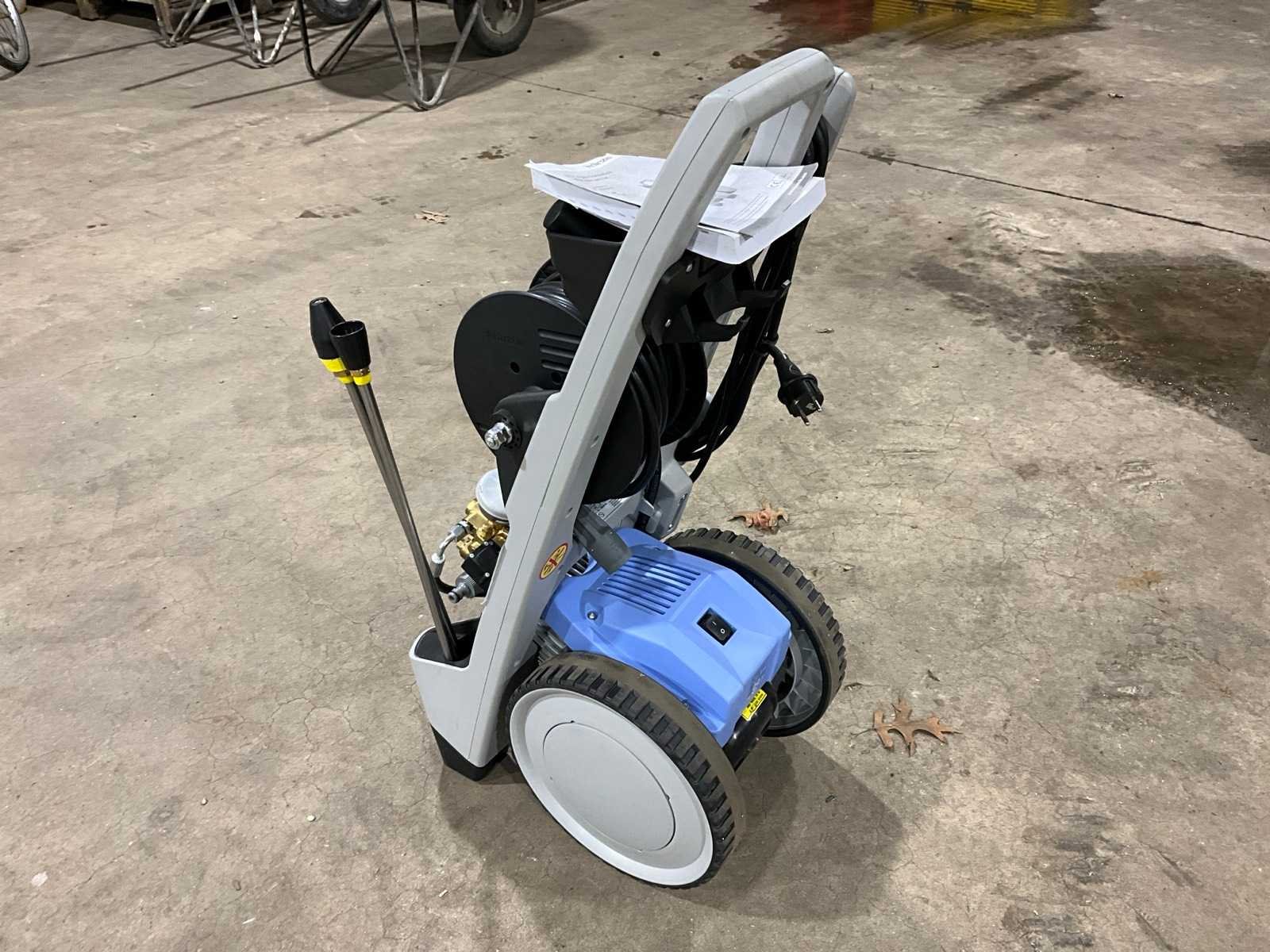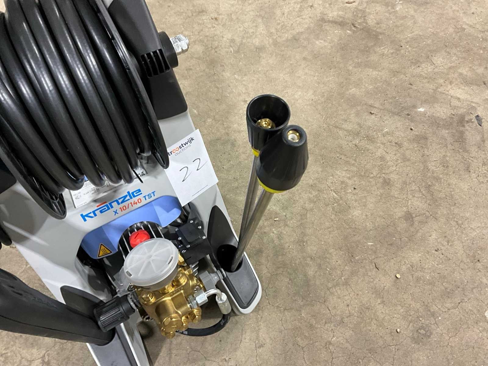 Snelkoppeling watertoevoer, spuitlans met 2 einddelen, slanghaspel, 230V Merk: Kranzle Type: X10/150TST Bouwjaar: 2024 Max. druk: 160bar Maximale wateropbrengst: 10 Gewicht: 33kg Lengte: 50cm Breedte: 35cm Hoogte: 91cm