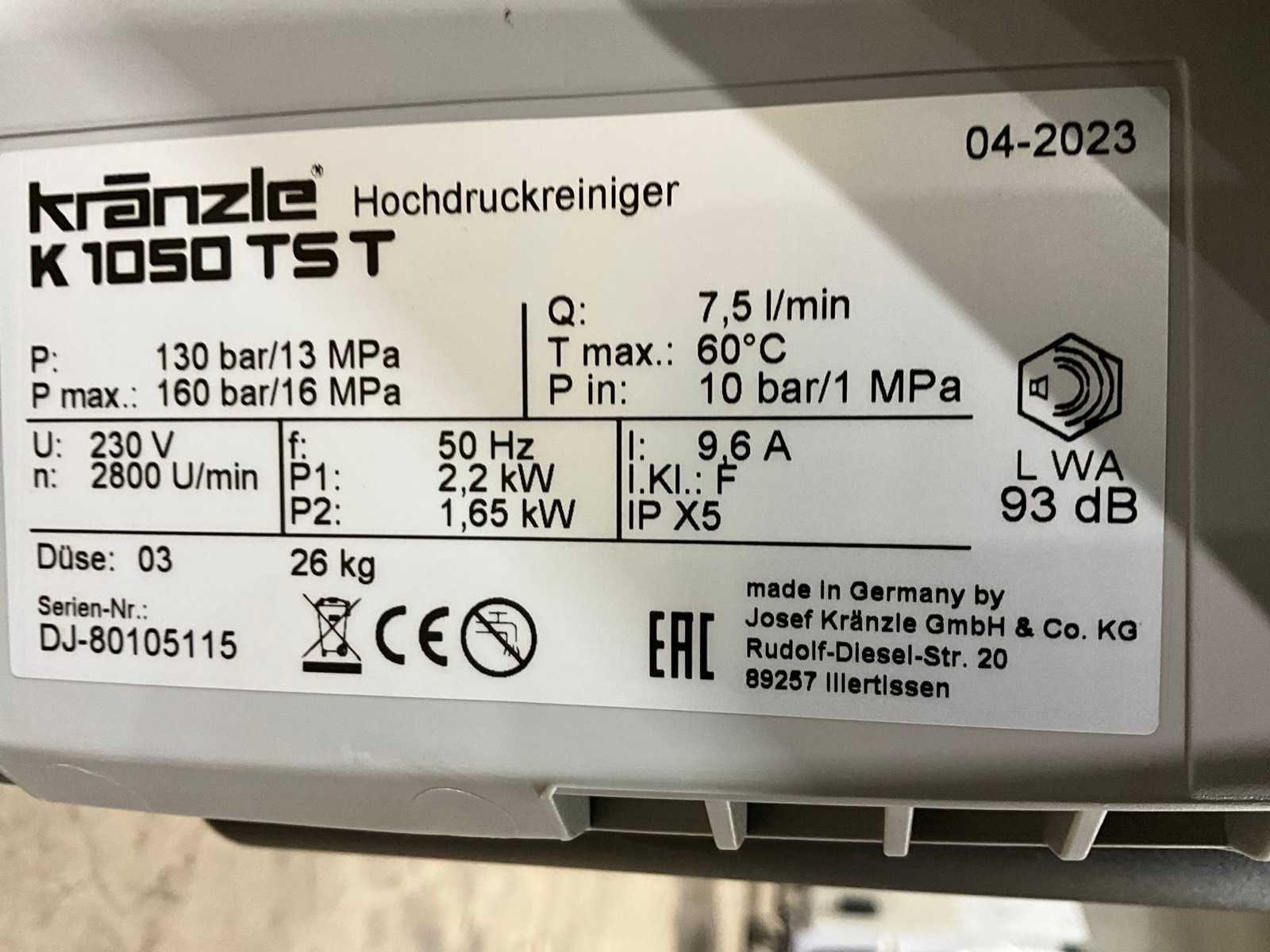 2023 kranzle k1050tst hogedrukreiniger