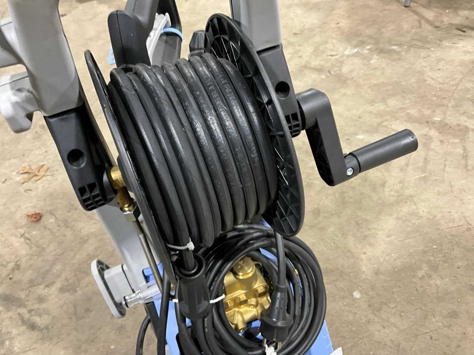 7,5l/m, snelkoppeling watertoevoer, spuitlans met 2 eindstukken, slanghaspel, 230V Merk: Kranzle Type: K1050TST Bouwjaar: 2023 Max. druk: 160bar Maximale wateropbrengst: 7.5 Gewicht: 26kg Lengte: 450cm Breedte: 500cm Hoogte: 850cm