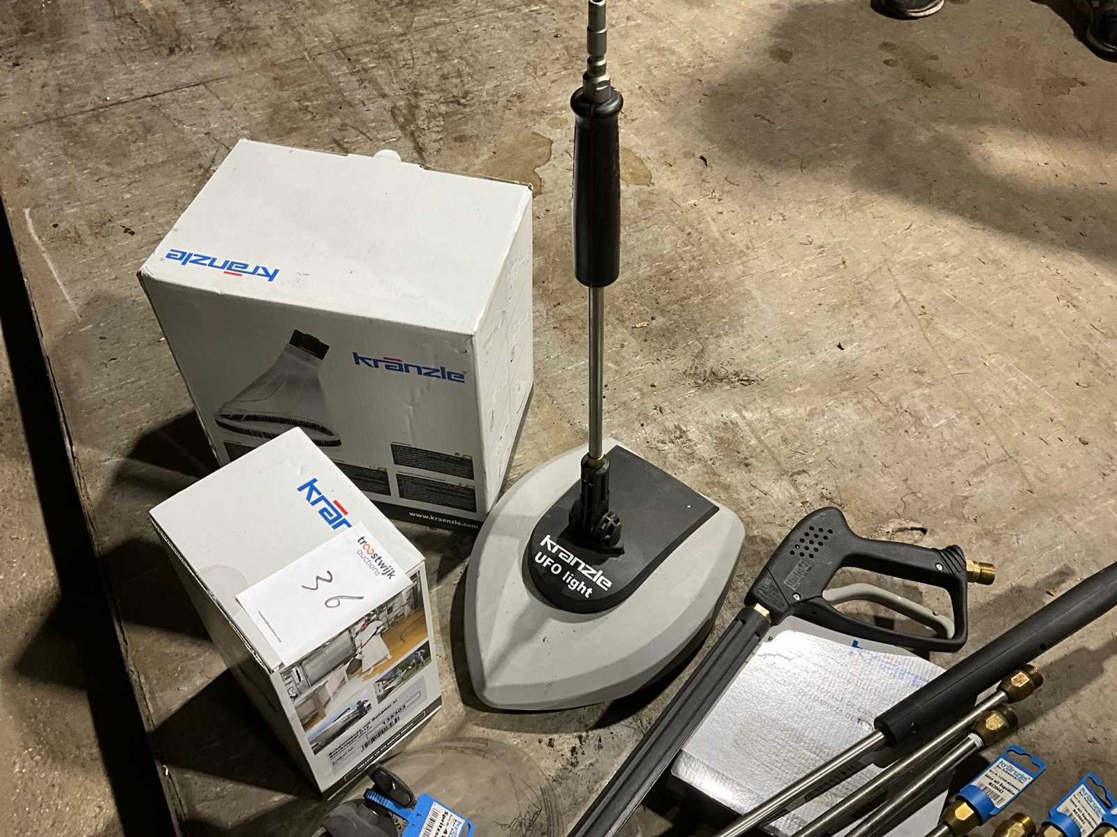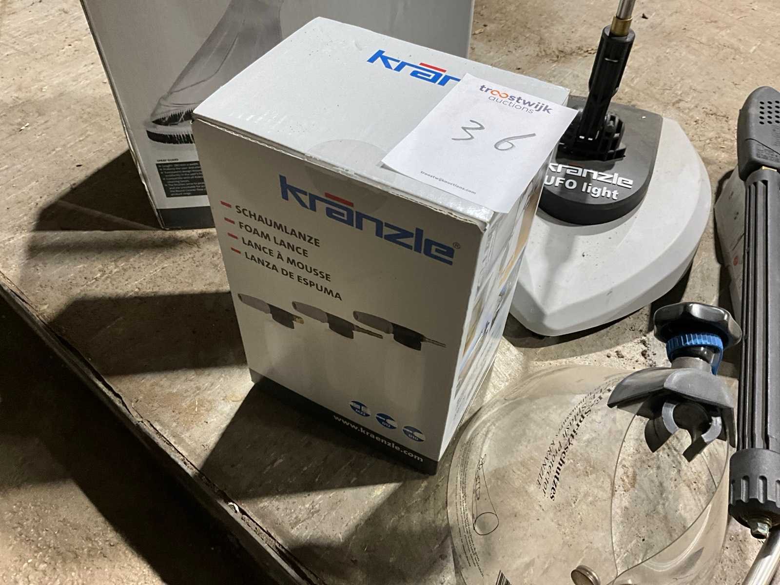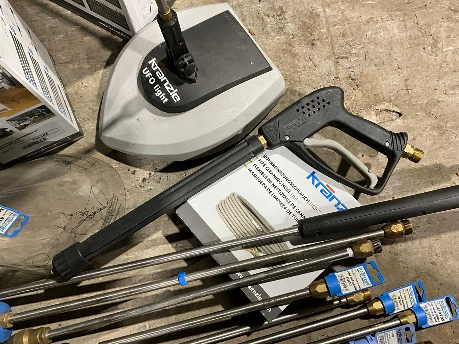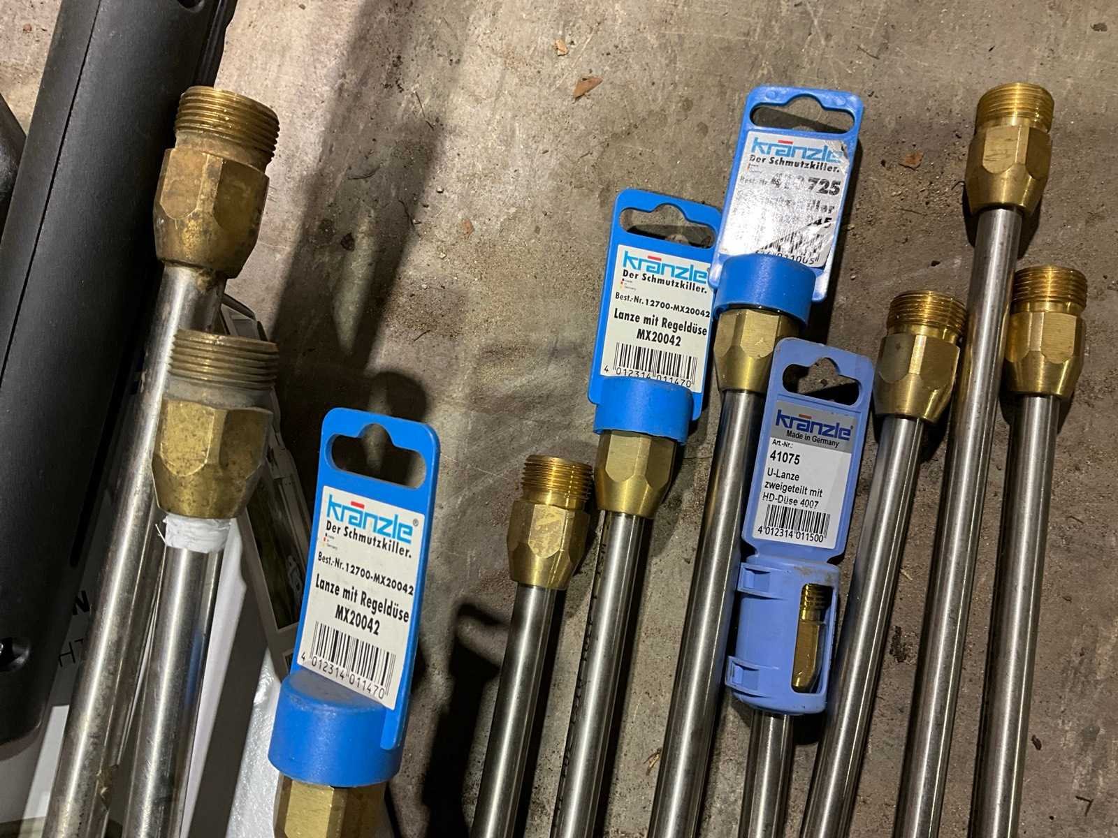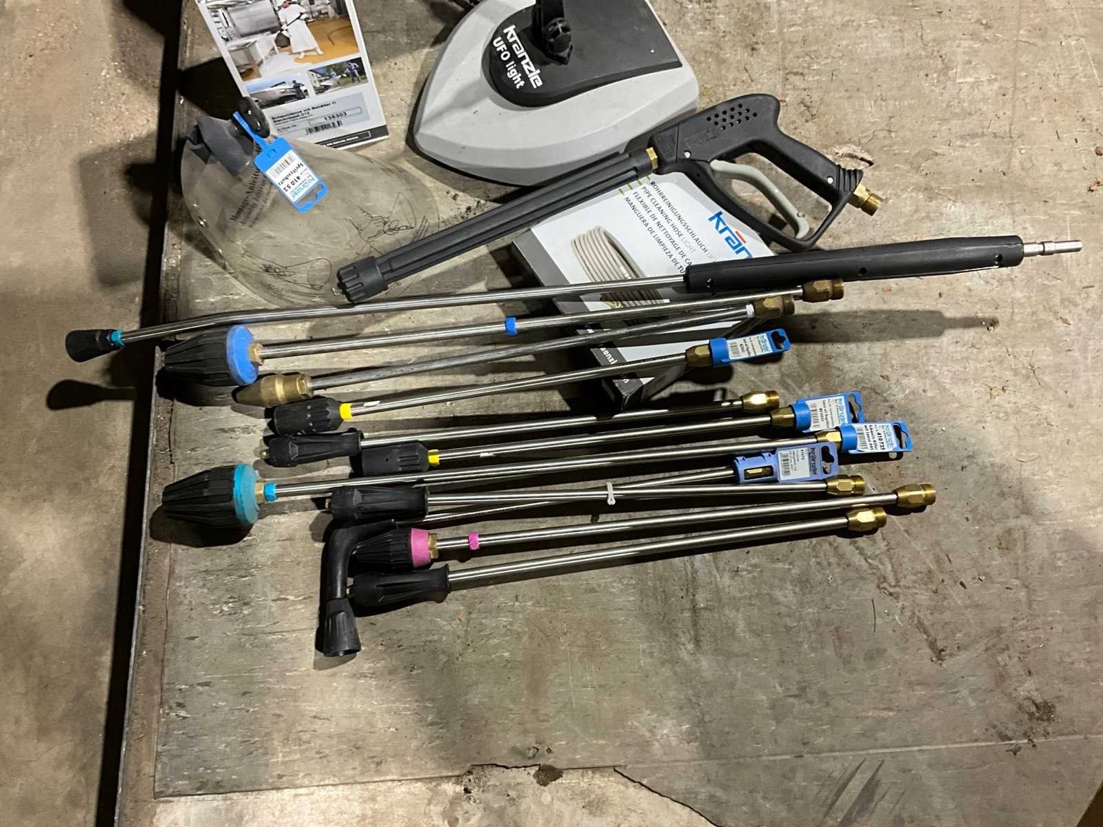 Terras reiniger, schuimsproeier, 2x beschermkap, slang, 10x eindstuk lans met verschillende kop, spuitlans Merk: Kranzle