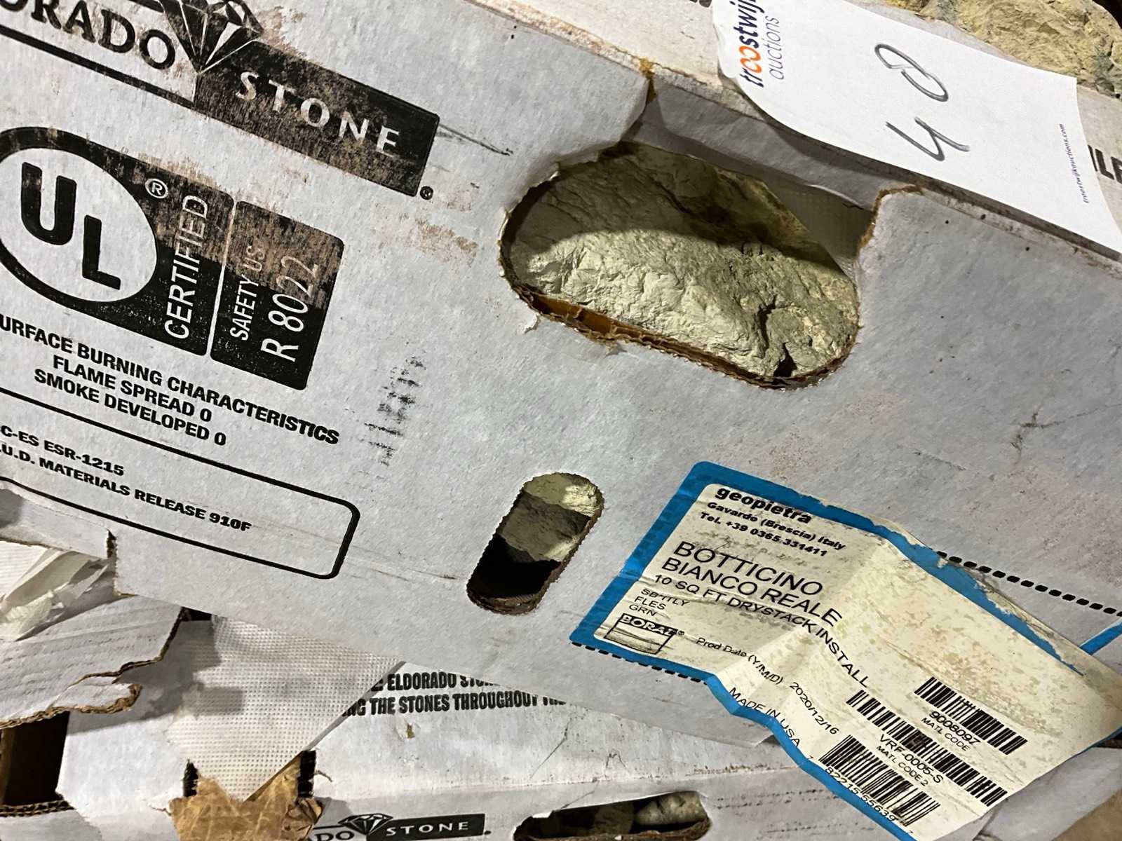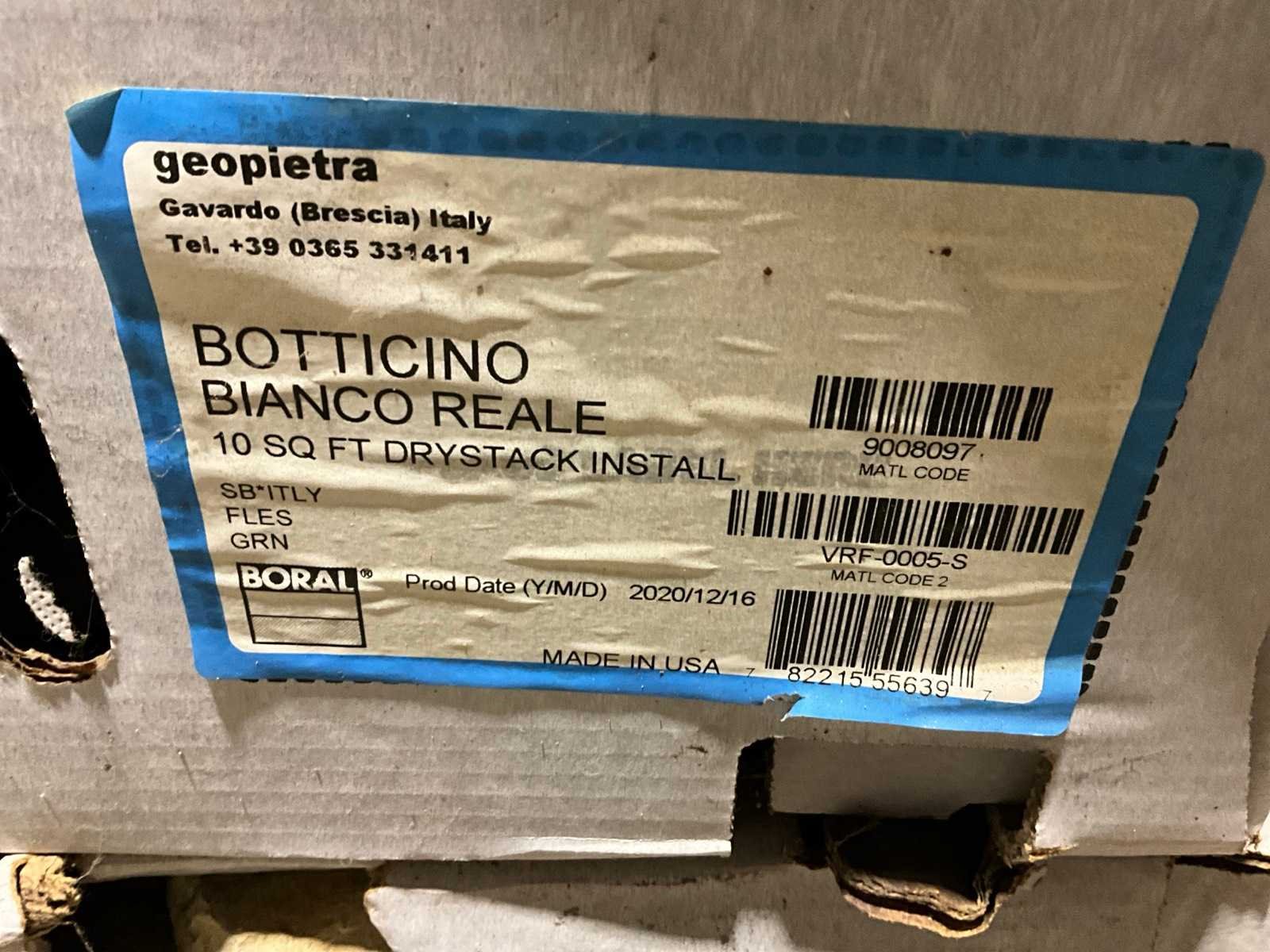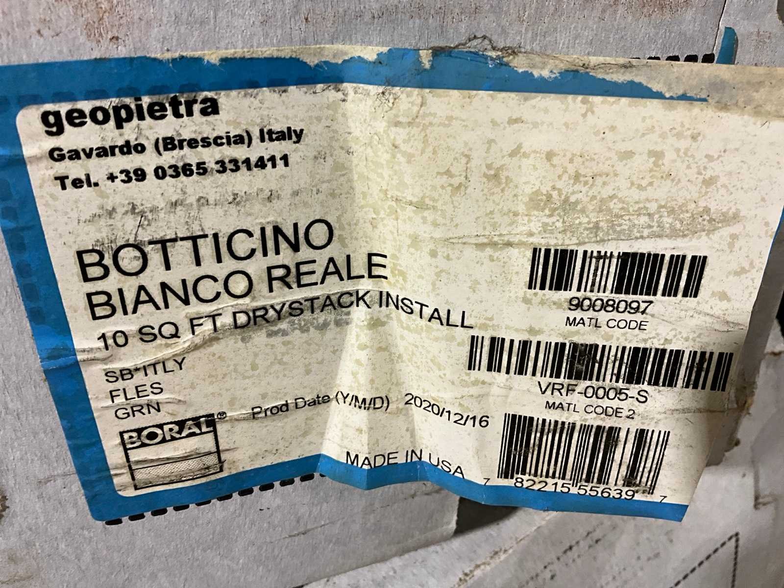 10 sq Ft per doos, dry stack, productiejaar 2020, exclusief transporthondje Merk: Eldorado Model: Botticino Bianco Reale