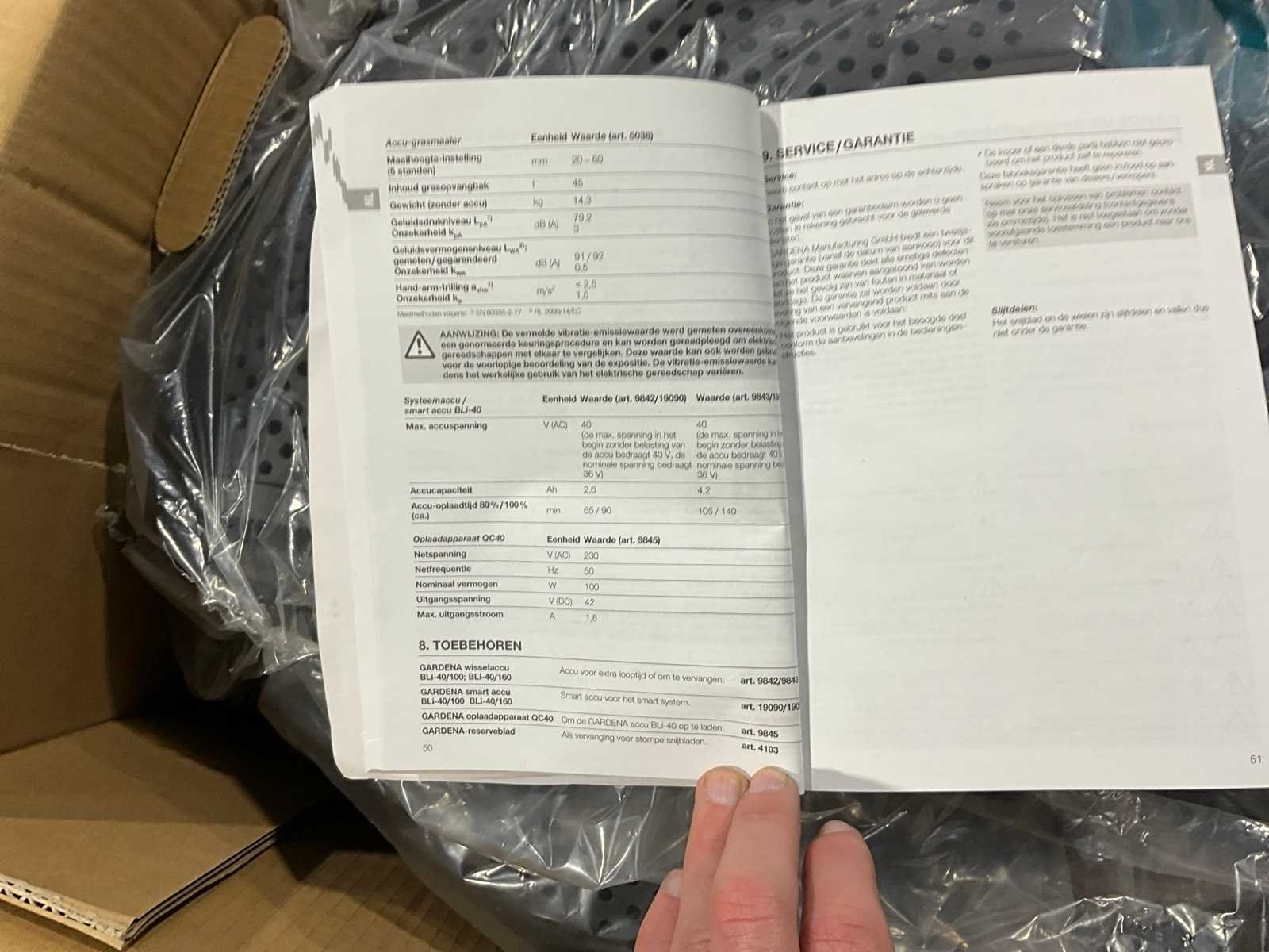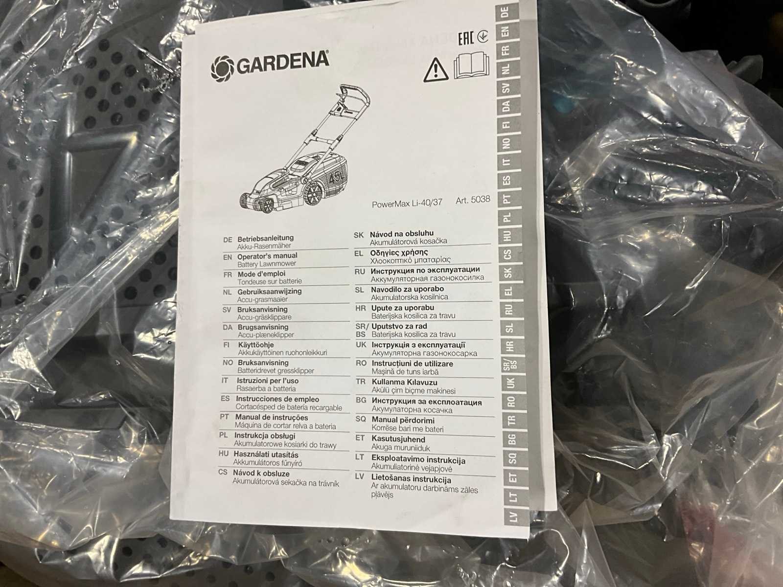Ongebruikt in doos, 40V accu, maaihoogte instelbaar Merk: Gardena Type: Powermax LI-40/37 Werkbreedte: 37cm Elektrisch aangedreven: true Aansluiting: 40 Opvang container: true Eigen gewicht: 14.3kg Totale afmeting L: 80cm Totale afmeting Breedte: 45cm Totale afmeting Hoogte: 33cm