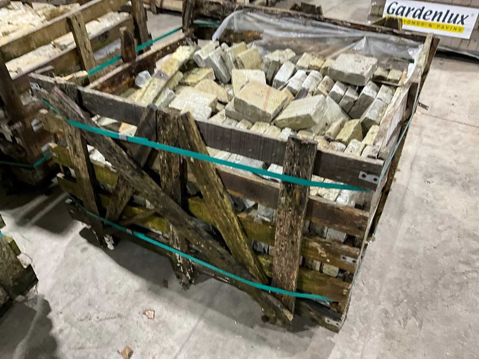 3x pallet, stenen circa 14,5x14,5cm, 5cm dik, circa 20m2 Oppervlakte: 20m²