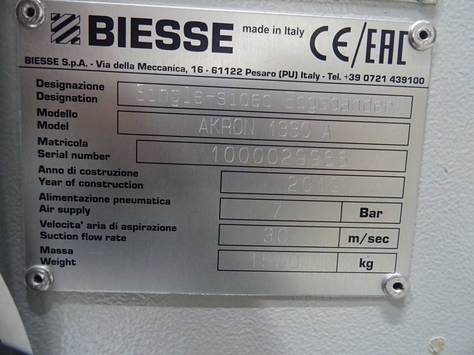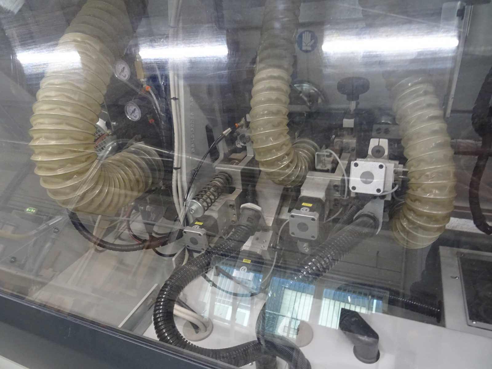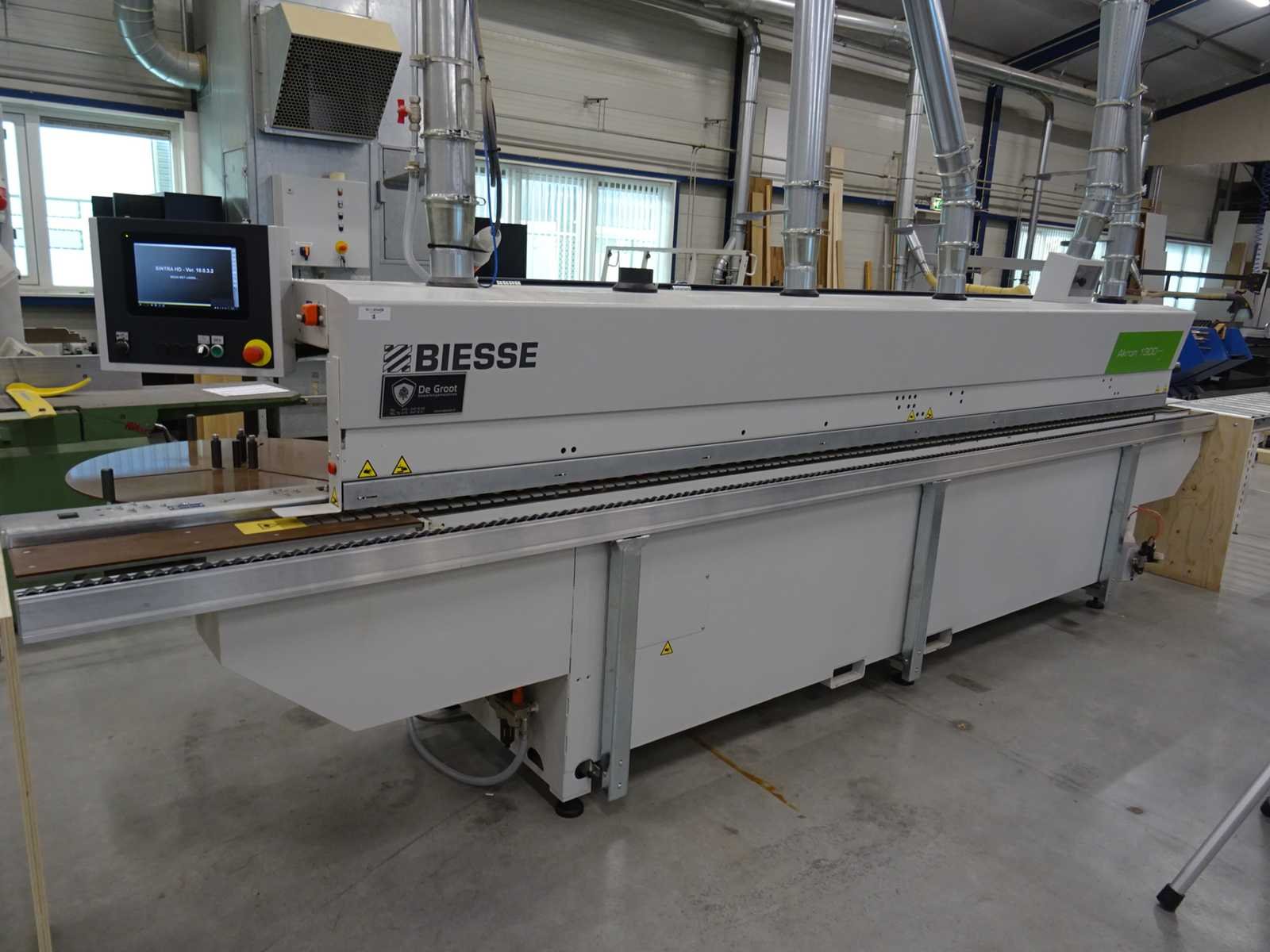 Voorzien van motorische verstelling van de brug, invoerliniaal, aandrukzone, freesunit, radiusschraapunit, hoekafrondingsunit, functie voor alleen afronden en niet frezen, antihechtingsspray, cleaning unit en pneumatische in-en uitschakeling freesunit en schraapunit. Inclusief rollerbanen weerszijde. Merk: Biesse Type: Akron 1330A Bouwjaar: 2019 Serienummer: 1000029966 Paneeldikte: 10-60mm Kantbanddikte: 0.4-3mm Kantenbandhoogte: 14-64mm Min. werkstuklengte: 150mm Min. werkstukbreedte: 85mm Doorvoersnelheid: 12m/min Zaagunit: true Voorfreesunit: true Freesunit: true Rondloopunit: true Schraapunit: true Poetsunit: true Aansluiting: 400V Machinegewicht: 1500kg Afmeting l: 5100mm Afmeting b: 1000mm Afmeting h: 1450mm