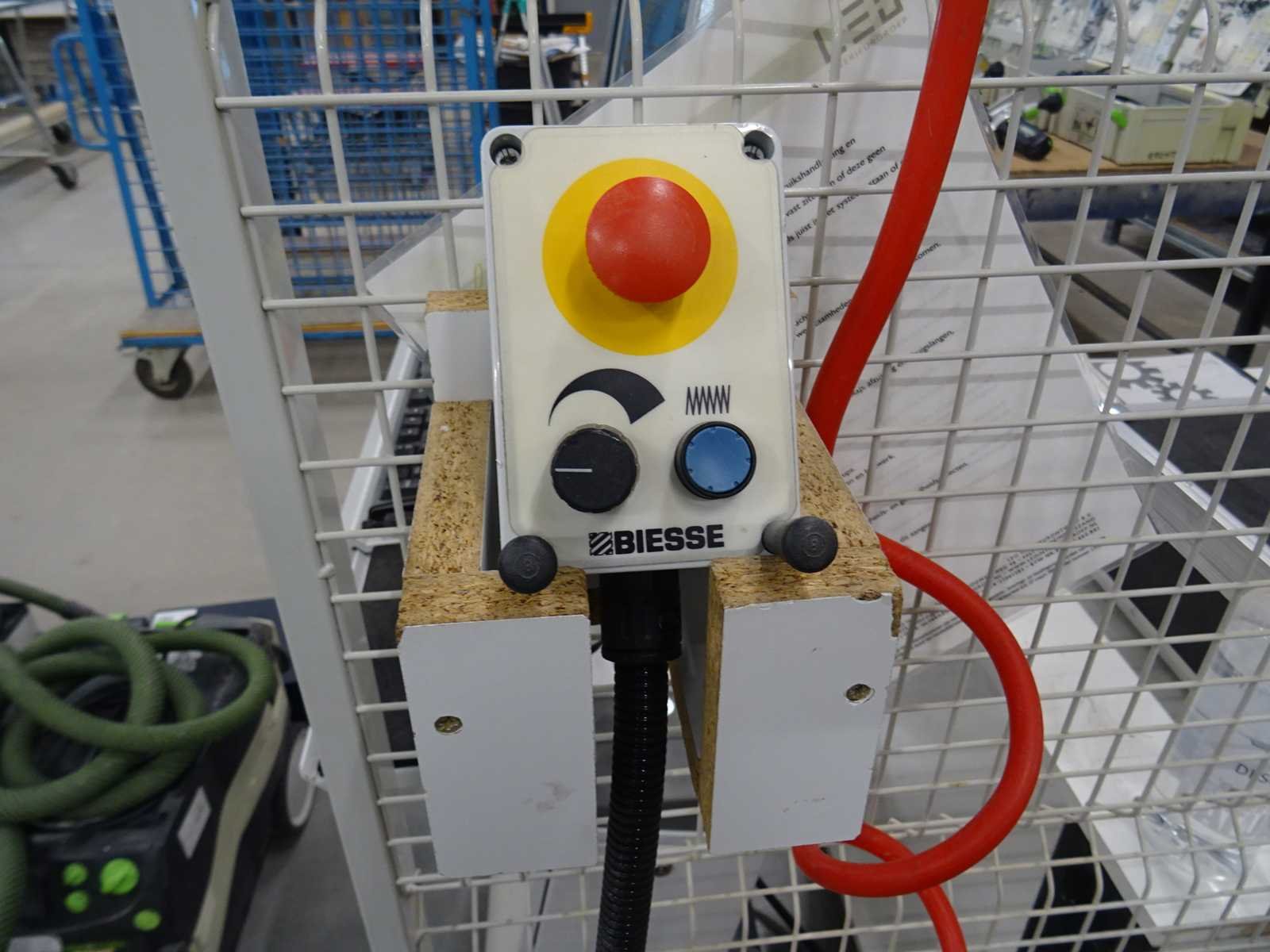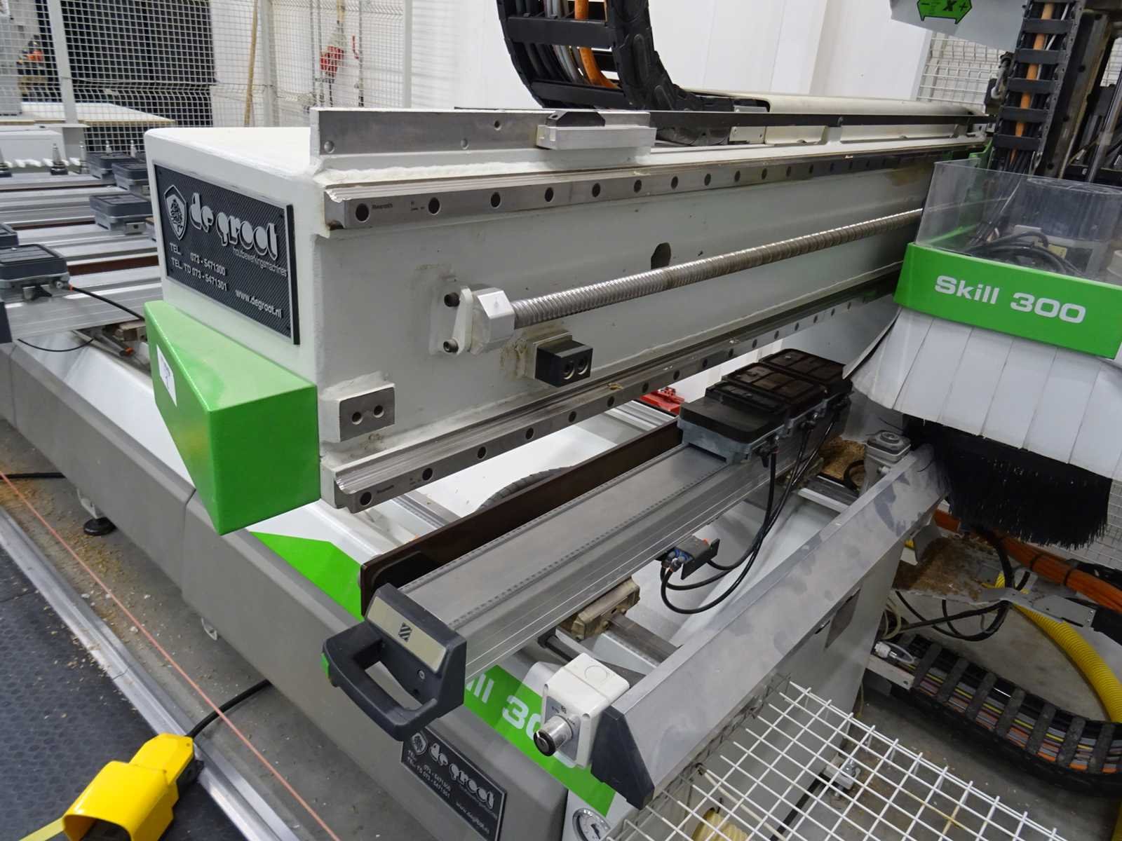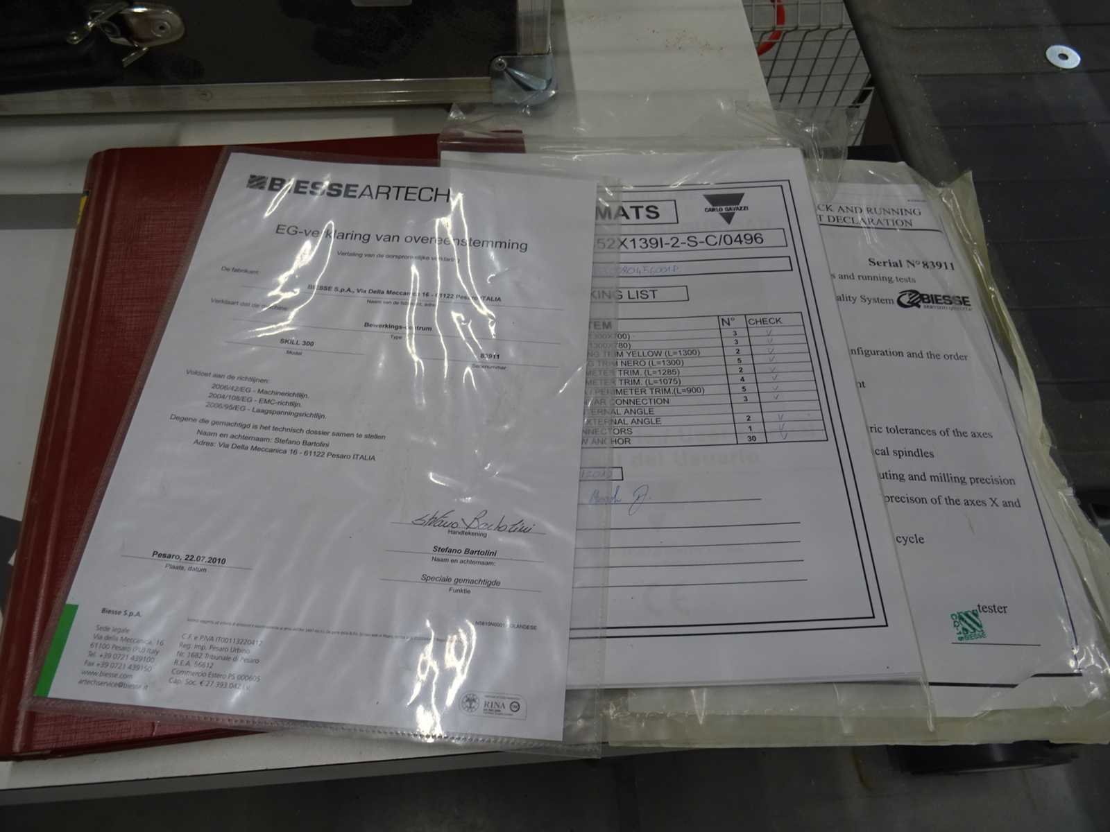 Inclusief omheining, veiligheidsmatten, diverse toebehoren en documentatie. Merk: Biesse Type: Skill 300 K3 Bouwjaar: 2010 Serienummer: 83911 Verplaatsing x-as: 2900mm Verplaatsing y-as: 1130mm Verplaatsing z-as: 110mm Opname: ISO 30 Snelheid van n =: 24000rpm Aansluiting: 400V Machinegewicht: 1800kg Totale afmeting L: 4700mm Totale afmeting Breedte: 3500mm Totale afmeting Hoogte: 2150mm