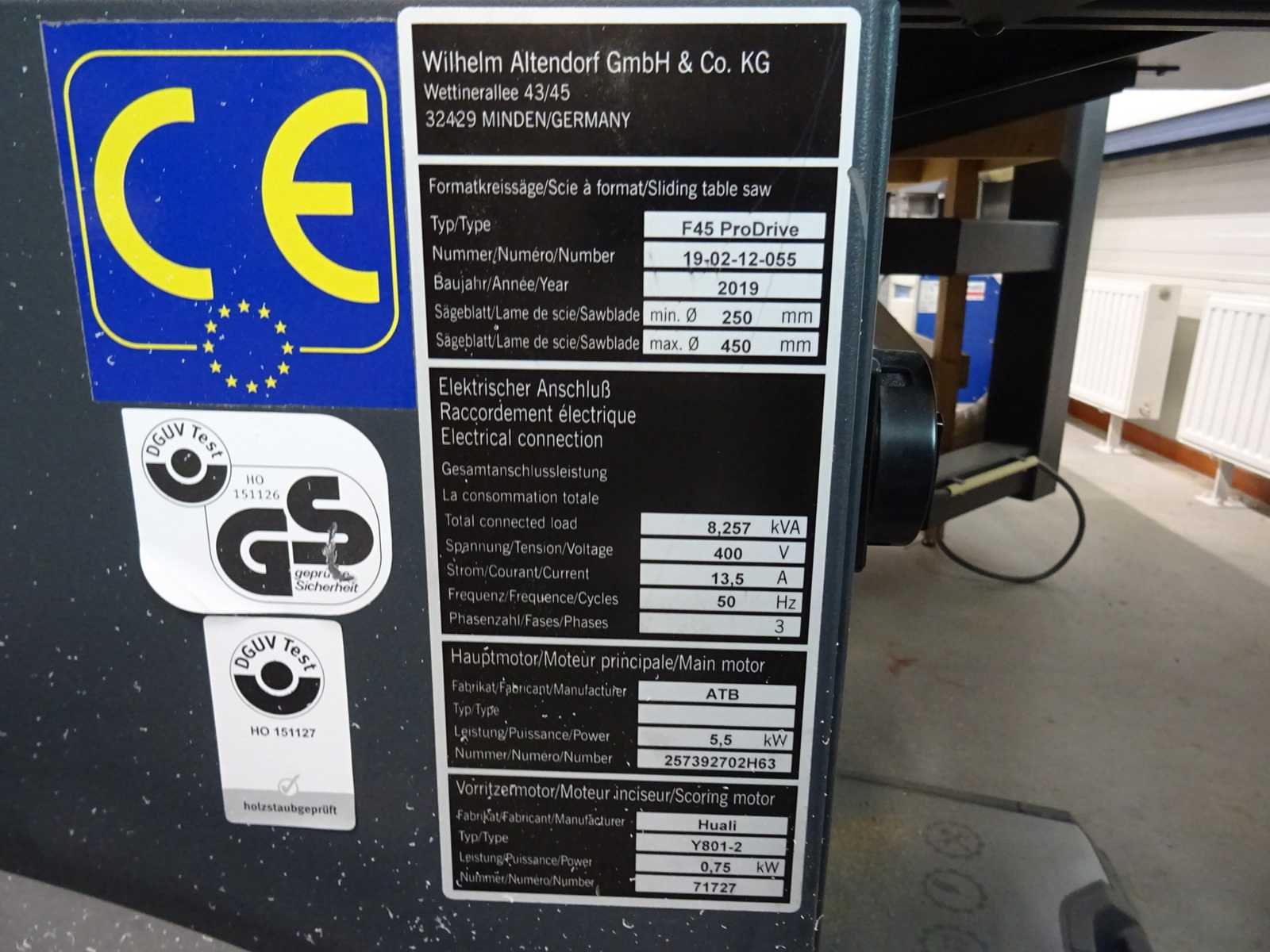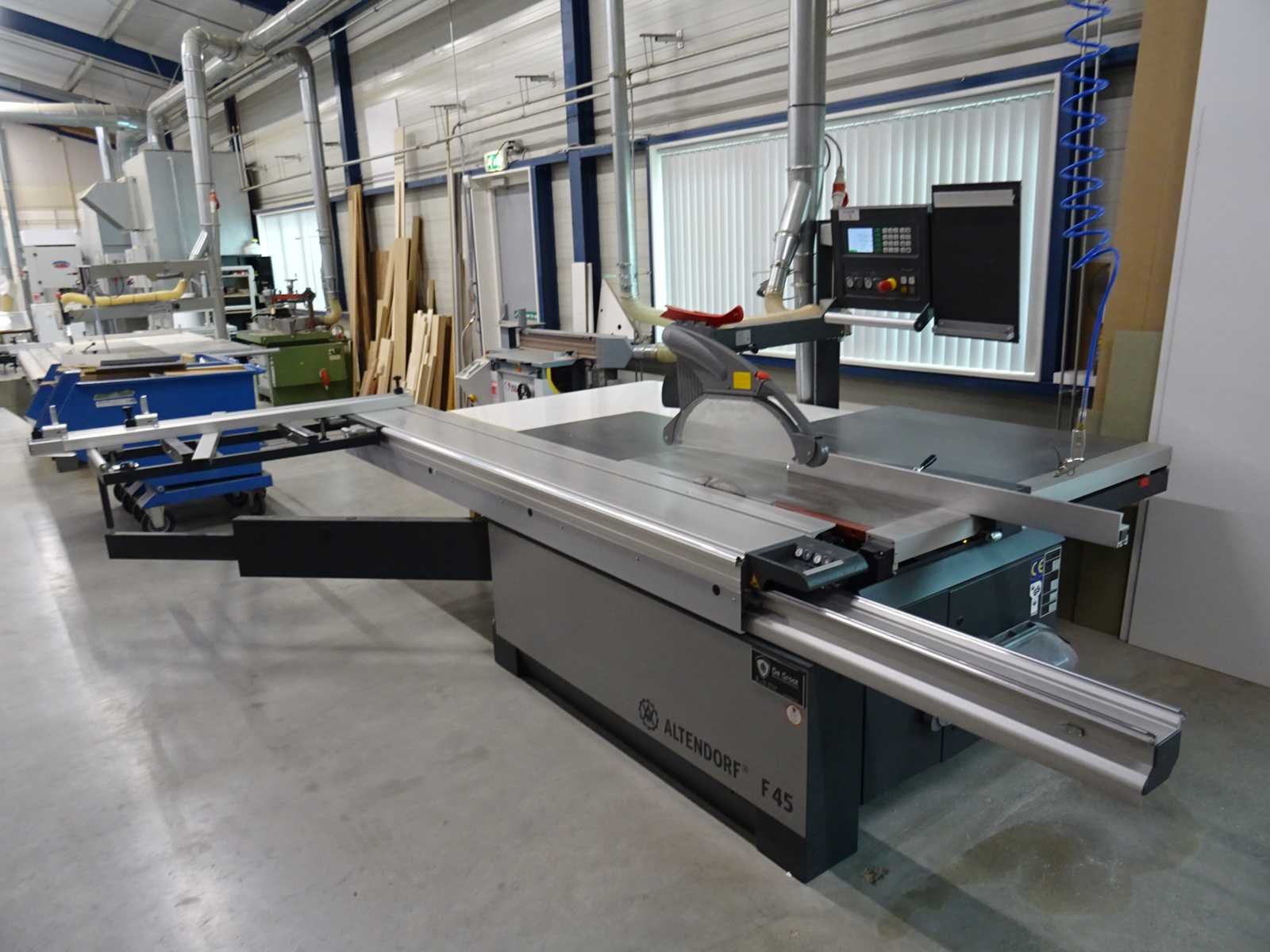 Voorzien van CNC gestuurde parallelaanslag 1300mm, 5,5kW motor, 3200mm rolwagen, 2 assen gestuurde voorritser met LED waarschuwing, documenthouder. Merk: Altendorf Type: F45 ProDrive Bouwjaar: 2019 Serienummer: 19-02-12-055 Zaagblad Ø: 450mm Aantal snelheden: 3 Snelheid tot n =: 5000rpm Voorritser: true Motorvermogen (kW): 5,5kW Aansluiting: 400V Afmeting l: 3800mm Afmeting b: 3400mm Afmeting h: 1880mm