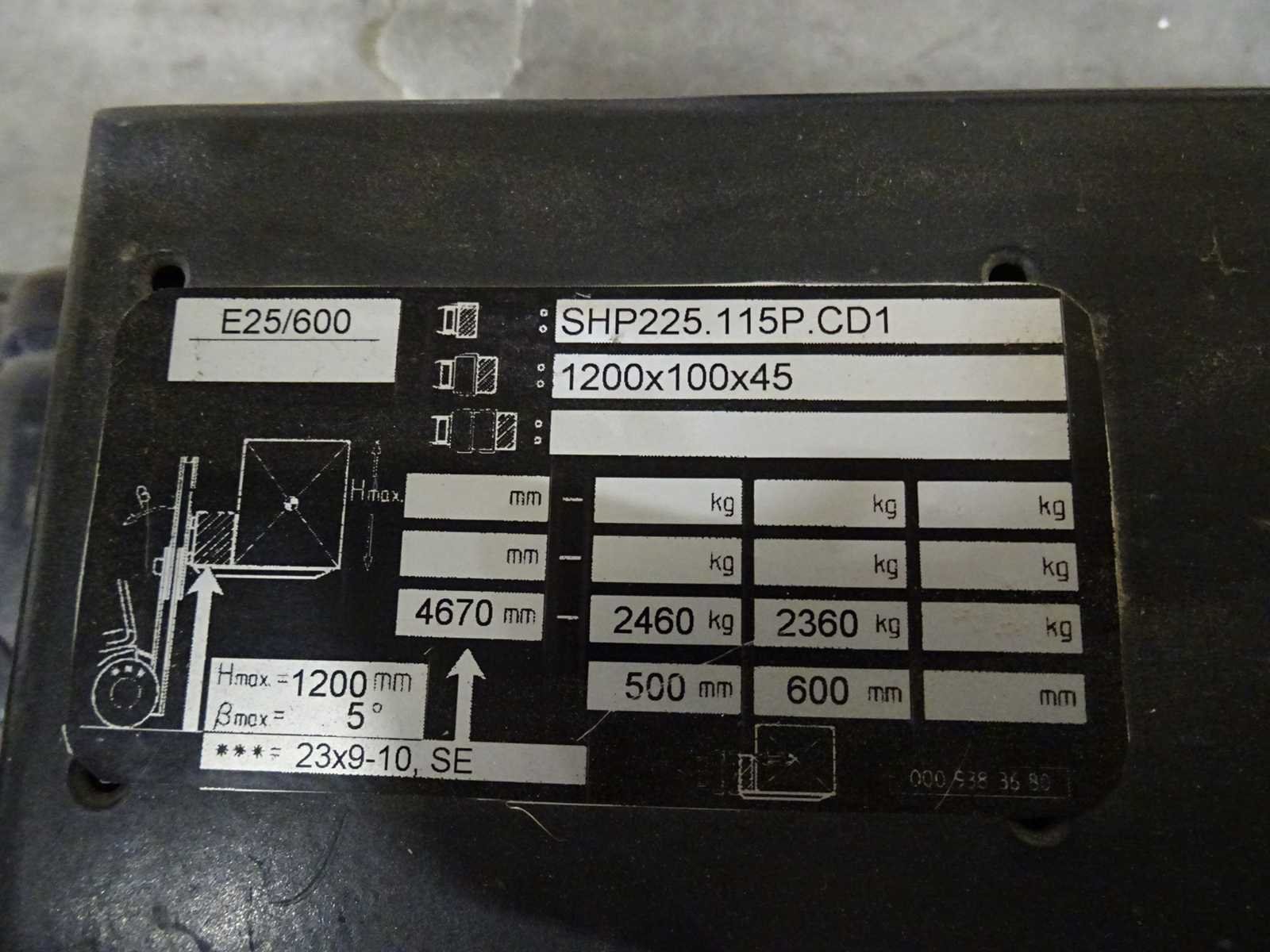 Let op, afwijkende ophaaldag: 6 februari om 12:00. U kunt het geautomatiseerde ophaalverzoek negeren. Tot dan in gebruik, urenstand kan oplopen. Gekeurd tot 01-2026 Merk: Linde Type: E25/600-02 Bouwjaar: 2001 Serienummer: G1X336M01986 Afgelezen urenstand: 10480 Accu lader: true Free-lift: true Side-shift: true Duplex mast: false Triple mast: true Hefvermogen: 2500kg Lepellengte: 1200mm Hefhoogte: 4670mm Minimale doorrijhoogte: 2220mm