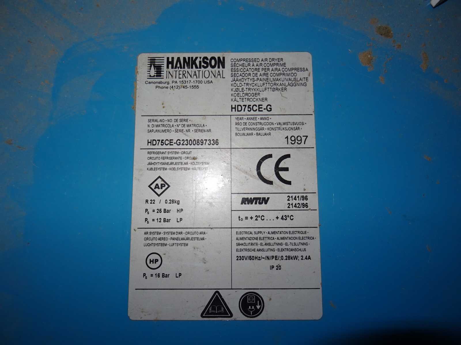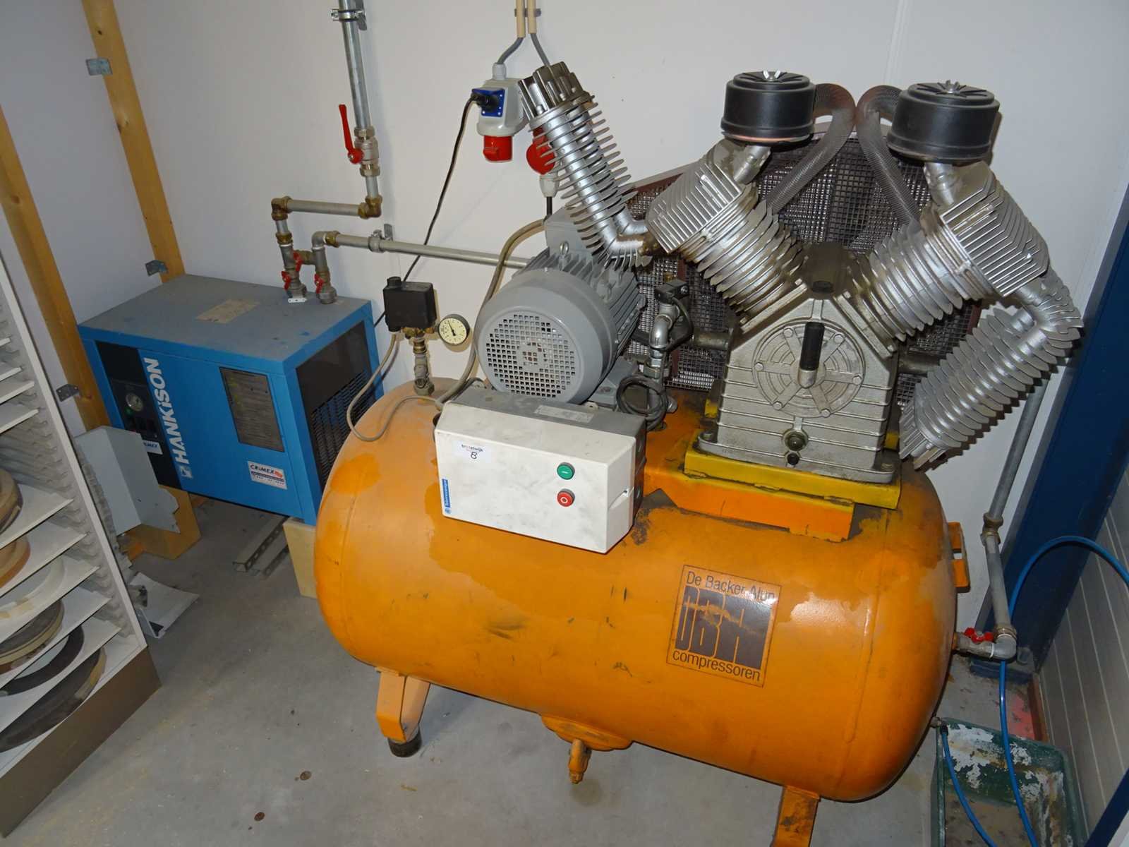 Inclusief koeldroger Hankison HD75CE-G uit 1997 Merk: Alup Type: SBS Bouwjaar: 1990 Serienummer: ZU25772 Capaciteit.: 11bar Vermogen: 7,5kW Buffertank inhoud: 500l Luchtdroger: true Aansluiting: 400V Totale afmeting L: 720mm Totale afmeting Breedte: 1400mm Totale afmeting Hoogte: 1500mm