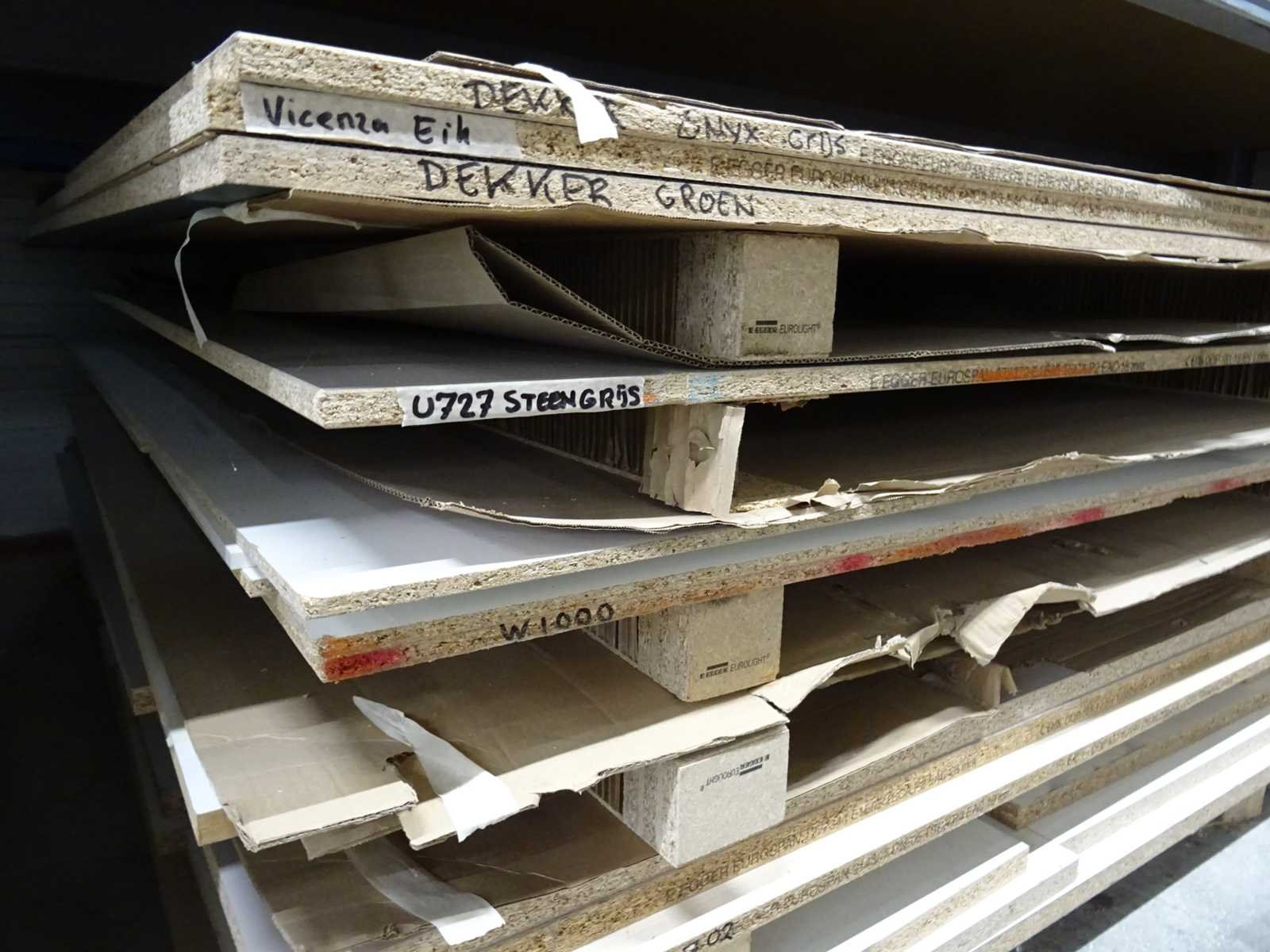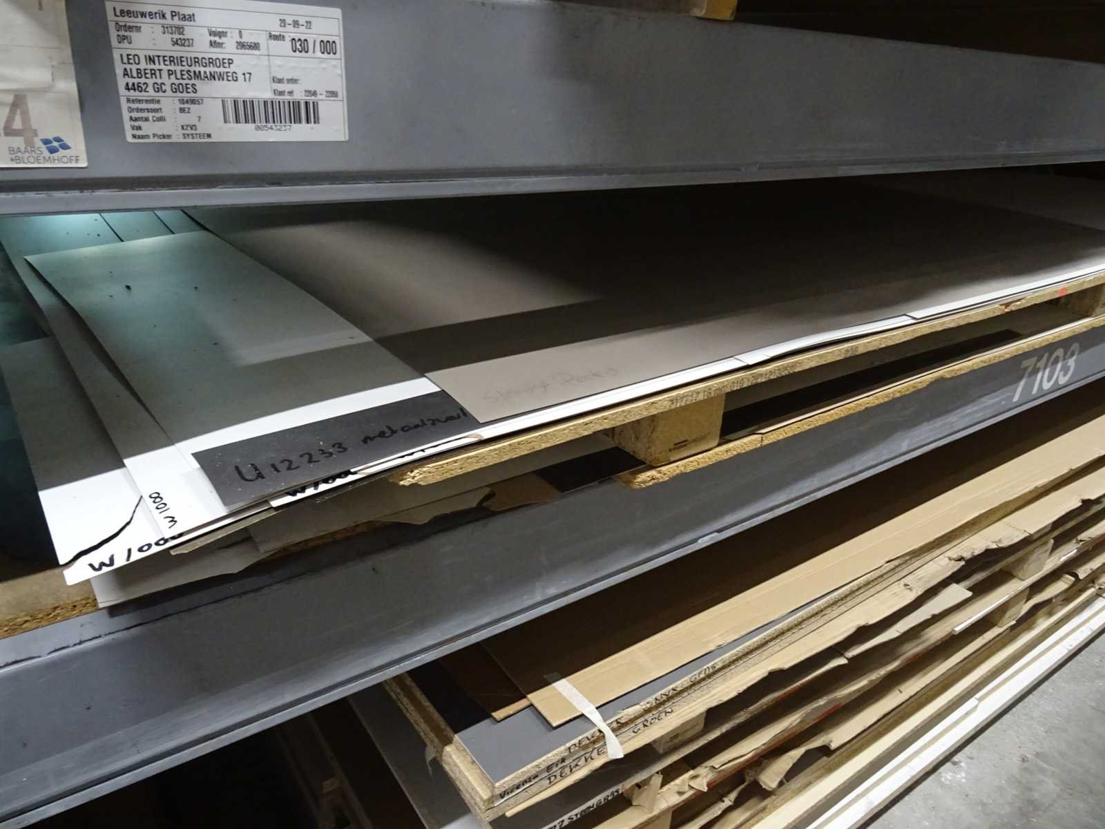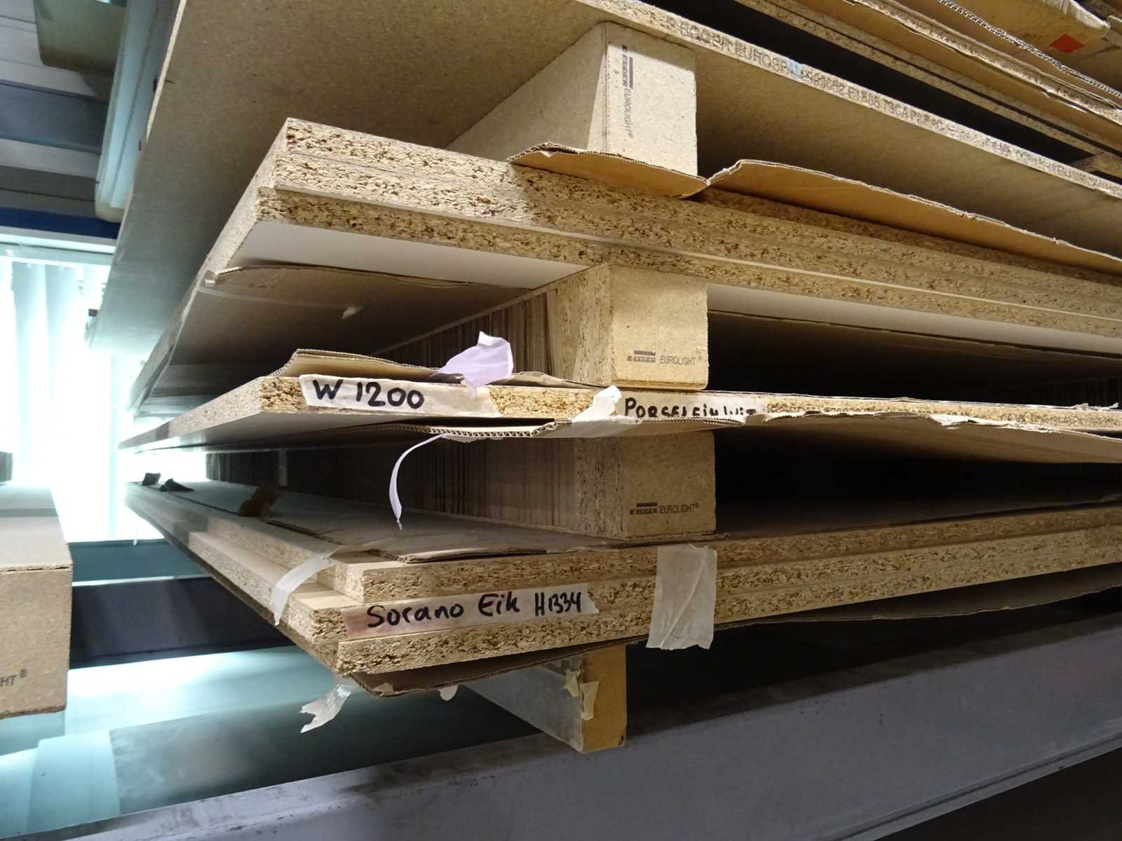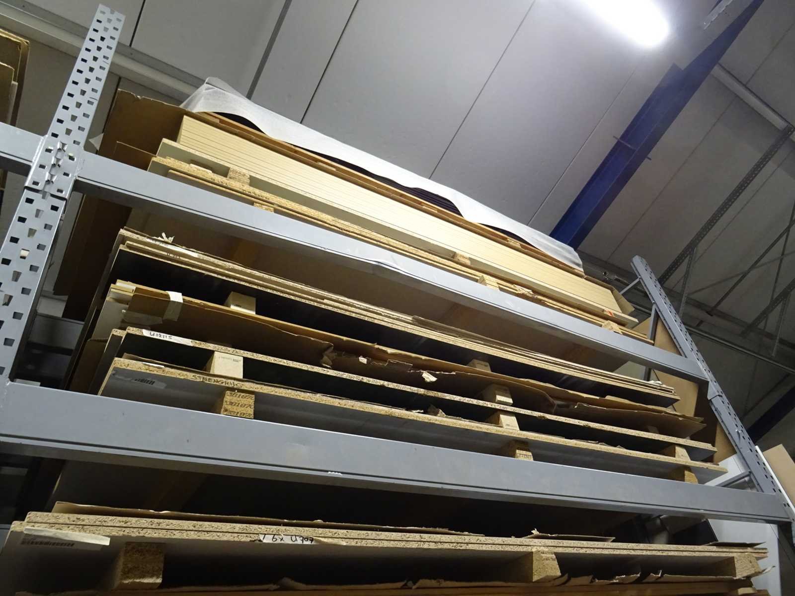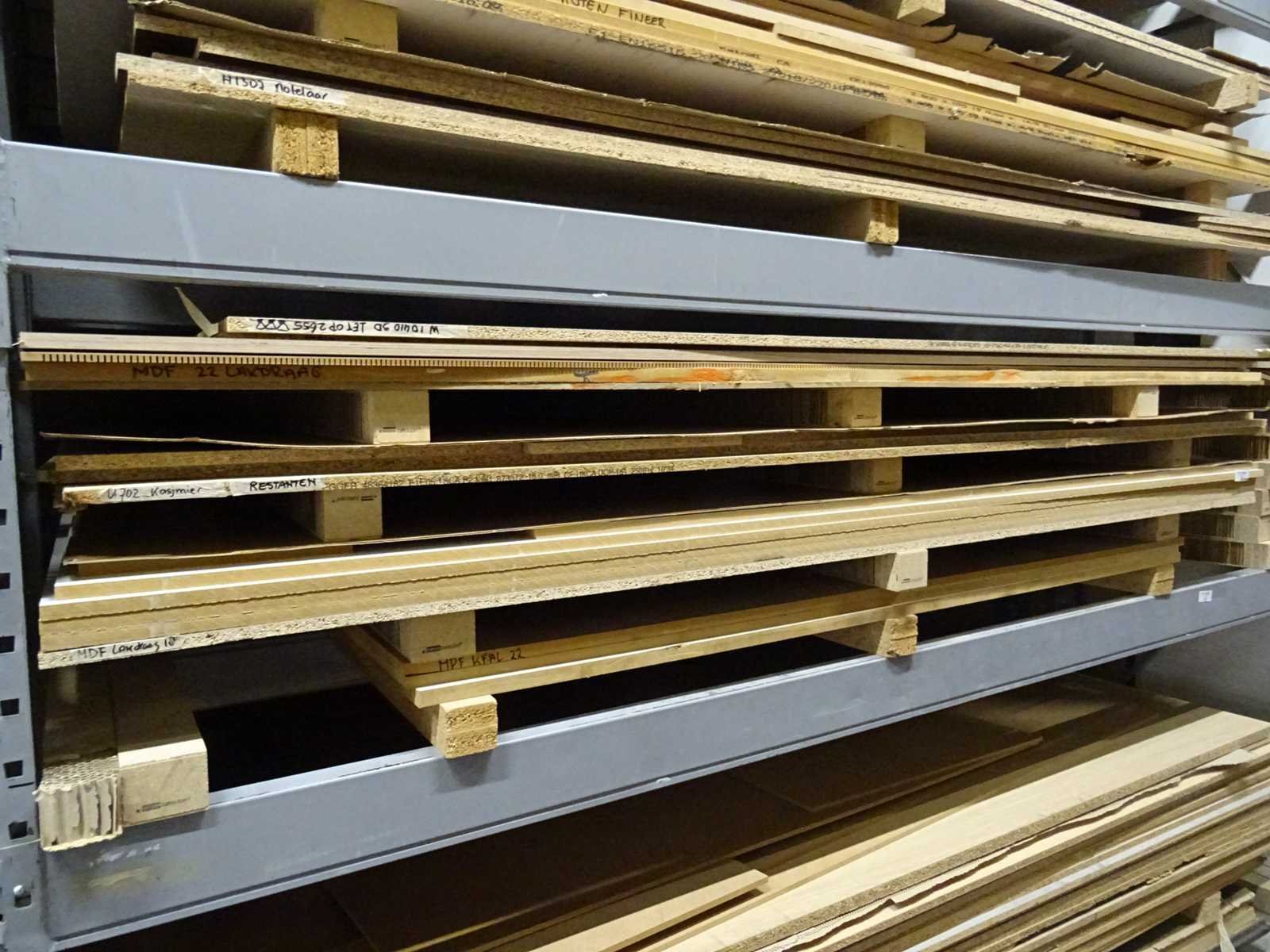 Betreft de inhoud van platenstelling en draagarmstelling, bestaande uit diverse soorten en maten o.a. spaanplaat, MDF, multiplex, buigtriplex, decorplaten, HPL, wandbekleding en meer. Met palletlengtes tot circa 400 cm. Let op, ophalen begin ophaaldag, u dient de stelling geheel leeg achter te laten.