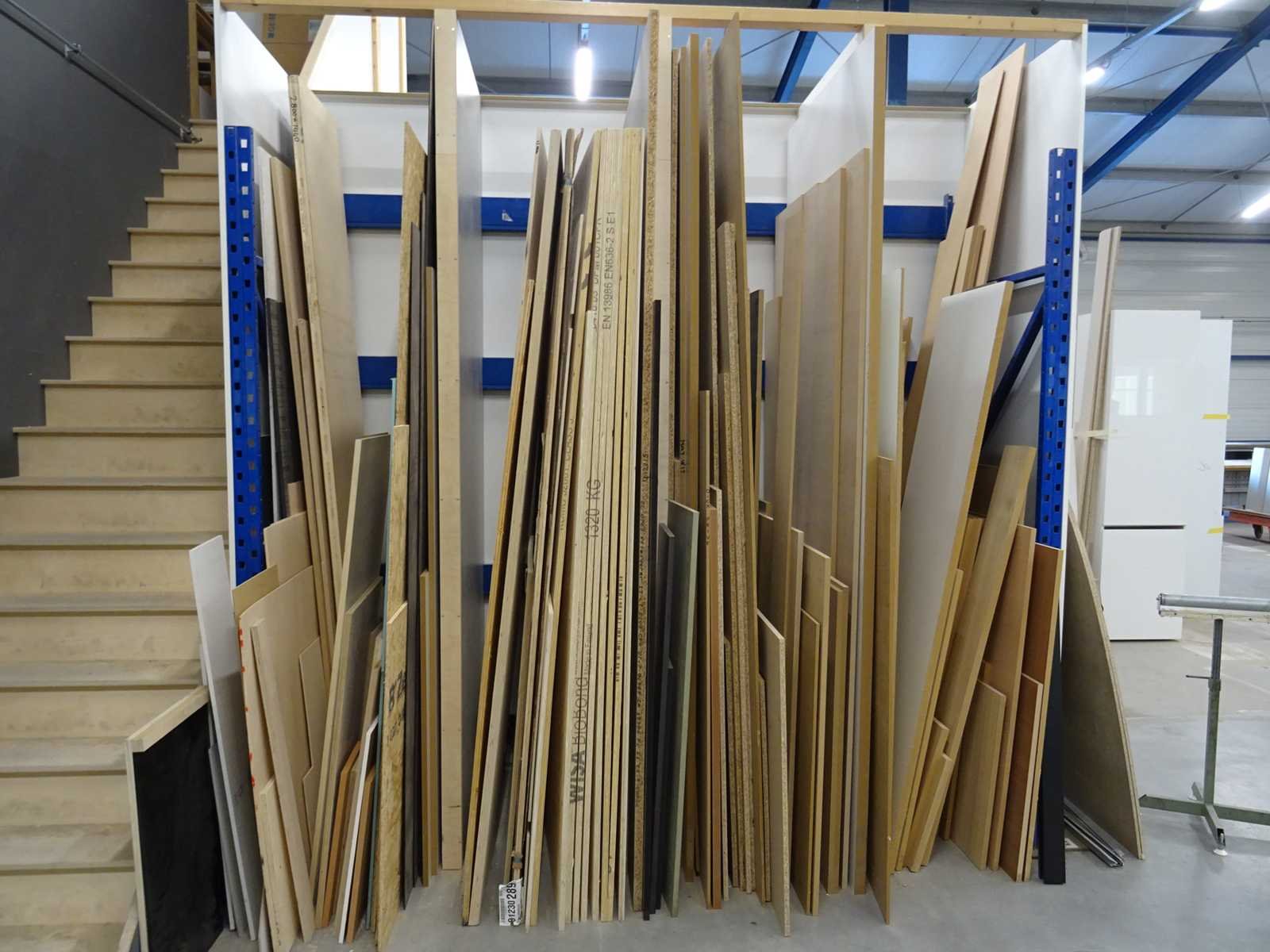 Partij plaatmateriaal in stelling, waaronder enkele volle platen, inclusief diverse houtrestanten. Let op u dient alles mee te nemen, ophalen begin ophaaldag.