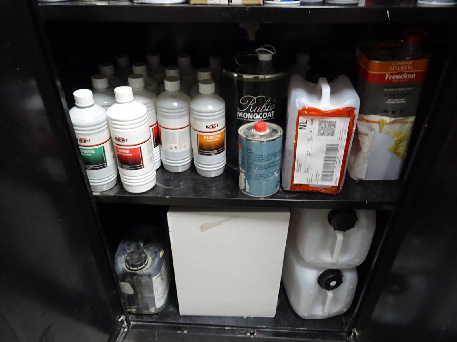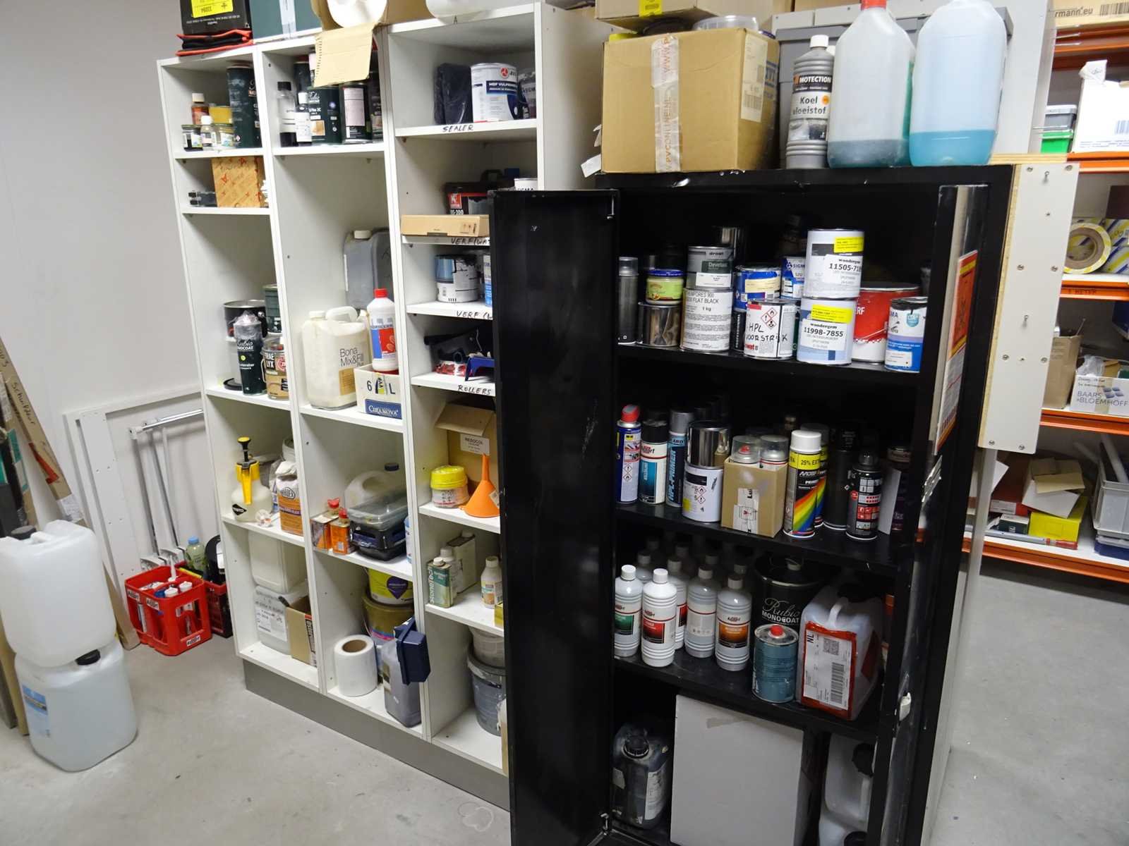 Betreft voornamelijk verf en behandelingsmaterialen en andere bouwchemie. Inclusief stalen kast. U dient alles mee te nemen.
