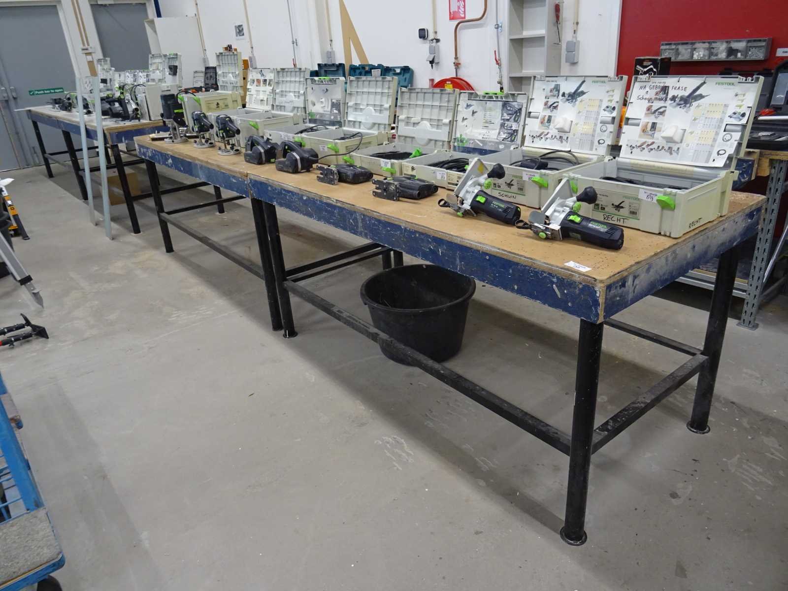 Stalen frame, houten blad, afmeting: 95x205x95cm (hxbxd)