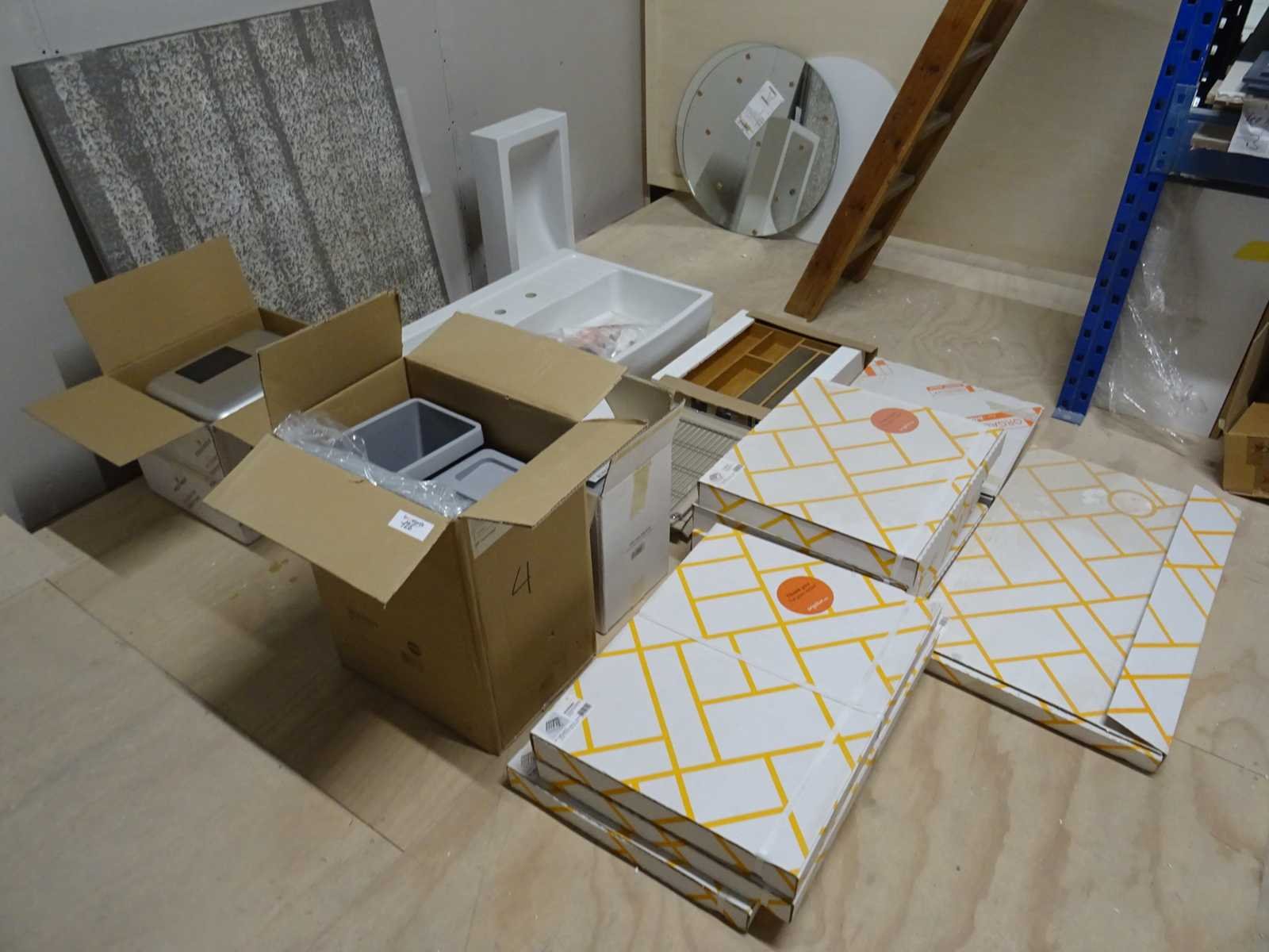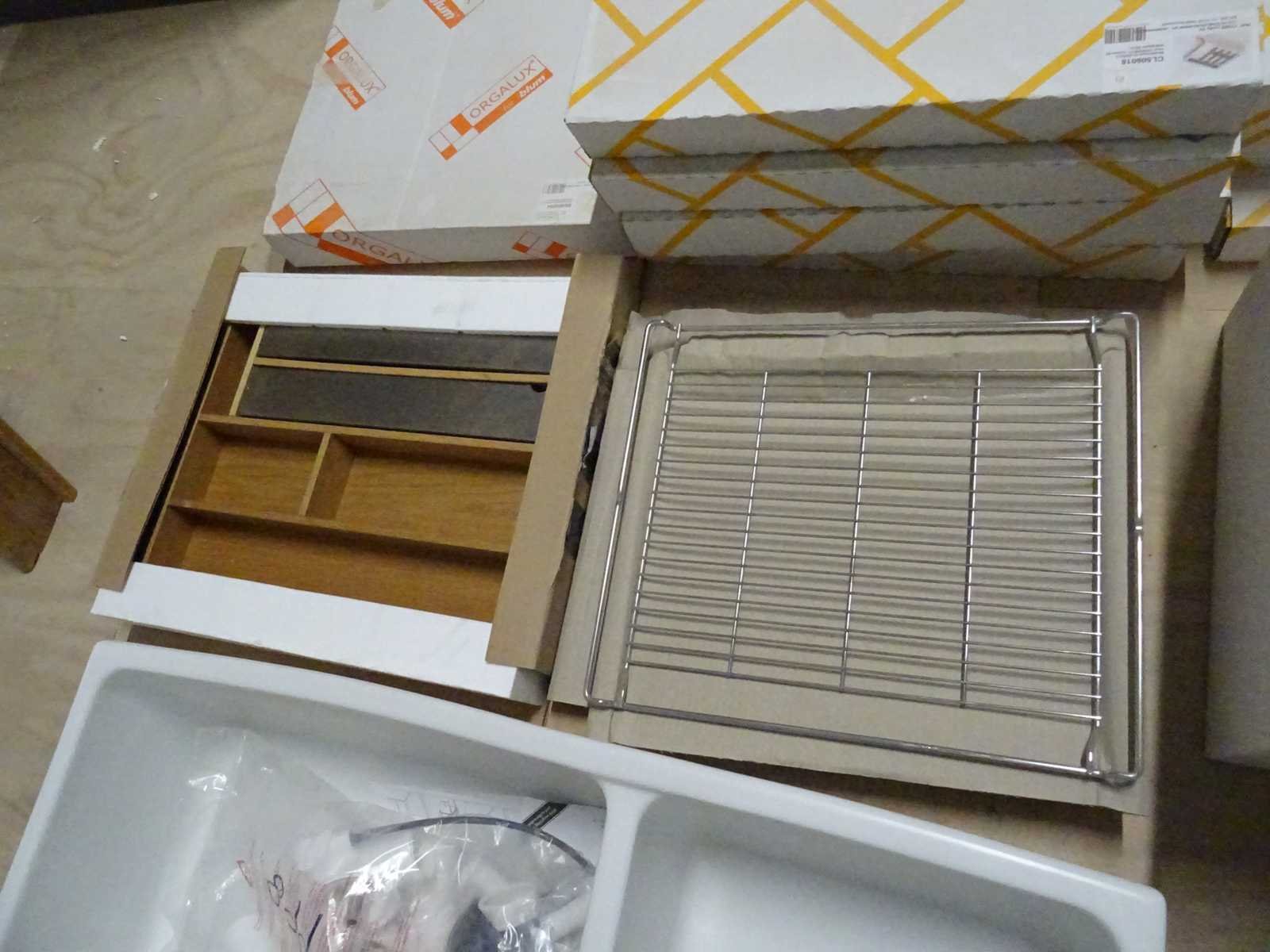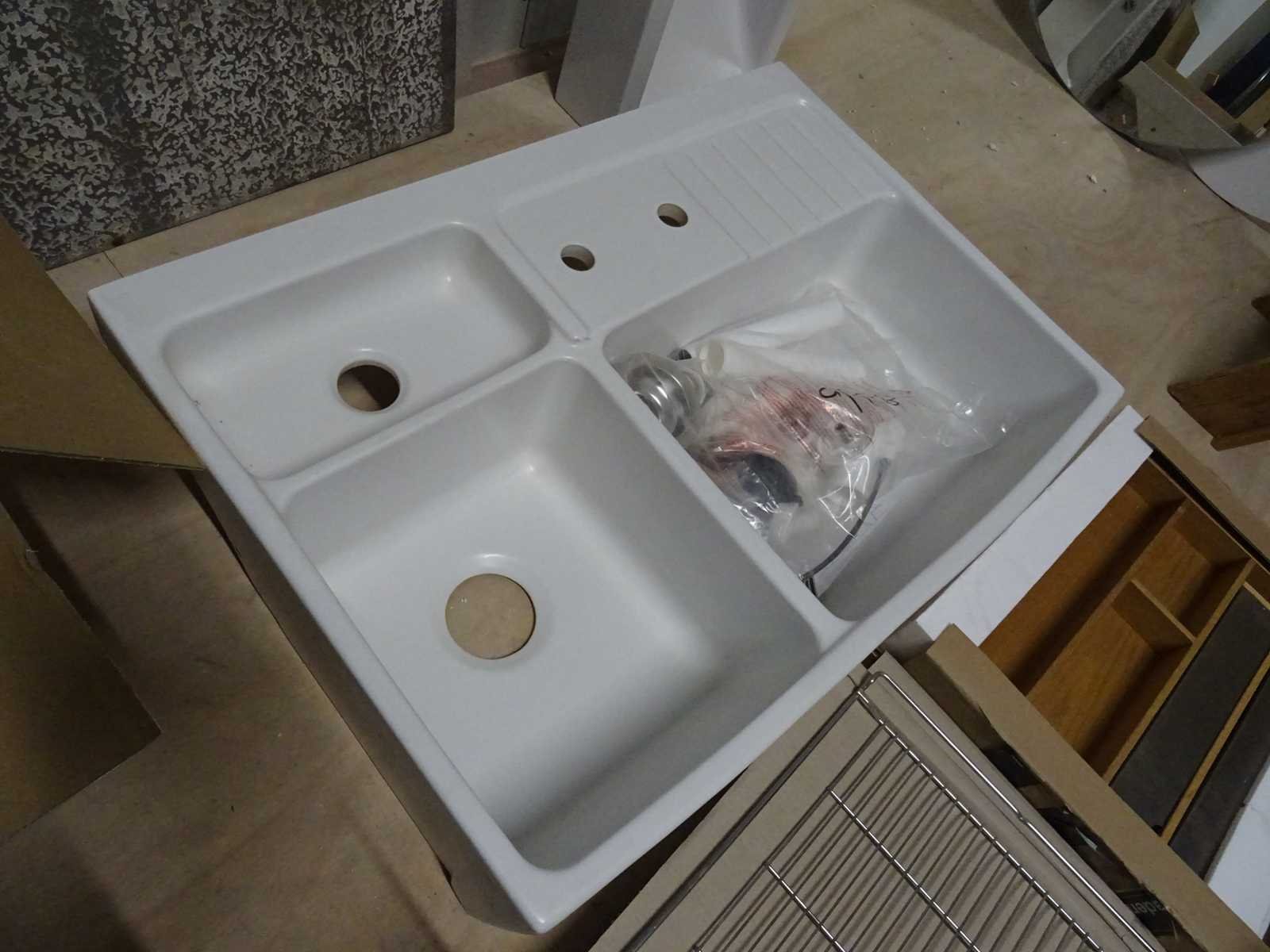 Bestaande uit bestekladen, keramische spoelbak, afvalbak, spoelbak etc