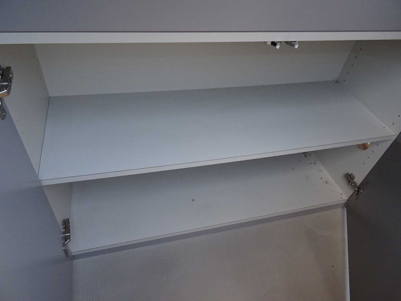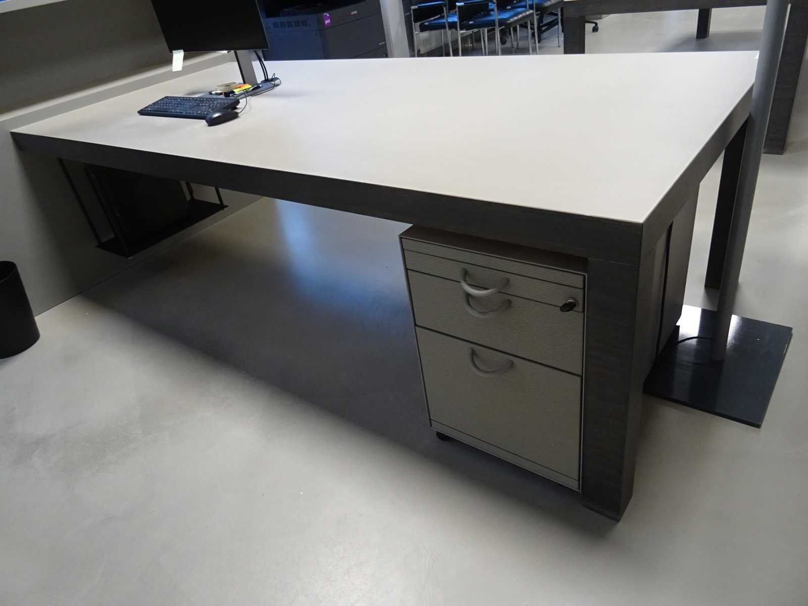 Bestaande uit bureau met opbergkast 4 deurs en ladeblok, afmeting totaal: 115x280x225cm (hxbxd), bladmaat bureau: 240x110cm (bxd), blad zit geschroefd aan de opbergkast