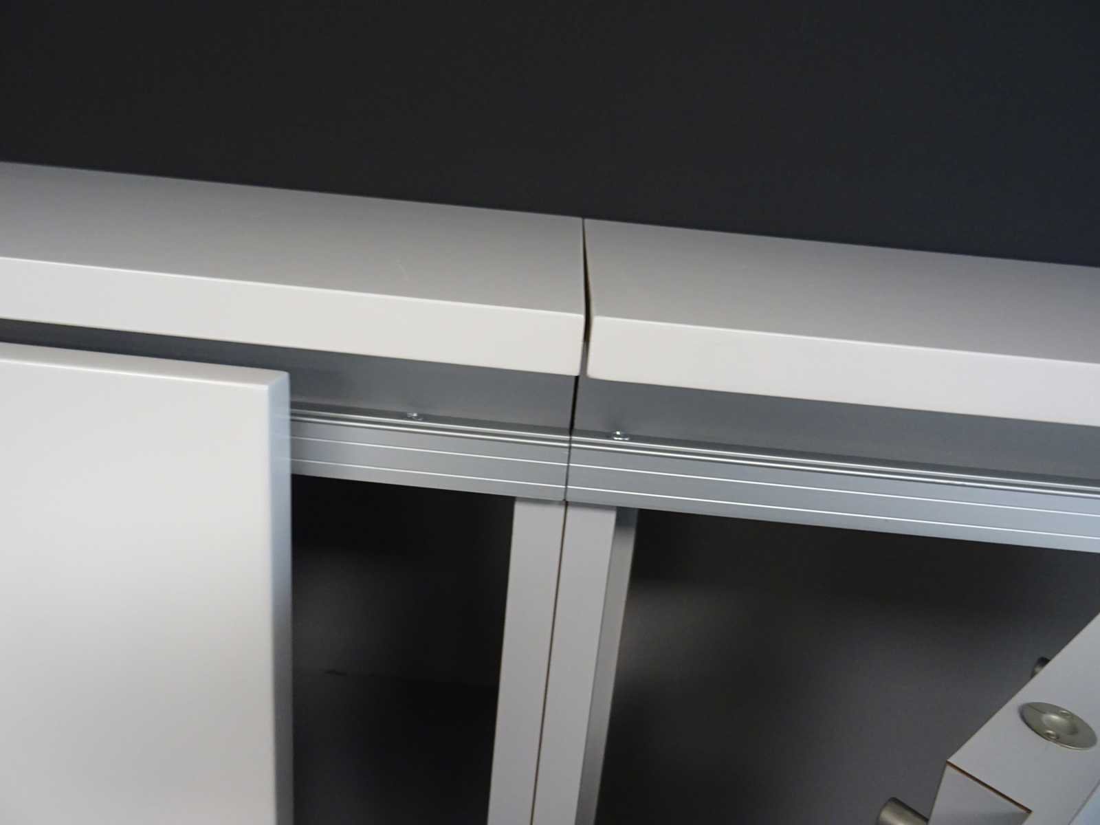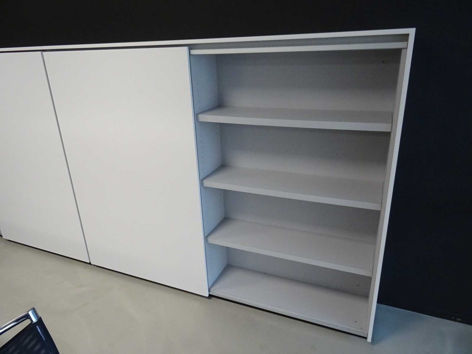 Met 2 schuifdeuren en 4 draaipresentatiepanelen, kast in 2 delen te demonteren, afmeting: 161x405x38cm (hxbxd)