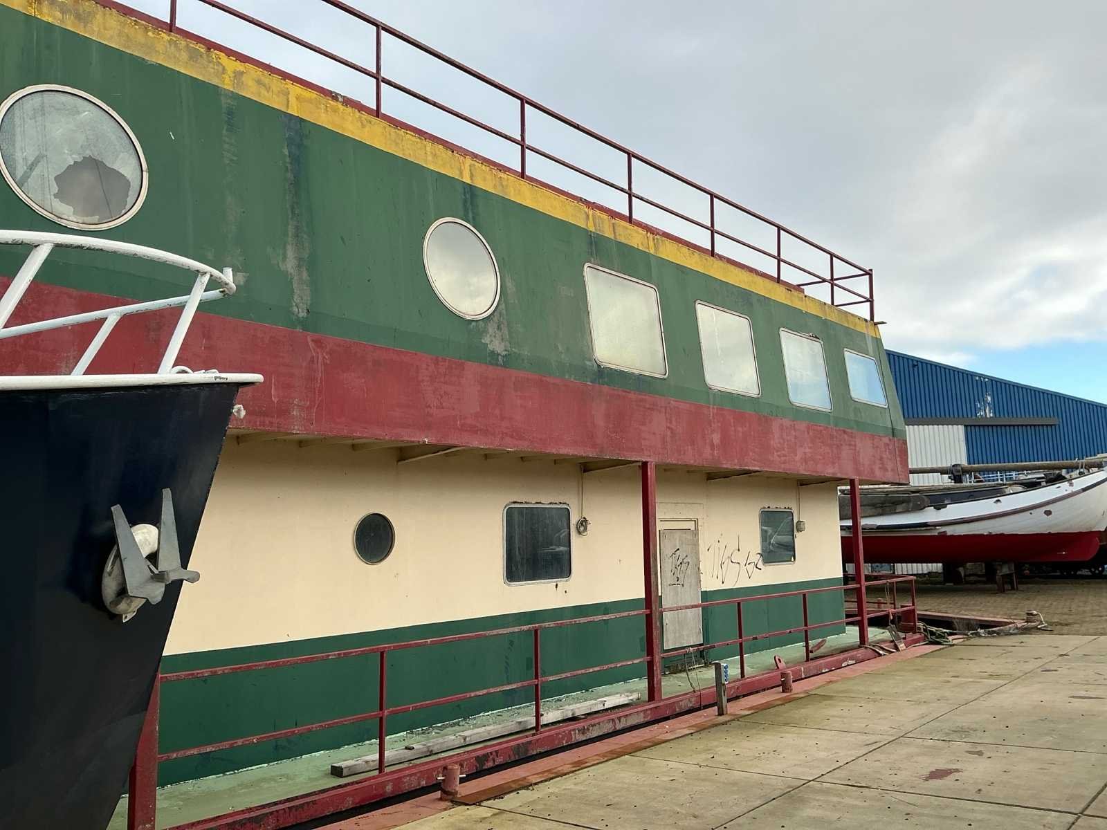 • Het voormalig restaurantschip North Palace, voorzien van brandmerk 11190 B A 1992. • De afmetingen zijn ca. 30,00 meter lang en 12,00 meter breed. Met in totaal 4 verdiepingen is de totale oppervlakte circa 1.200 m². • Dit type schip betreft een ponton, gebouwd door Northland Dutch Yacht Builders tussen 1991 en 1993. In oktober 2023 is een vlakdiktemeting uitgevoerd; de resultaten van dit rapport zijn te vinden in de dataroom. • In het verleden was het iconische Chinese restaurant ‘North Palace’ in het schip gevestigd. Sinds 2013 is het schip niet meer in gebruik geweest. • Met het oog op een nieuwe functie zijn in juli 2020 tekeningen opgesteld om het restaurant te transformeren naar een hotel of een alternatieve gebruiksfunctie. Deze concepttekeningen zijn opgenomen in de dataroom. Er heeft geen verdere toetsing plaatsgevonden op de haalbaarheid hiervan. • Daarnaast is er door een architect een 3D-tekening van het schip opgesteld. Zowel de tekening als de bijbehorende factuur zijn overlegbaar aan de nieuwe eigenaar. • De bovenste verdieping is open, ten behoeve van de mogelijke creatie van een groot dakterras. Hierdoor past het ponton onder de meeste bruggen door. De exacte hoogte bedraagt circa 9 meter. • Notariële begeleiding: Aangezien dit schip kadastraal geregistreerd is, is notariële overschrijving verplicht bij gunning en levering. De keuze van de notaris is vrij, tenzij anders overeengekomen. Alle kosten die verband houden met de notariële afhandeling en levering, waaronder maar niet beperkt tot notariskosten, kadasterkosten, recherches en eventuele aanvullende akten, zijn volledig voor rekening van de koper. Merk: Northland Dutch Yacht Builders Type: Domus Di Aqua Serienummer: 11190 B A 1992 Woonplaats: 1781 AE Den Helder Adres: Het Nieuwe Diep 52 Bestaande bouw: true Totaal oppervlakte: 1200m² Restaurant oppervlakte: 900m² Aantal verdiepingen: 4 Bar: true