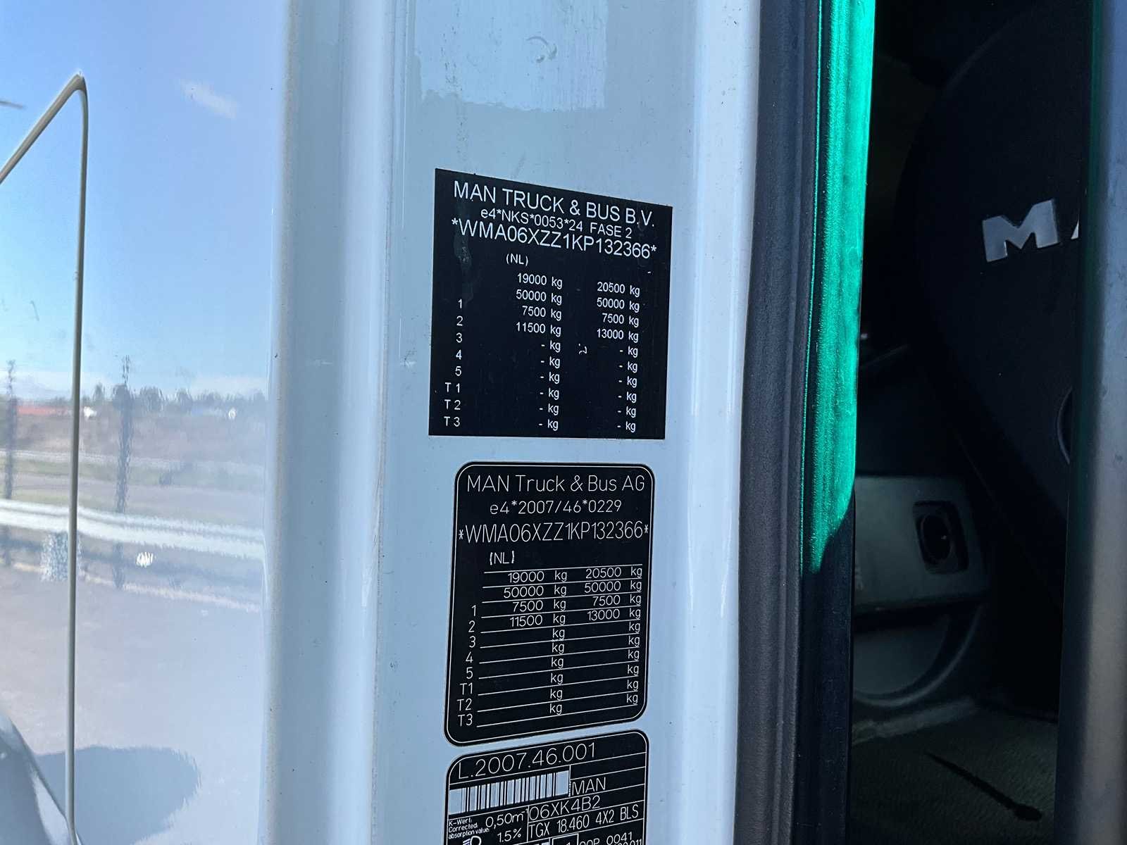 Elektrische ramen en spiegels, spiegel verwarming, stuurwiel bediening, airco, sper, digitale tachograaf, koelkast, slaapcabine, dubbele brandstoftank, start onderbreker Merk: MAN Type: TGX 18.460 Bouwjaar: 2019 Chassisnummer VIN: WMA06XZZ1KP132366 Cilinderinhoud: 12419cc Kilometerstand bij opname: 785764km Datum eerste toelating: 18-06-2019 Type transmissie: Automatisch Aantal assen: 2 Asconfiguratie: 4x2 Fuel Type: Diesel Aantal sleutels: 3 Emissieklasse: EURO6 Slaapcabine: true Eigen gewicht: 7986kg Nationaliteit documenten: Litouwen Kentekenpapieren compleet?: true Aantal zitplaatsen: 2