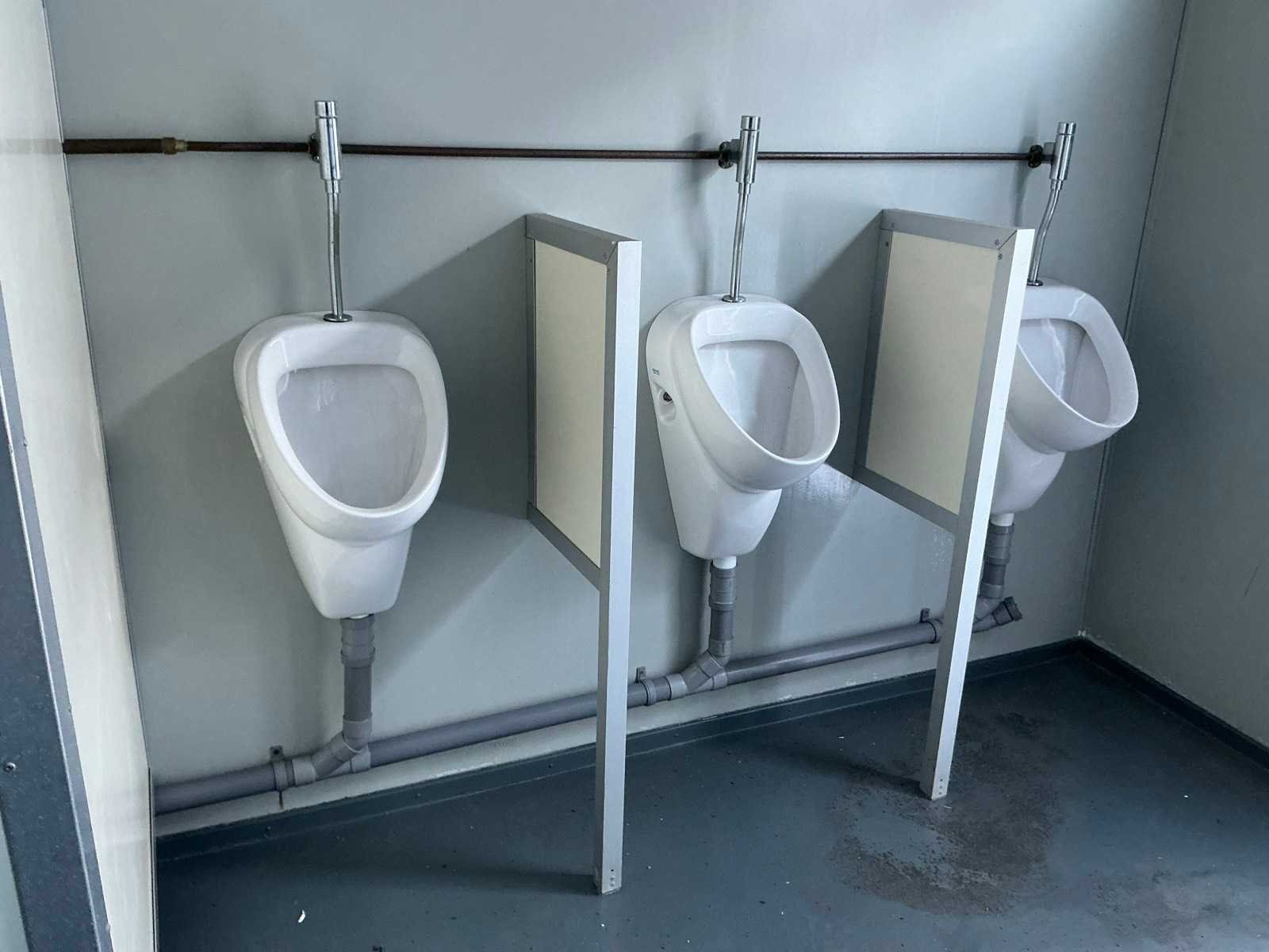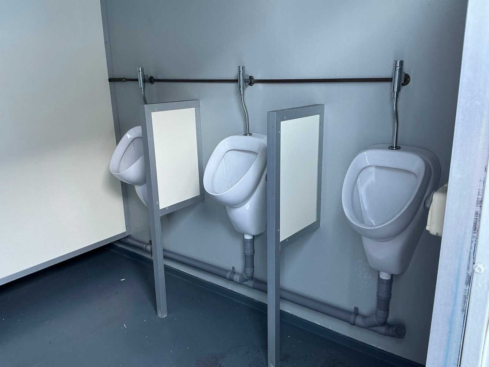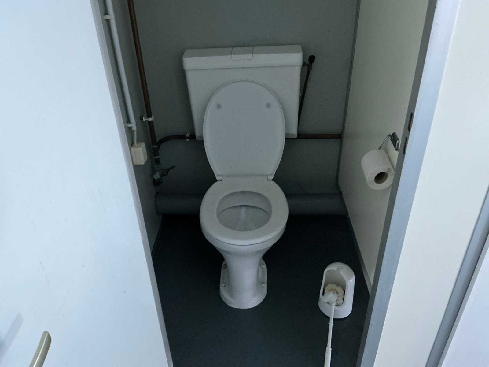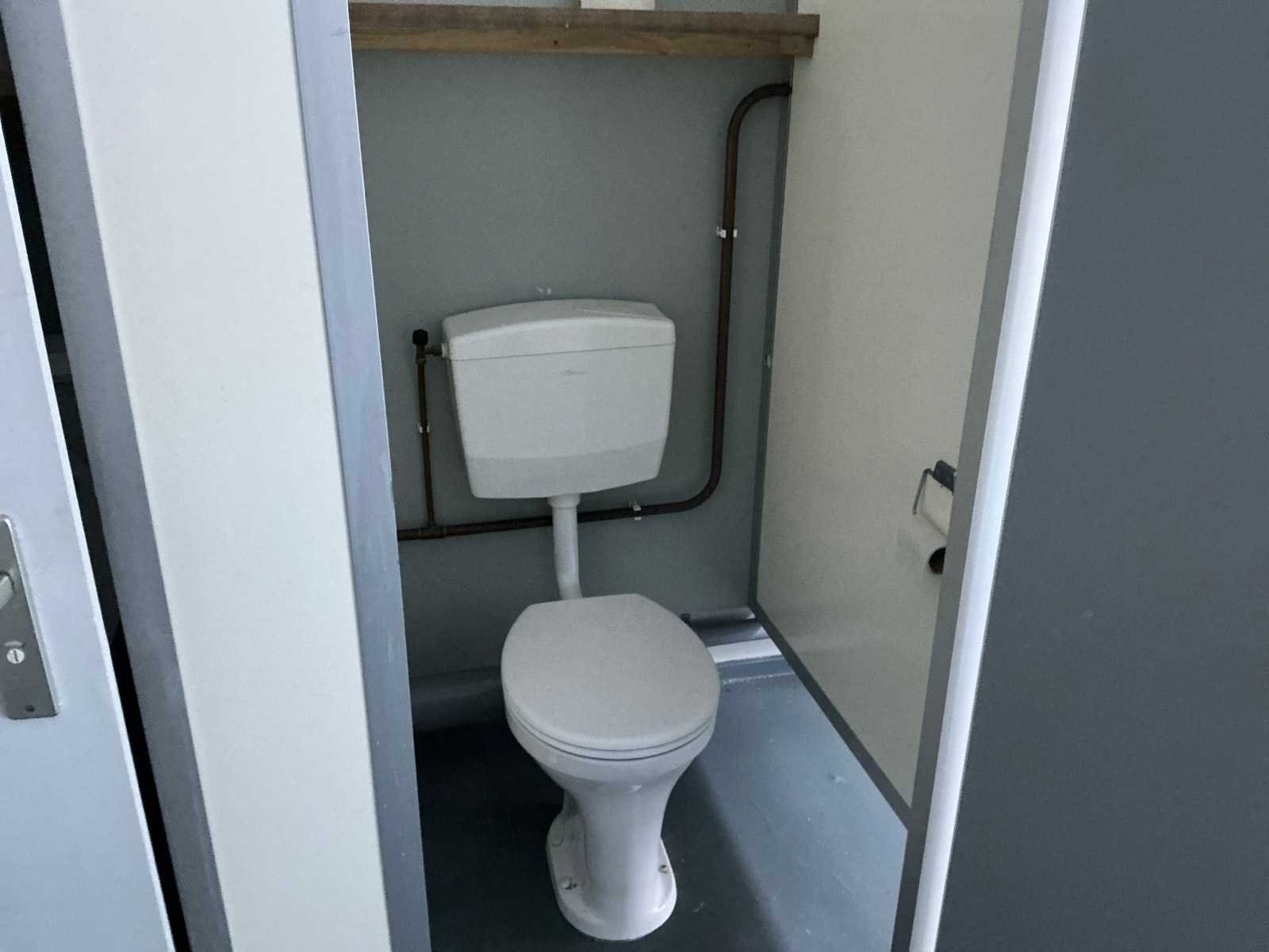 Voorzien van vloeistofdichte vloer. Merk: Reco Type: 20540 Afmeting l: 3400mm Afmeting b: 3000mm Afmeting h: 2800mm Aantal ramen: 2 Aantal toiletten: 5 Aantal wastafels: 2