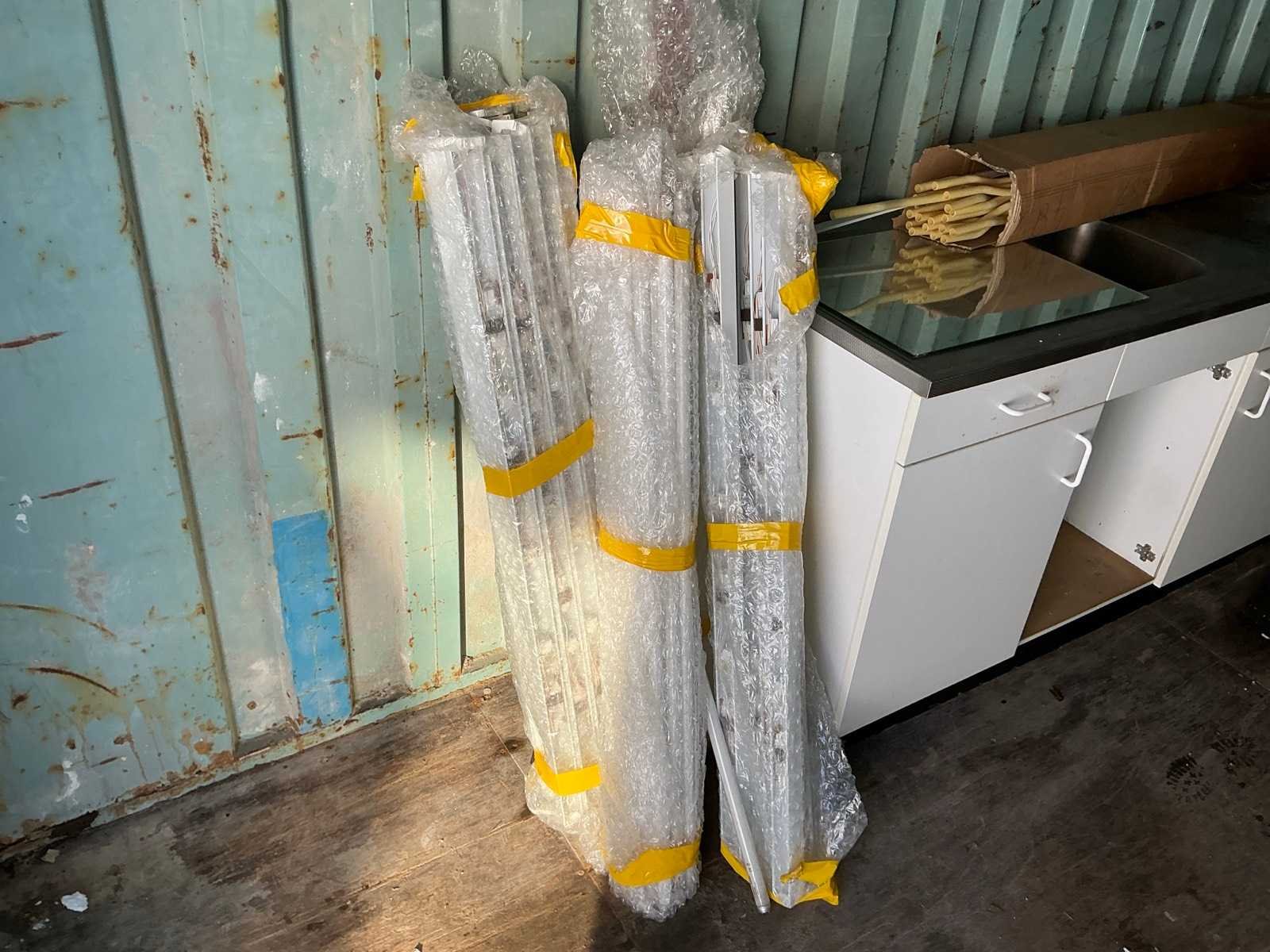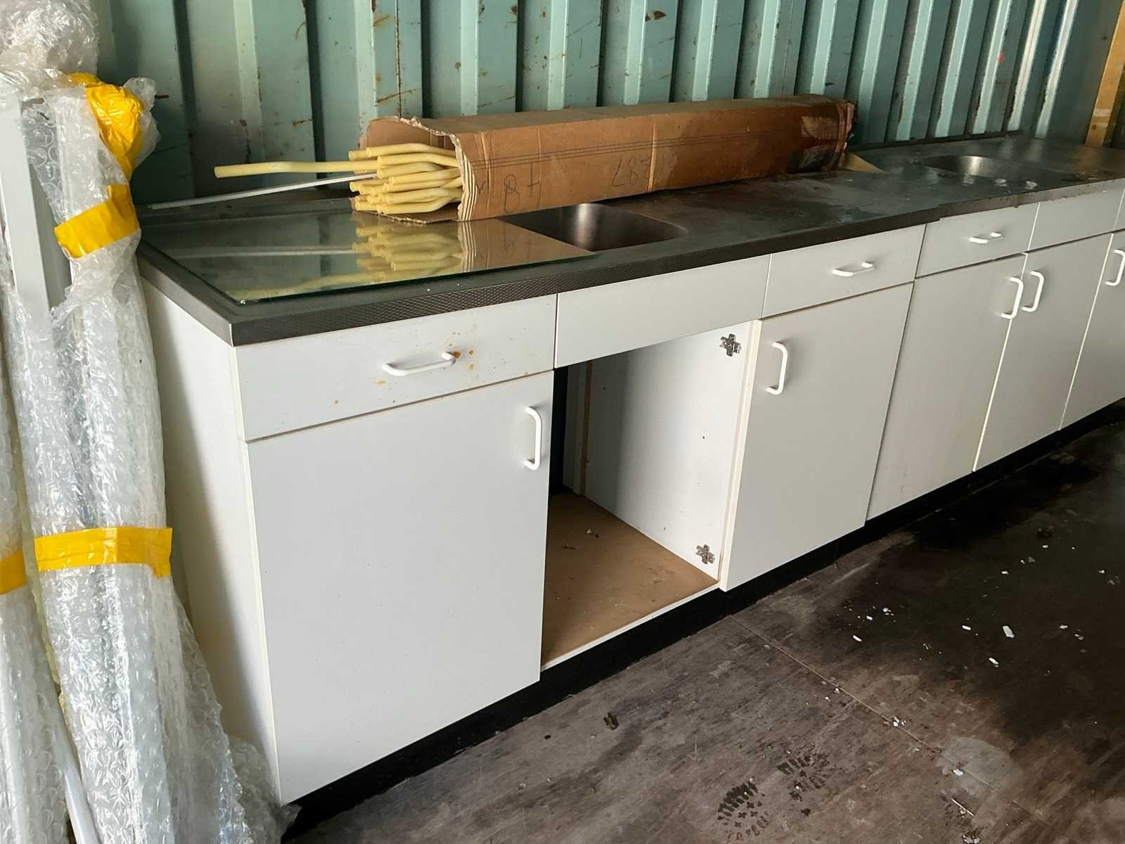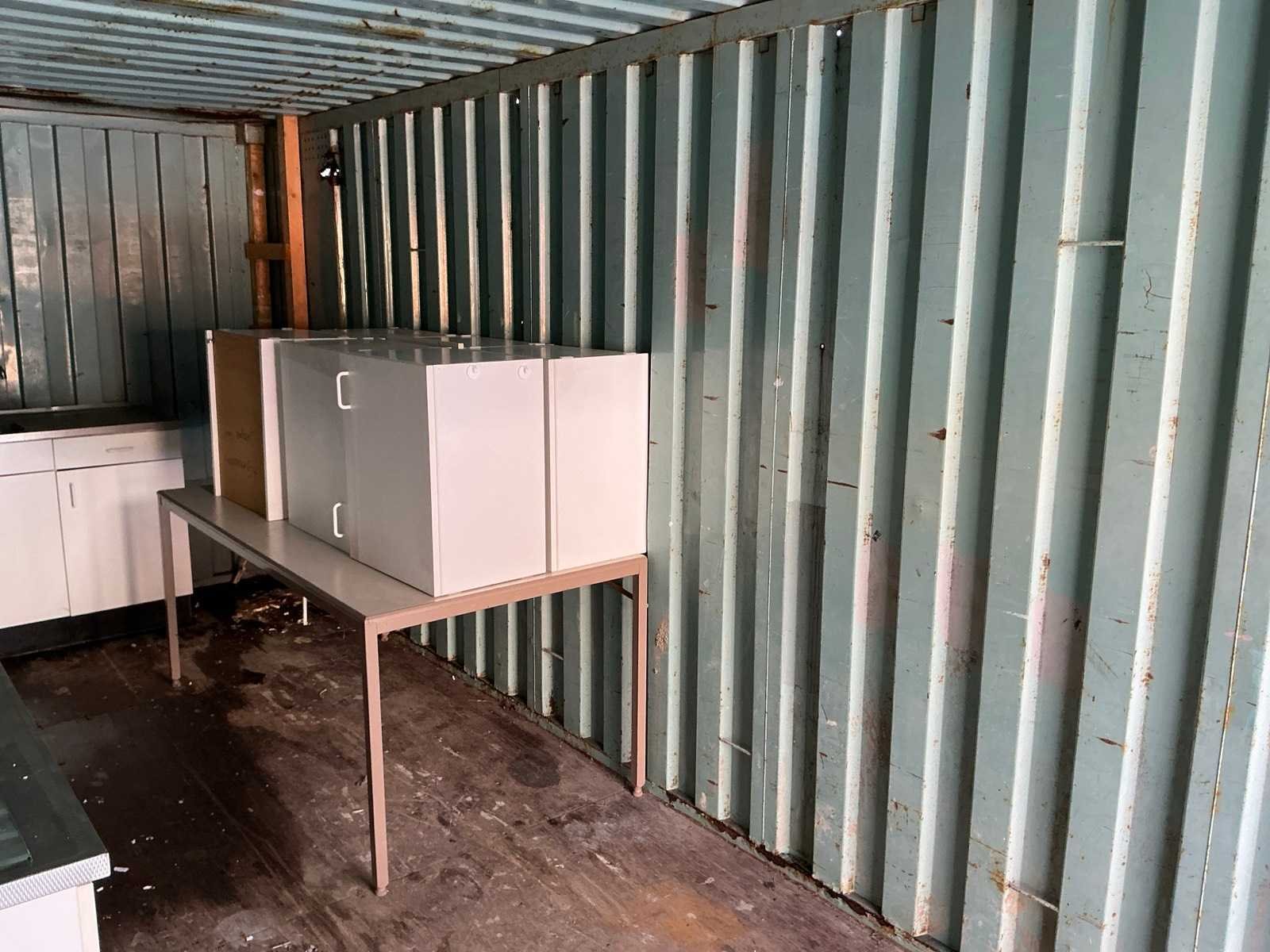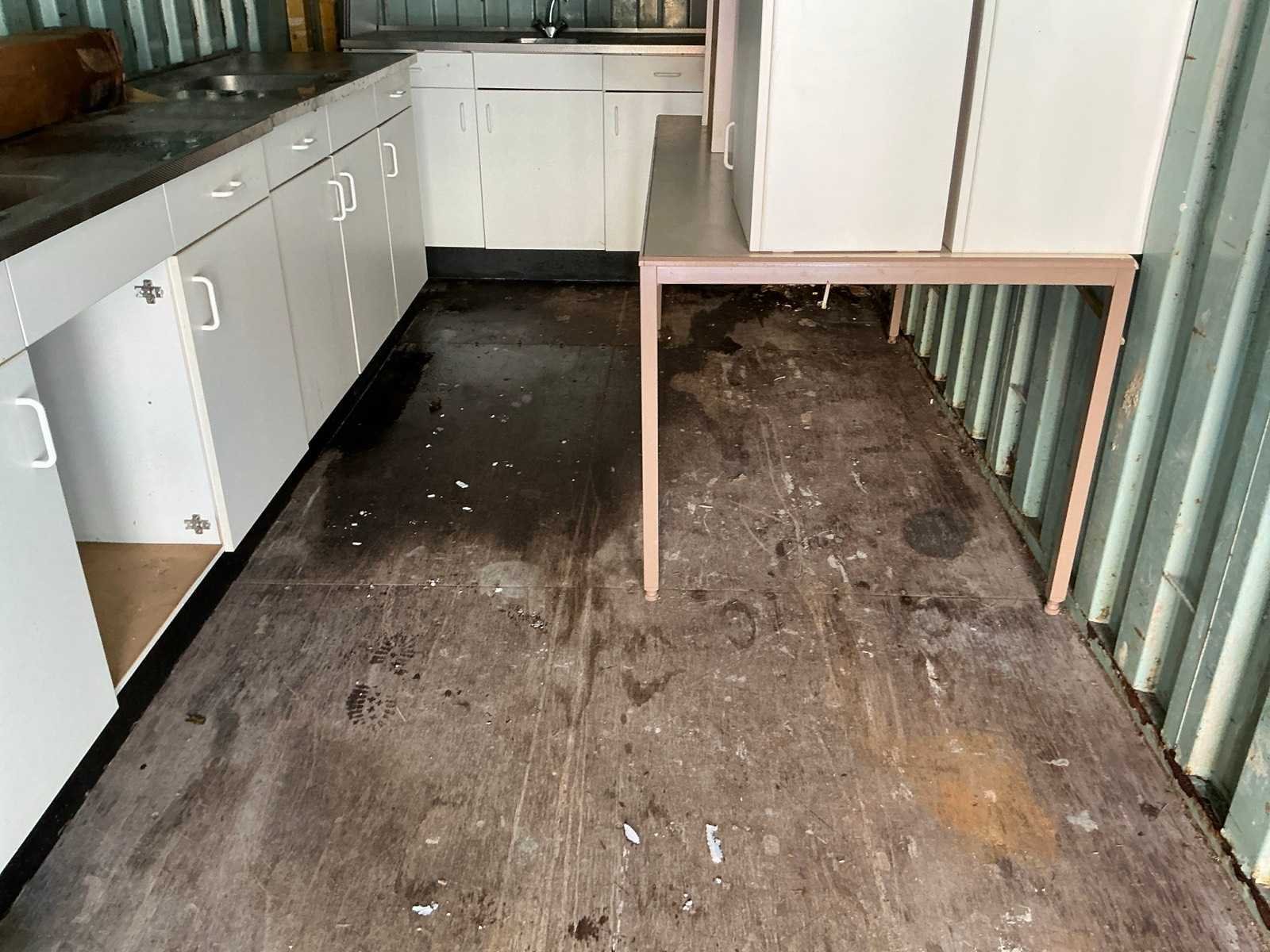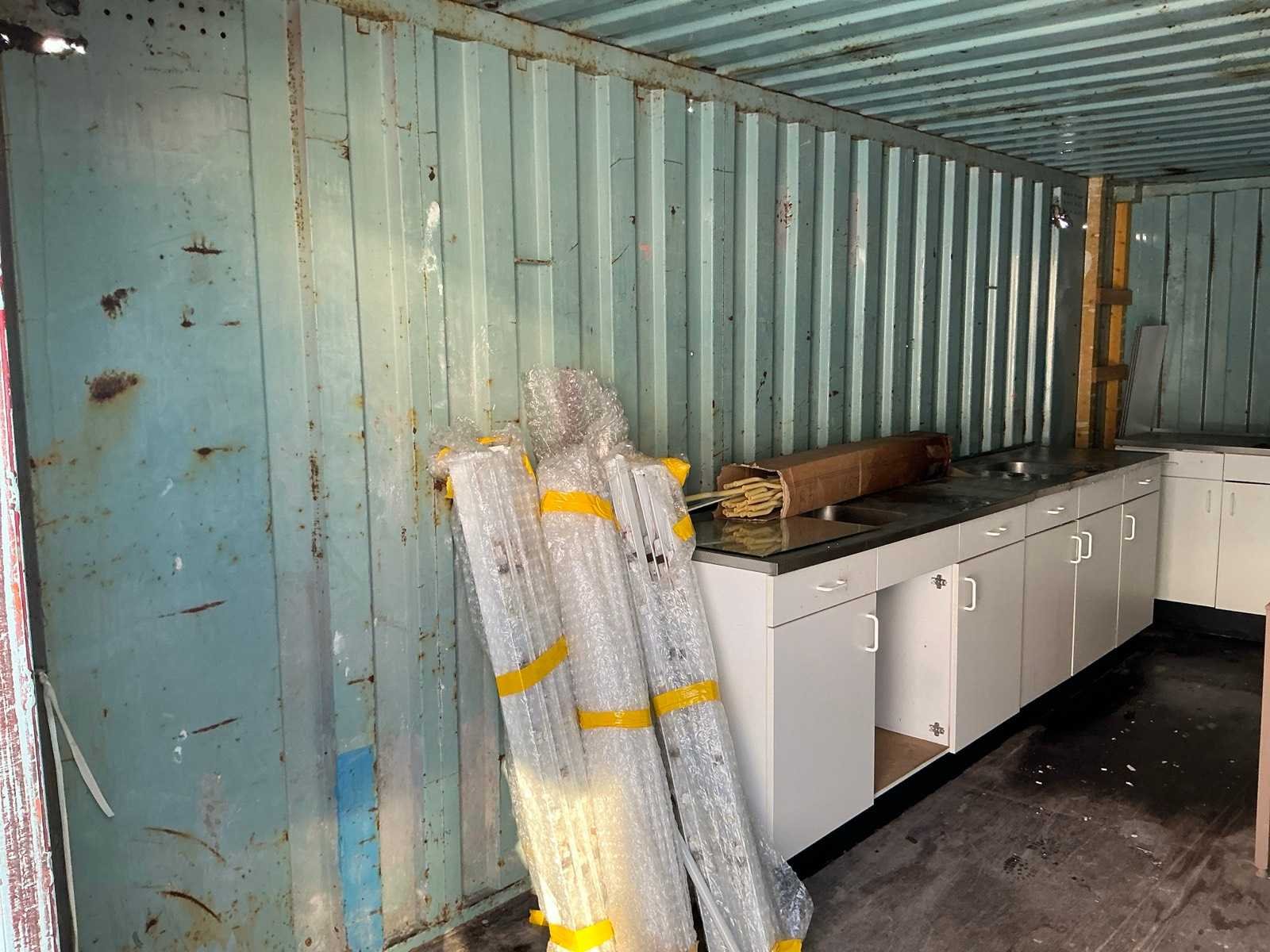Voorzien van 3 keukenblokken met wasbakken, 6 keukenkastjes, een tafel en tl verlichting behuizing. Inhoud: 20 Opslagcontainer: true Totale afmeting L: 6000mm Totale afmeting Breedte: 2450mm Totale afmeting Hoogte: 2600mm