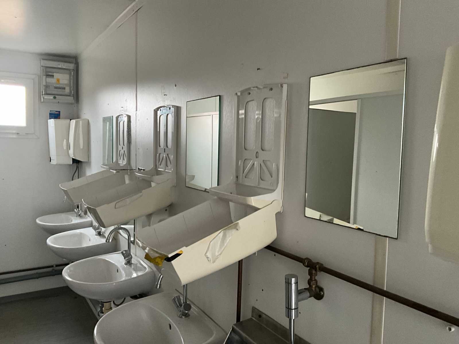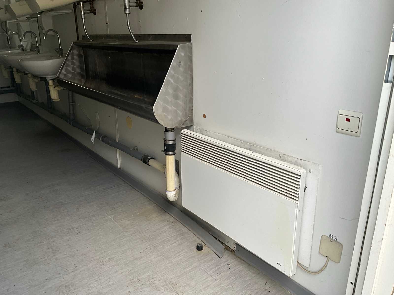 Voorzien van schakelkast; boiler; verlichting; verwarming; RVS urinoir; spiegels en papierrolhouders; Koper dient zelf voor transportmiddelen te zorgen om dit kavel te verladen. Merk: CONTAINEX Type: 20 ft. Afmeting l: 6050mm Afmeting b: 3000mm Afmeting h: 2800mm Aantal ramen: 1 Aantal toiletten: 6 Aantal wastafels: 4 Totale afmeting L: 6200mm Totale afmeting Breedte: 3000mm Totale afmeting Hoogte: 2800mm