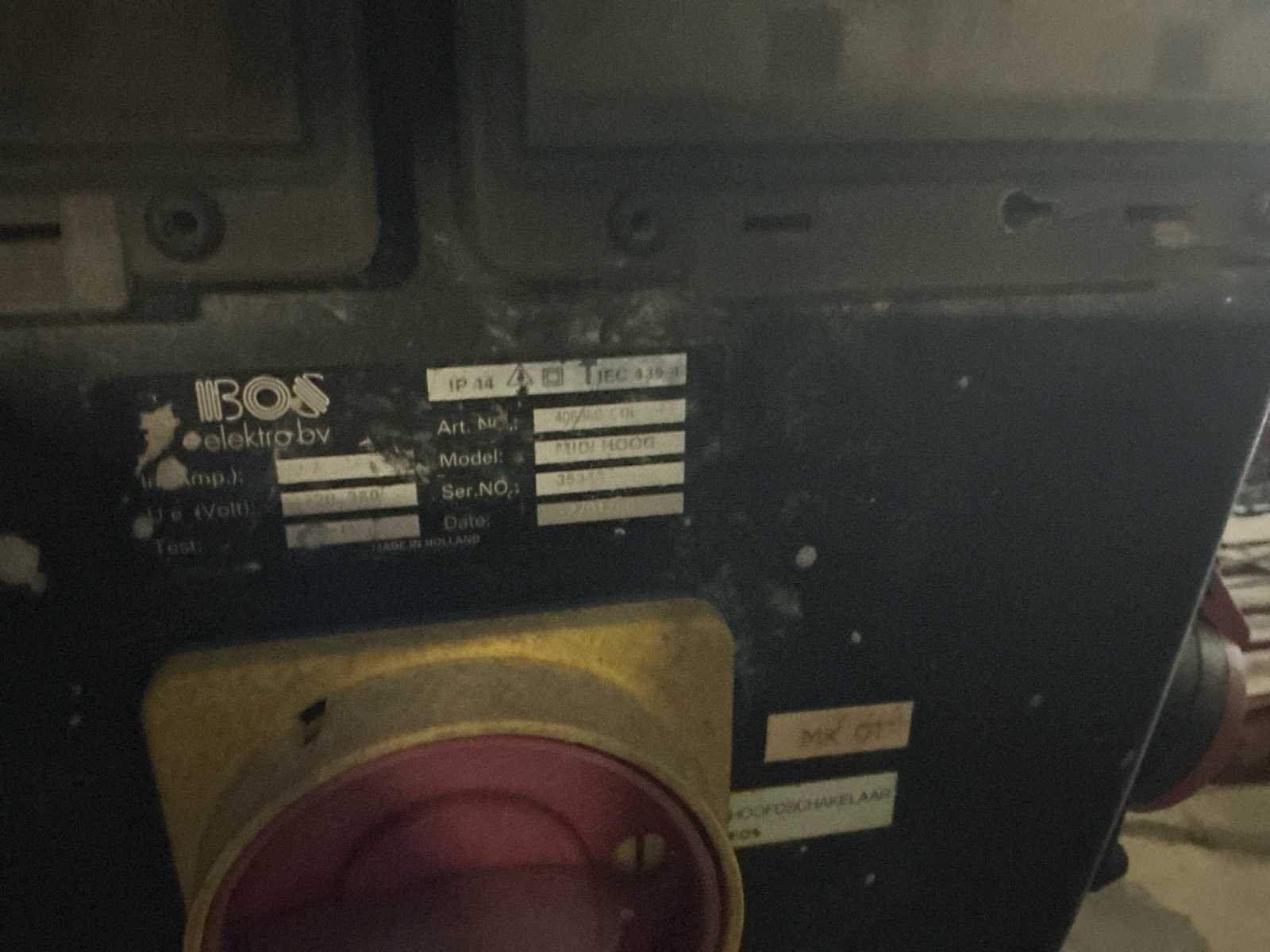 Merk: Bos Elektro Type: Midi hoog Aantal uitgangen 230v: 6 Aantal uitgangen 380 v / 32 a: 4 Aantal uitgangen 380 v / 63 a: 2 Totale afmeting L: 450mm Totale afmeting Breedte: 450mm Totale afmeting Hoogte: 950mm