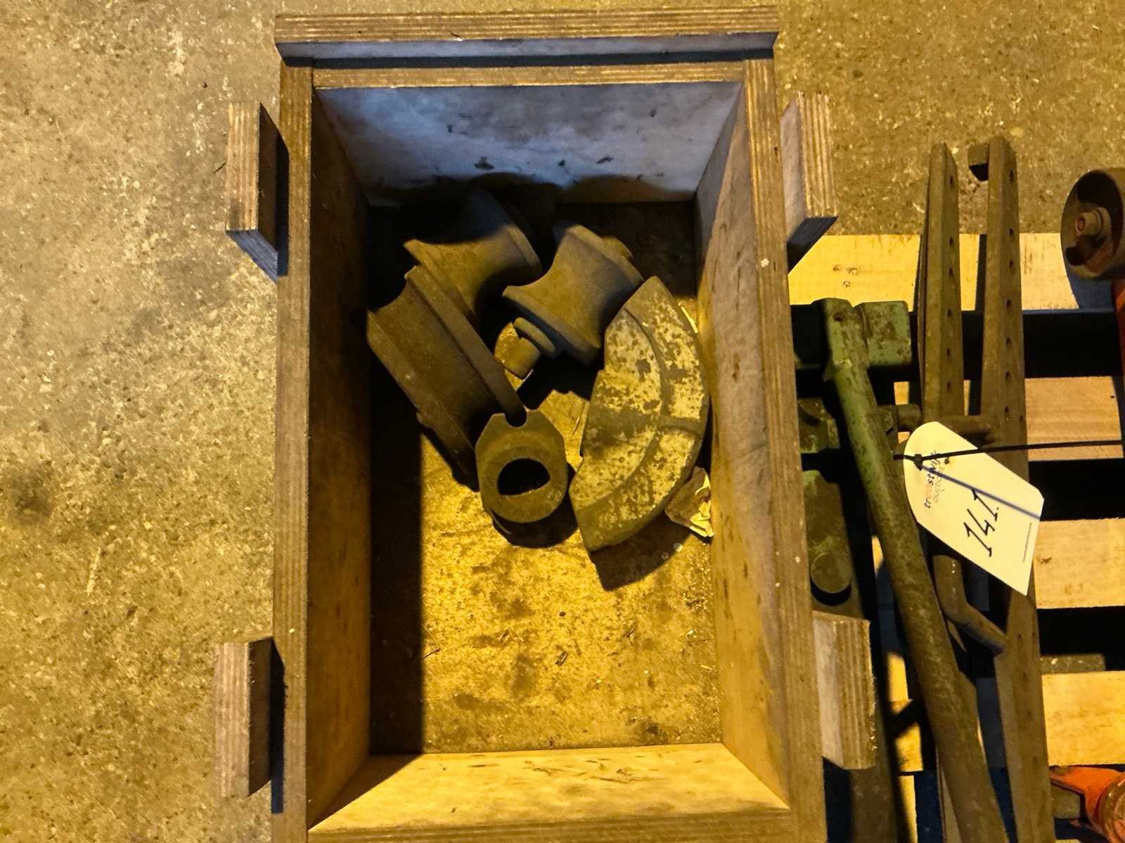 Verschillende soorten en maten op en met 1/2 pallet waaronder garagekrik en diverse machine onderdelen.