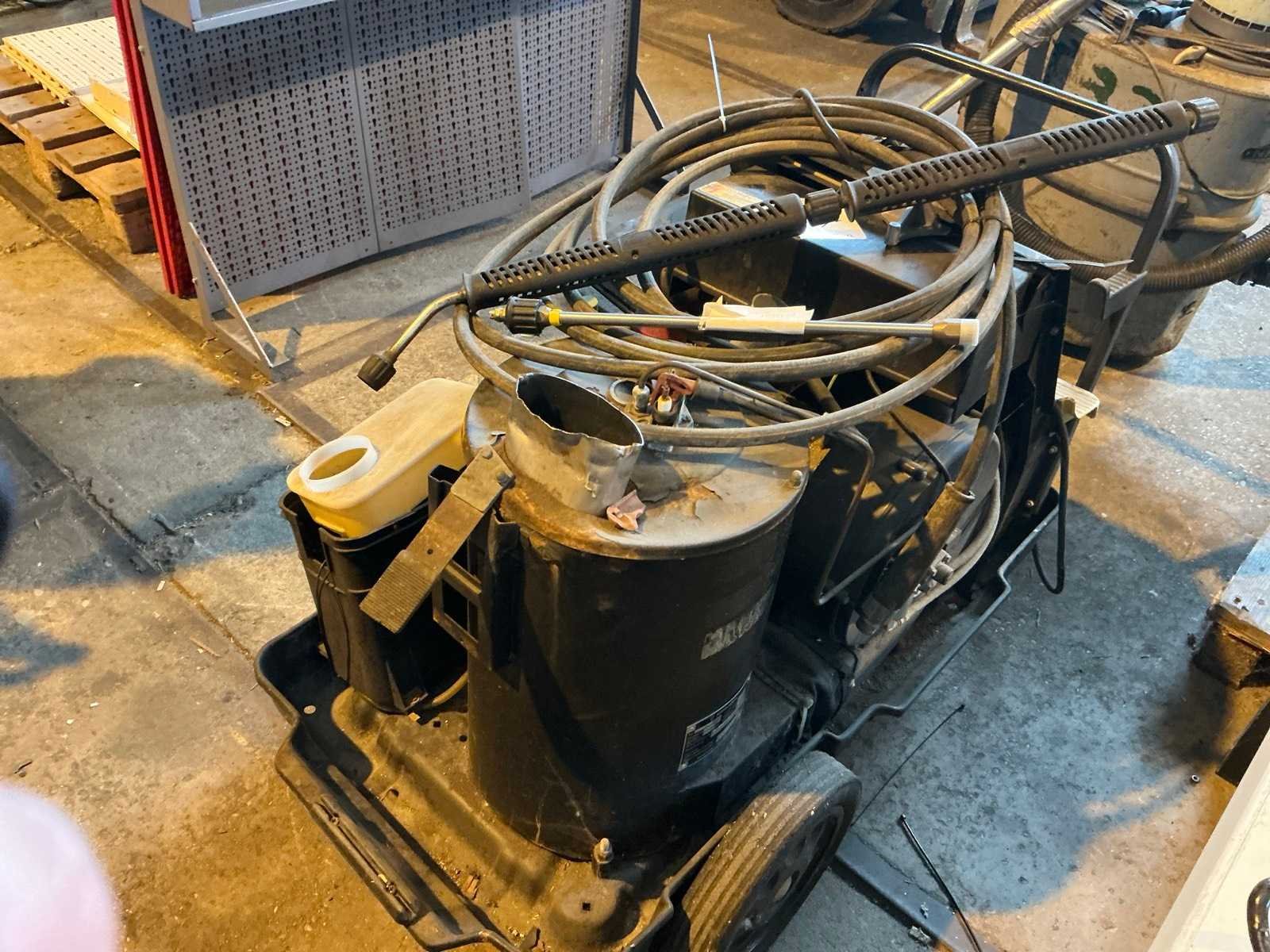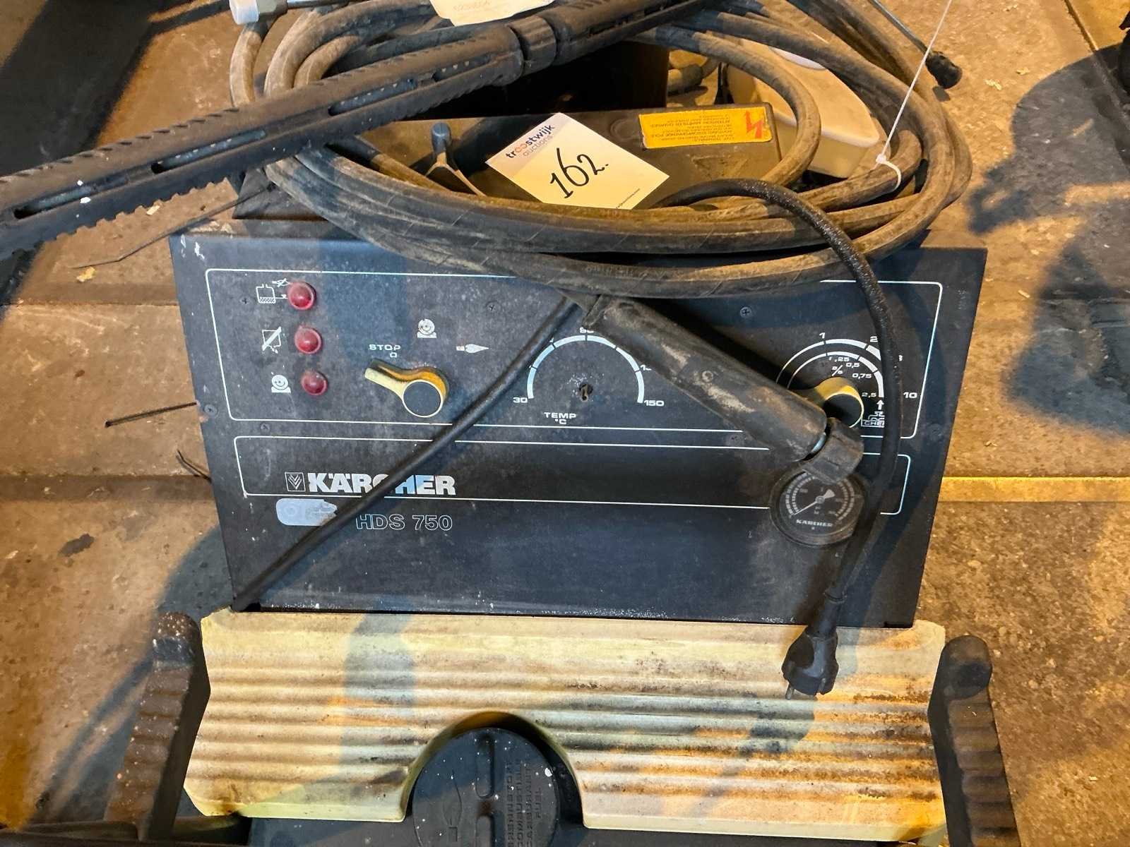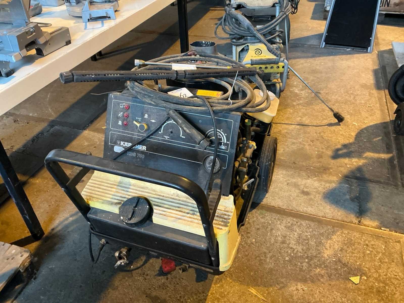 Zonder kap Merk: Kärcher Type: HDS750 Bouwjaar: 1991 Maximale werkdruk: 200bar Capaciteit.: 3.3l/hr Mobiel: true Aansluiting: 230V Totale afmeting L: 1300mm Totale afmeting Breedte: 650mm Totale afmeting Hoogte: 800mm