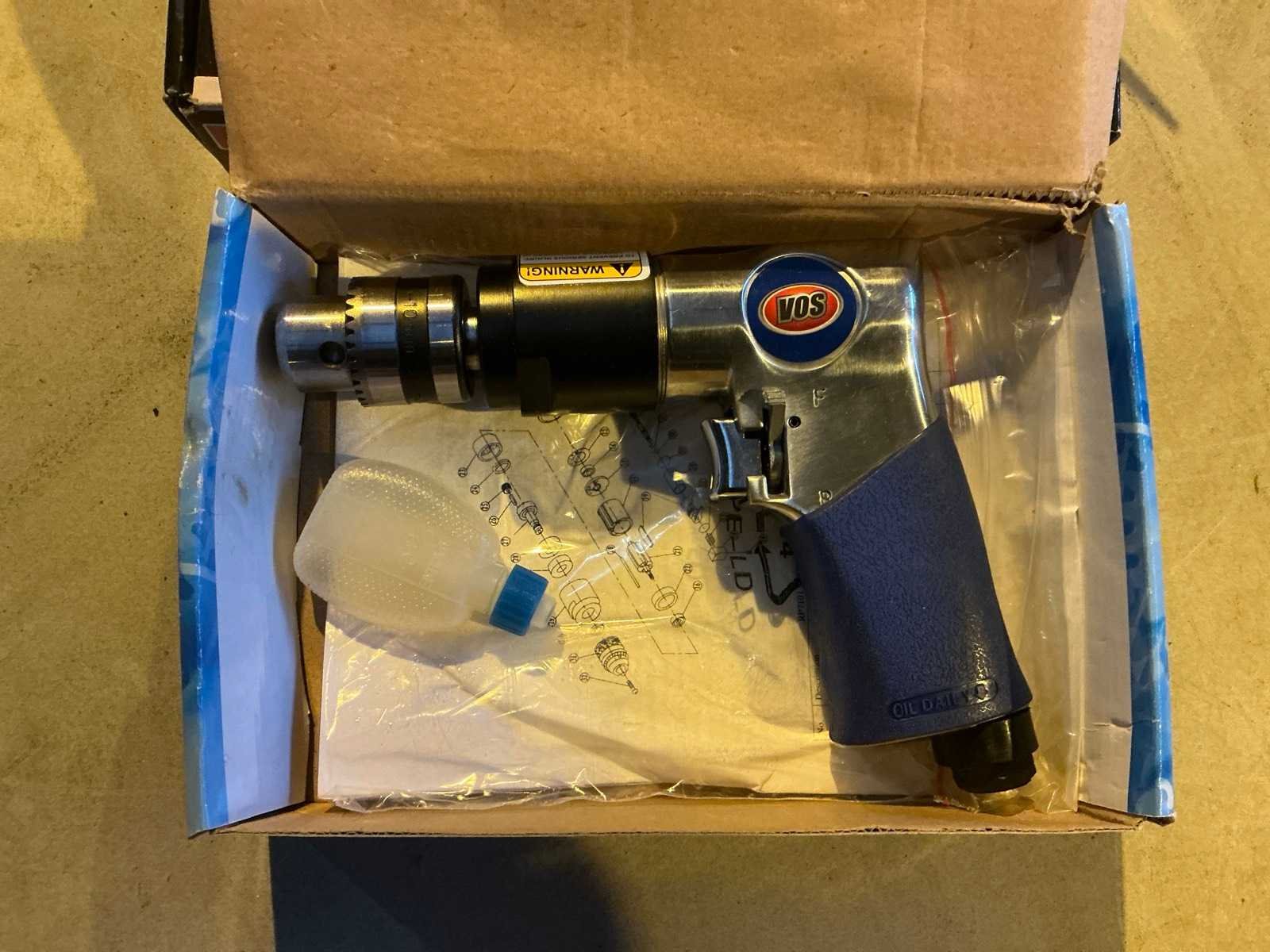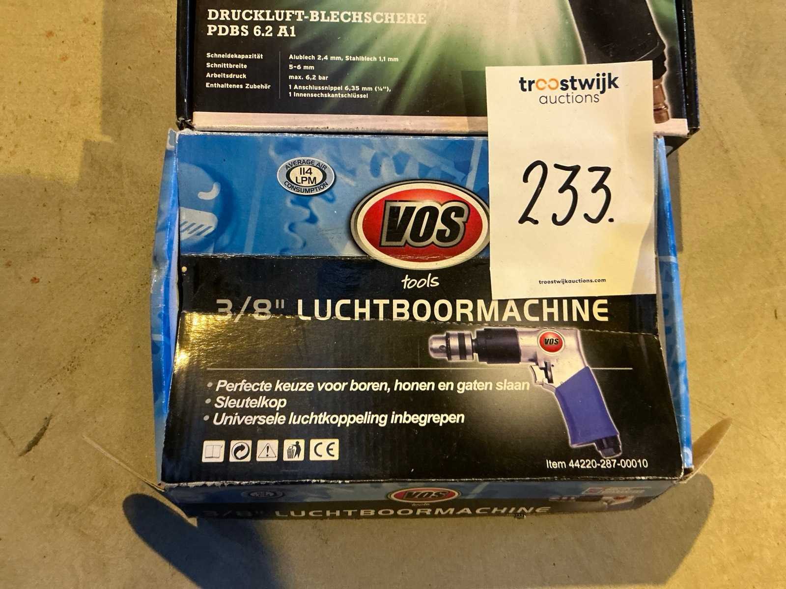 Bestaande uit een VOS 3/8” luchtboormachine en Parkside PDBS 6.2 A1 plaatschaar. Merk: Parkside / Vos