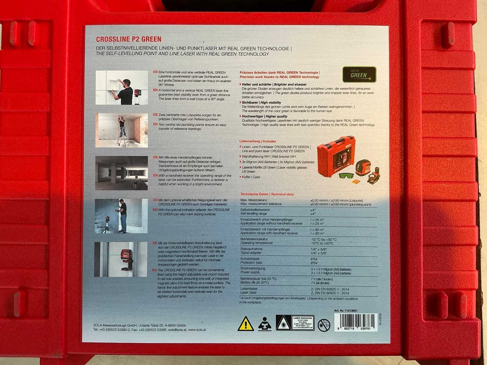 Merk: Sola Type: Flox Met koffer: true Kruislijnlaser: true