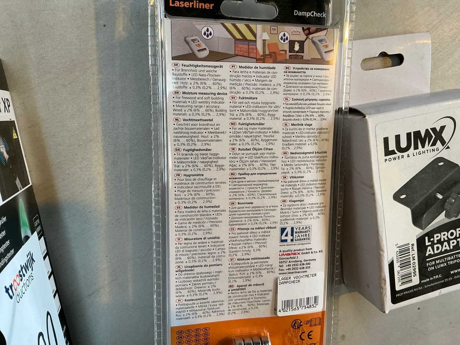 Bestaande uit: Dampcheck vochtmeter en Activefinder XP spanningsmeter . Voorzien van Lumx profile adapter. Merk: Laserliner