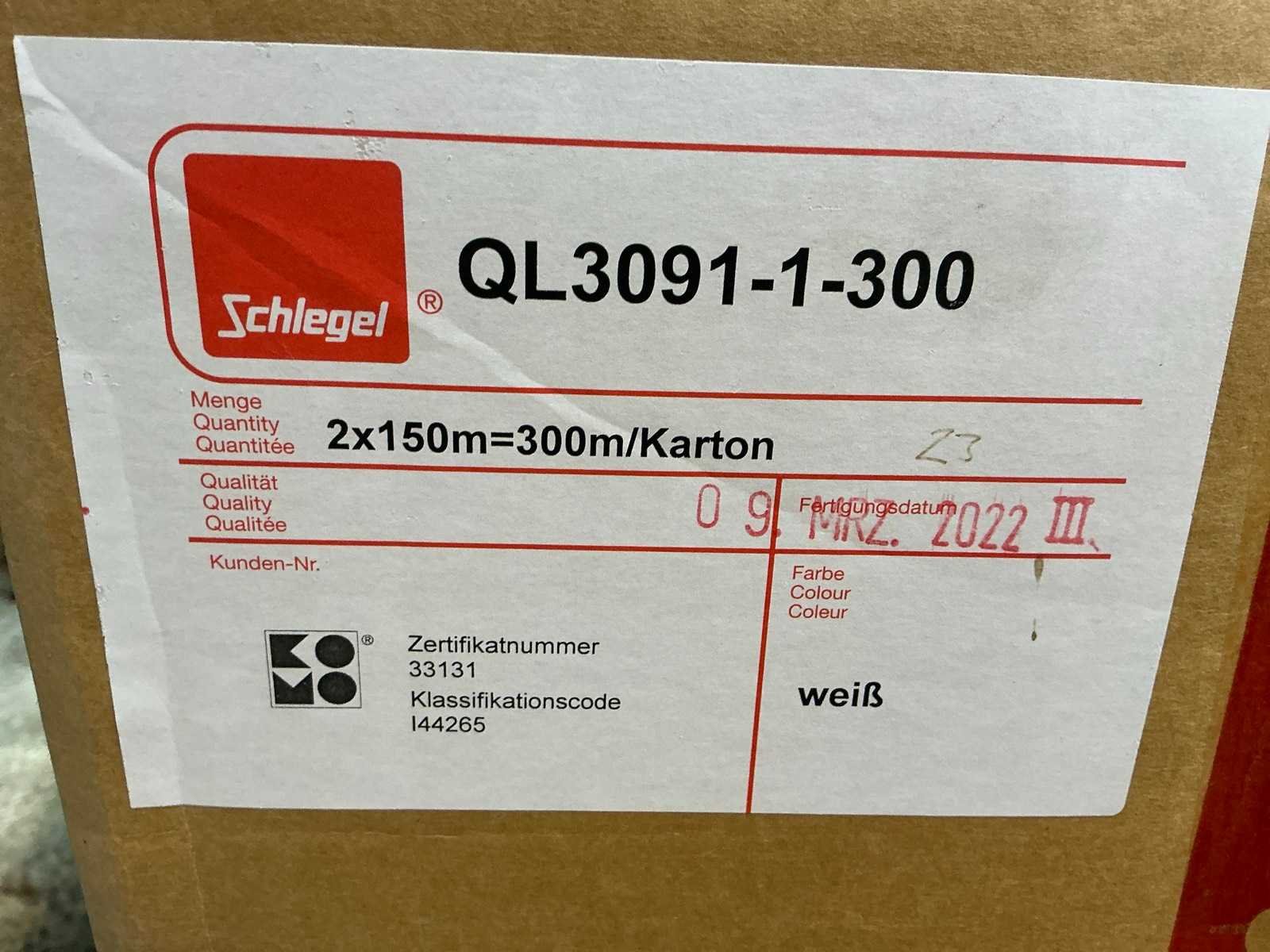 Bestaande uit 2 dozen met 3 rollen wit rubber 2x150m Merk: SCHLEGEL Bouwjaar: 2022
