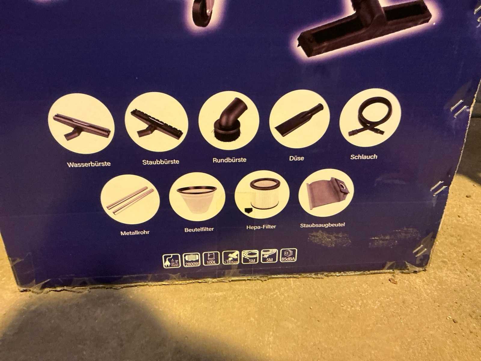 Ongebruikt in doos Merk: Sauber Germany Type: 100L Vermogen: 2800W Nat/droog zuiger: true Aansluiting: 230V
