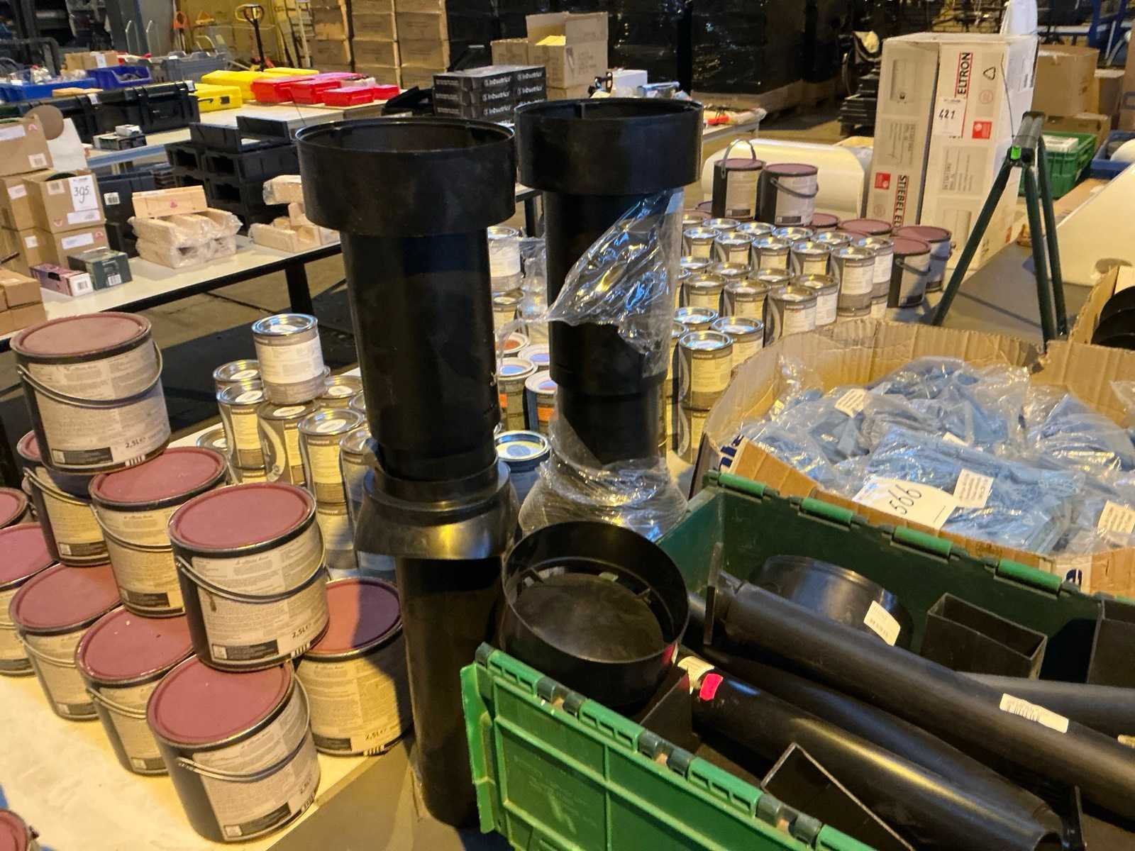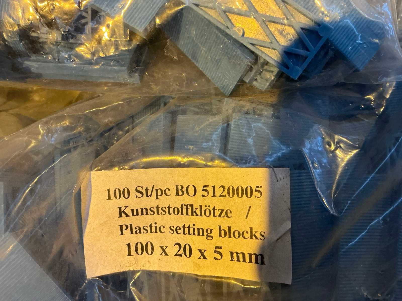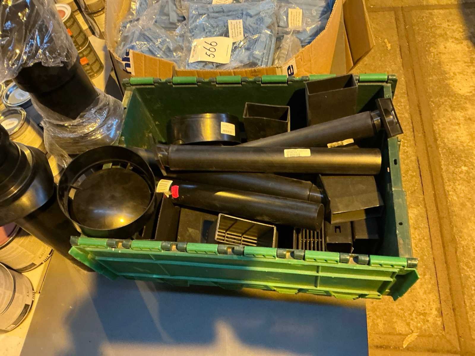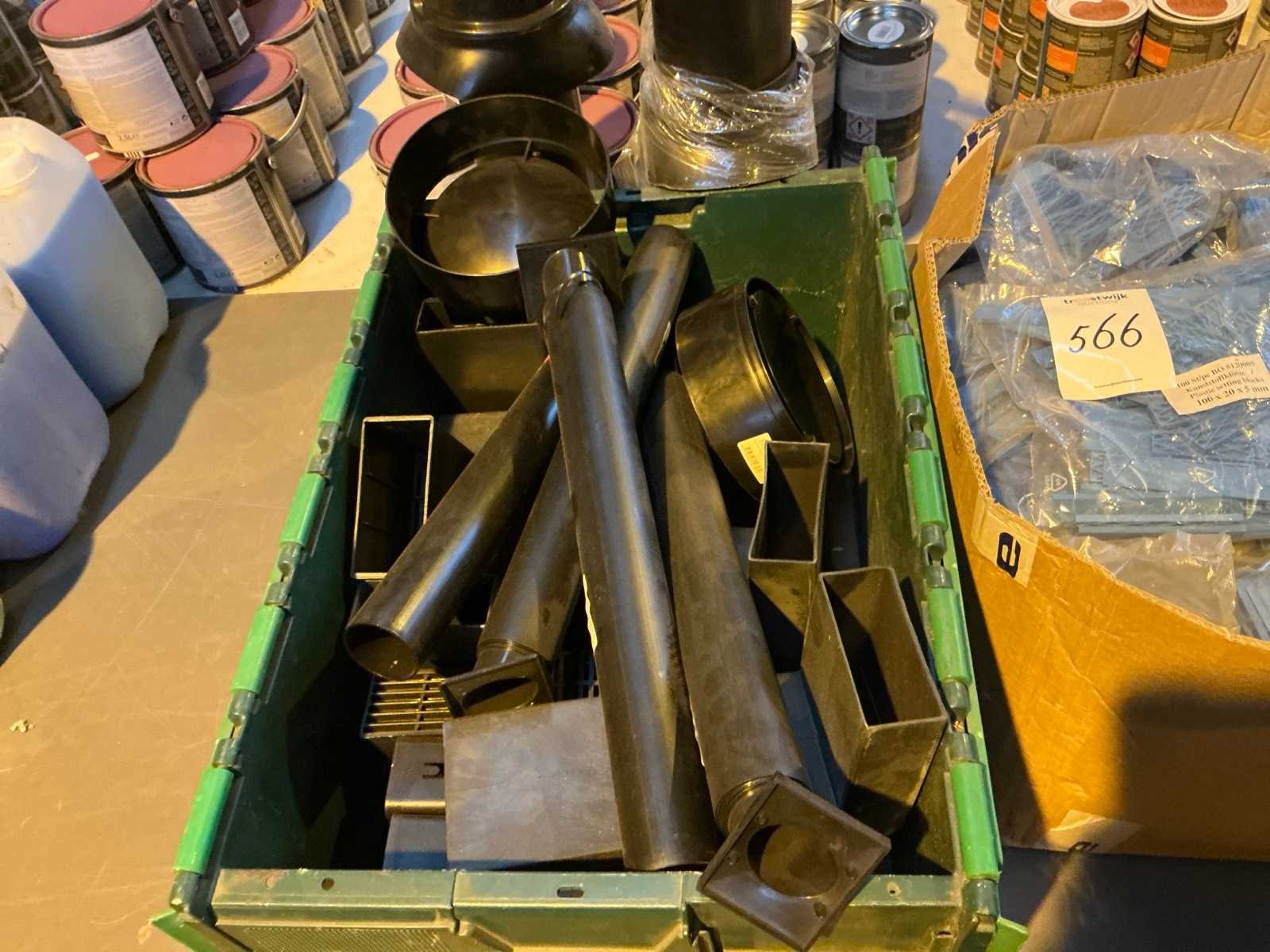 Bestaande uit: Een doos met plastic setting blocks en een krat met kokers en pijpen