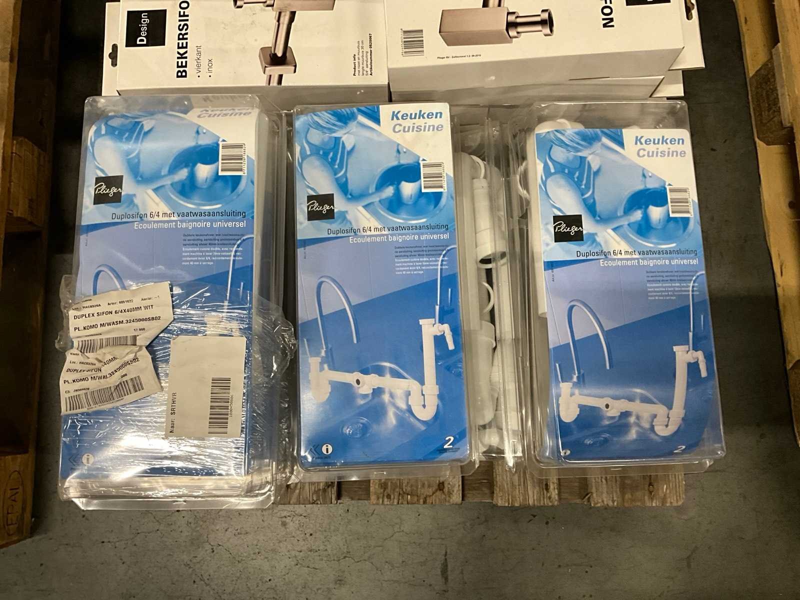 Bestaande uit: 39x Design bekersifon inox vierkant en 11x Plieger Duplosifon 6/4 met vaatwasaansluiting