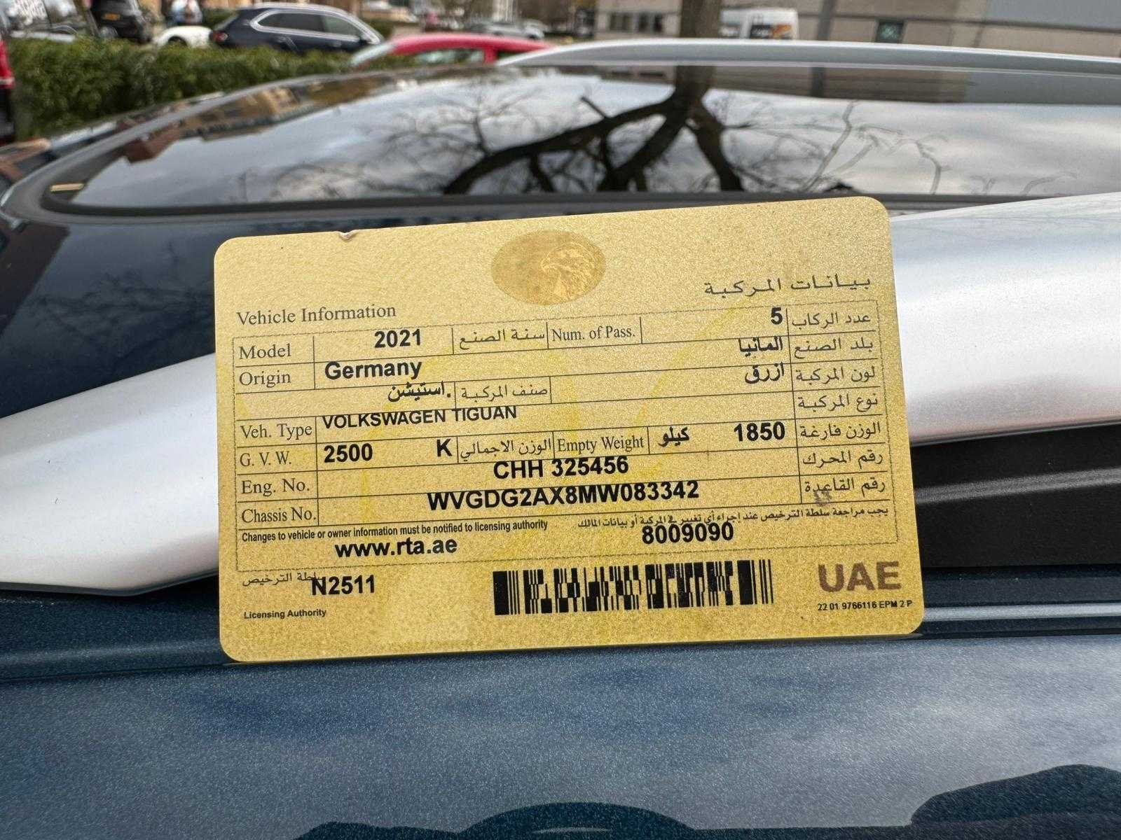 Omdat dit kavel niet in Spijkenisse staat moet u ons een mail sturen dan krijgt u van ons het adres. Info@collectcars.nl Vermeld wel het veilingnummer en kavel nummer zodat het voor ons makkelijker zoeken is. Auto gaat niet op contact. Vermoedelijk waterschade. Vw dealer krijgt het wel op contact. Werking auto hierdoor onbekend! 2.0 benzine motor. 220pk. 4motion Nieuwe accu 3 x R-line uitvoering Export/invoer Papieren uit Dubai, invoerrechten en btw zijn betaald. Merk: Volkswagen Model: Tiguan Type: 2.0 4motion Bouwjaar: 2021 Afgelezen kilometerstand: 28156km Cilinderinhoud: 2000cc Brandstof: benzine Chassisnummer: Wvgd2ax8mw083342 NAP status: geen oordeel Datum eerste toelating: 2021 Vermogen (pk): 220hp Aandrijving: 4x4 Aantal zitplaatsen: 5 Kleur: blauw Transmissie: automaat Stuurwiel: links Aantal deuren: 5 Aantal cilinders: 4 Carrosserie: SUV Nationaliteit documenten: Dubai papieren Onderhoudshistorie: Ja gedeeltelijk startinformatie : Start en rijdt niet Airconditioning: true Navigatie: true Xenon verlichting: true LED-koplampen: true Leder bekleed: true Vierwielaandrijving 4x4: true
