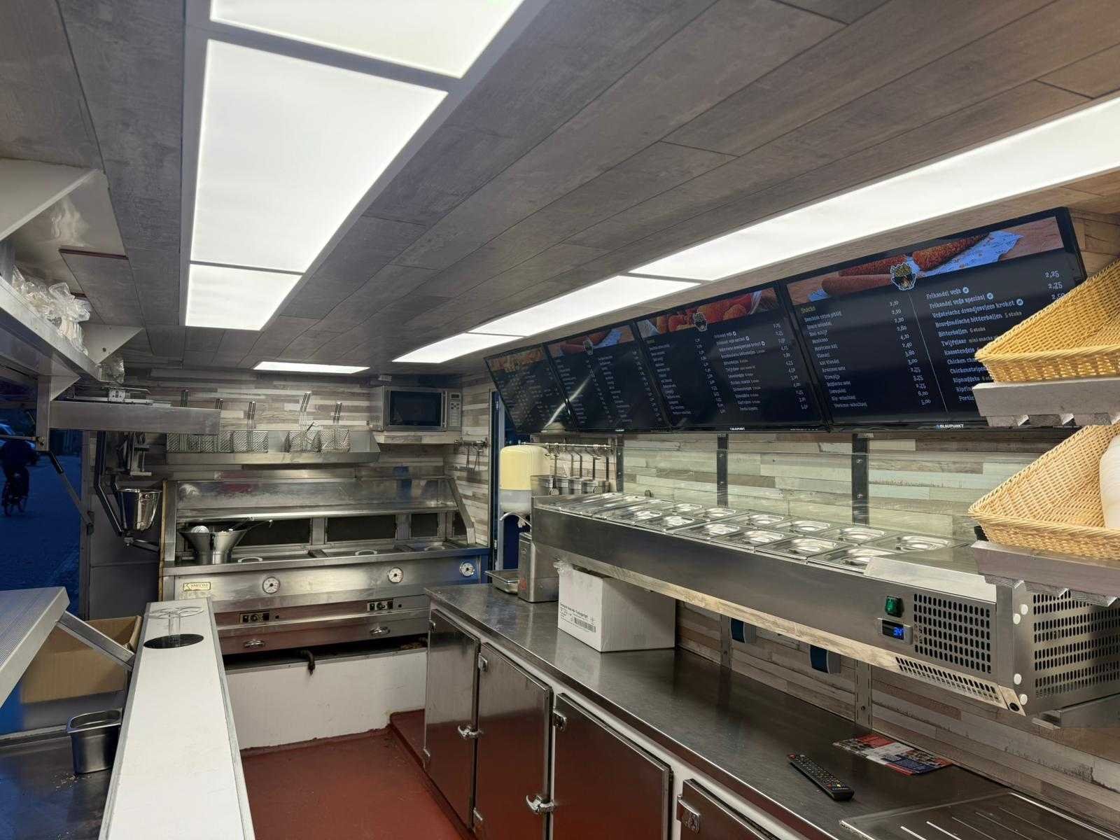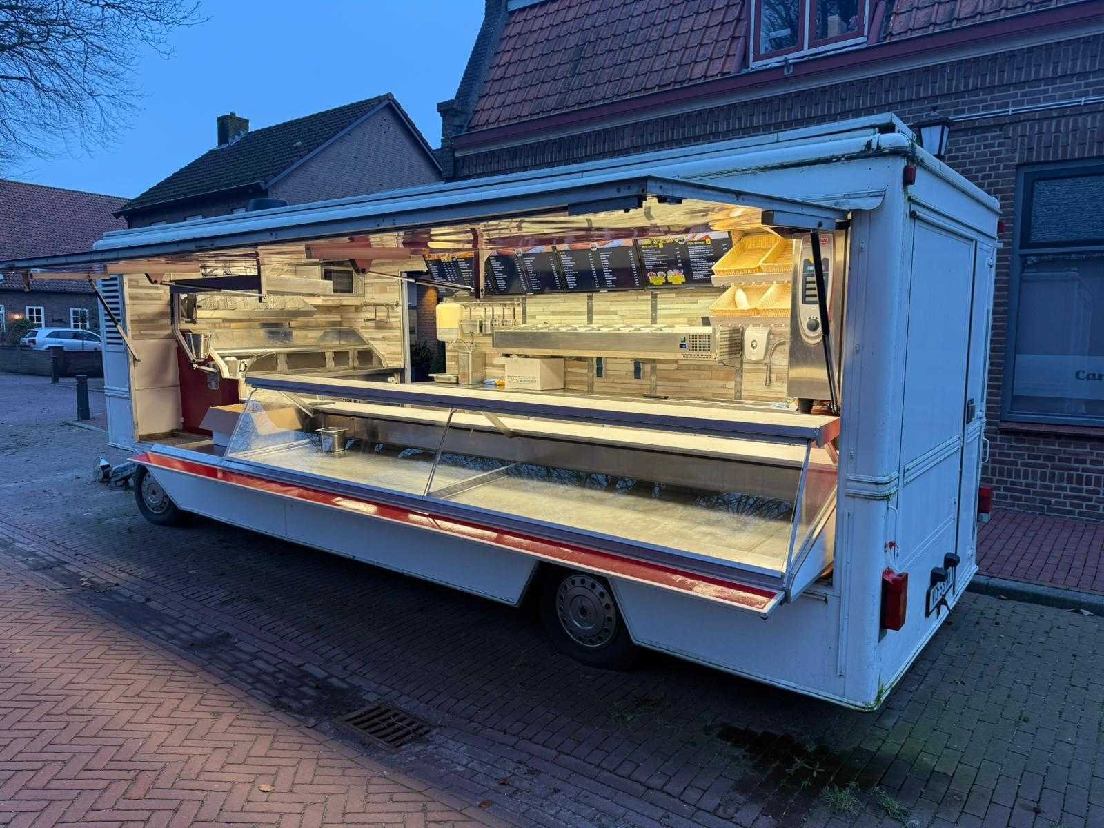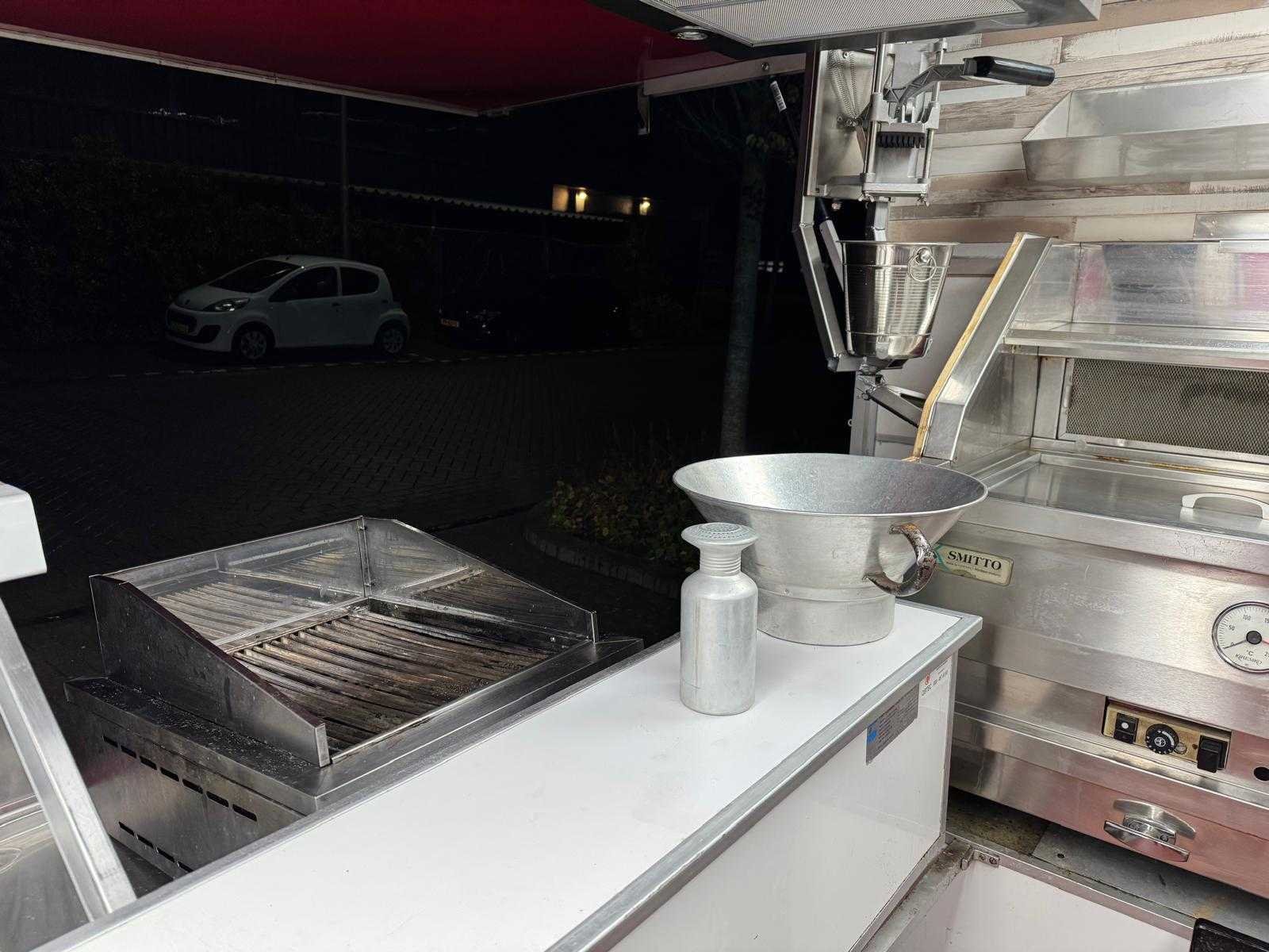 Complete verkoopwagen met alle opties voor de horeca alles aanwezig frituur Rationale grill oven Gas koeling vitrine patatsnijder 220v led schermen led verlichting warm koud water zie foto's Omdat dit kavel niet in Spijkenisse staat moet u ons een mail sturen dan krijgt u van ons het adres. Vermeld wel het veilingnummer en kavelnummer zodat het voor ons makkelijker zoeken is. Merk: De Vries Model: Aanhangwagen 7 meter Type: Patatwagen Frietwagen Grillwagen Rationale Bouwjaar: 2000 Chassisnummer: 4477 Stuurwiel: links Carrosserie: Aanhangwagen Onderhoudshistorie: Ja gedeeltelijk startinformatie : rijdt