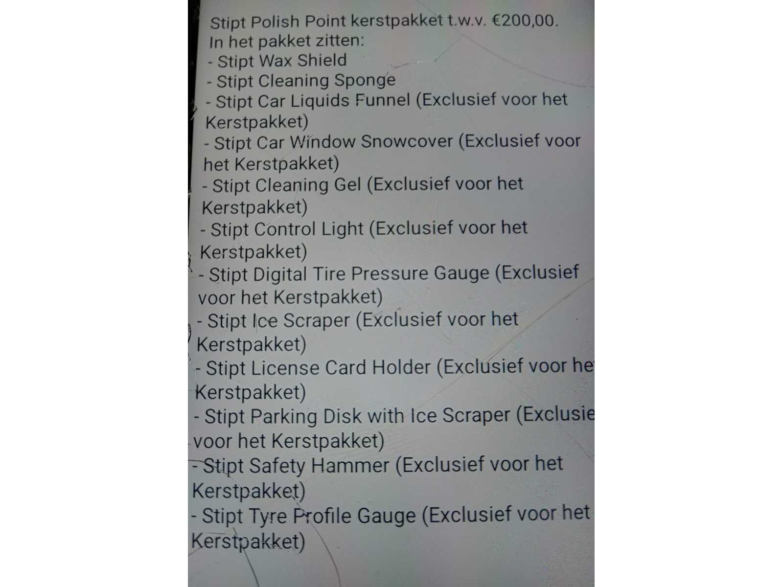Hier heb ik een paket voor de auto speciaal bij mekaar gemaakt zie foto voor inhoud is twv 200 euro leuk voor onder de kerstboom of kado te geven Merk: stipt
